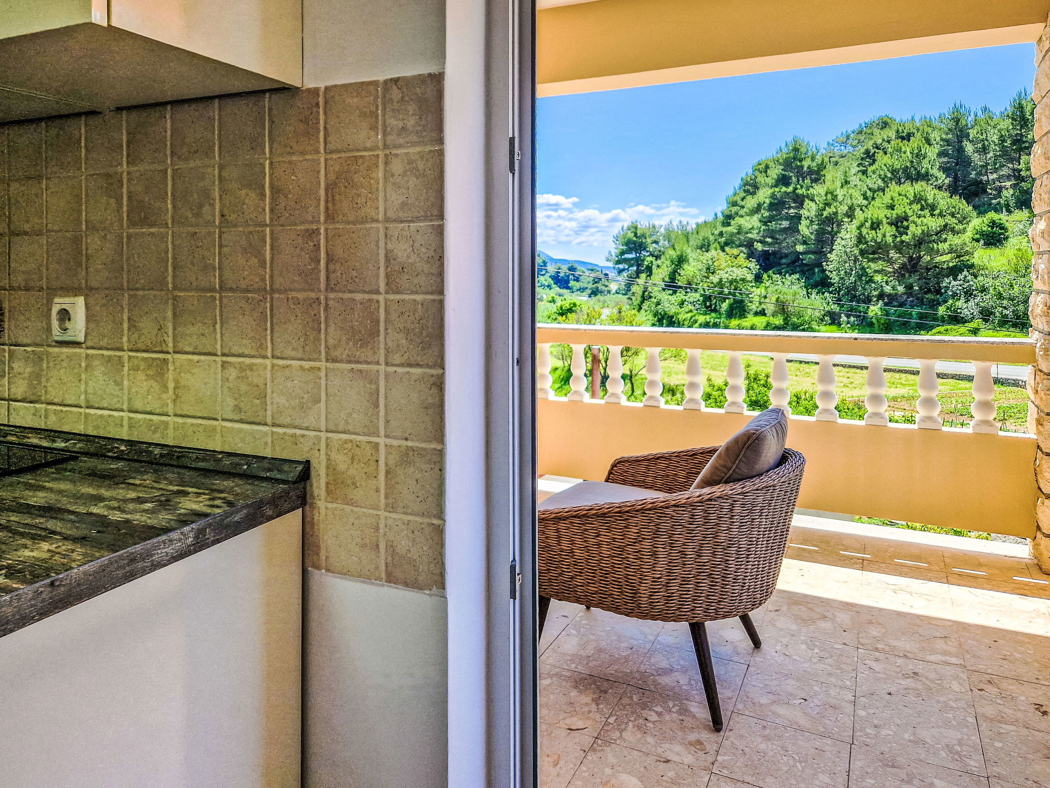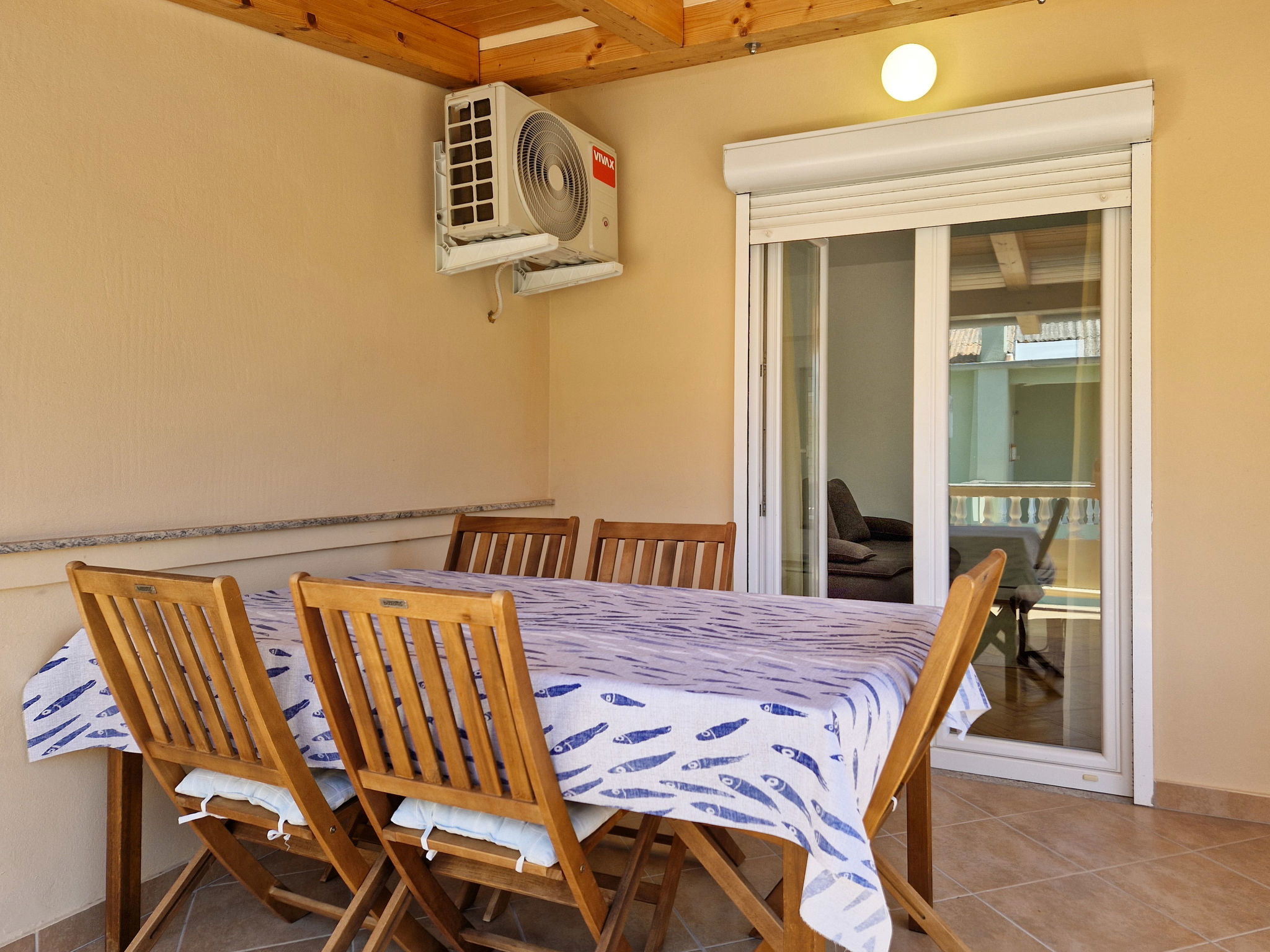 3-room apartment 60 m2 on 1st floor. Beautiful and cosy furnishings: living/dining room 25 m2 with satellite TV (flat screen), air conditioning. Exit to the terrace. 1 room with 1 double bed (2 x 80 cm, length 200 cm). 1 room with 2 beds (80 cm, length 200 cm), shower/WC. Open kitchen (4 hot plates, oven, dishwasher, electric coffee machine). Shower/WC. Air-conditioning. Terrace 14 m2, roofed, terrace 18 m2, roofed. Terrace furniture. Facilities: Internet (WiFi, free). Please note: maximum 1 pet/ dog allowed. Private entrance.