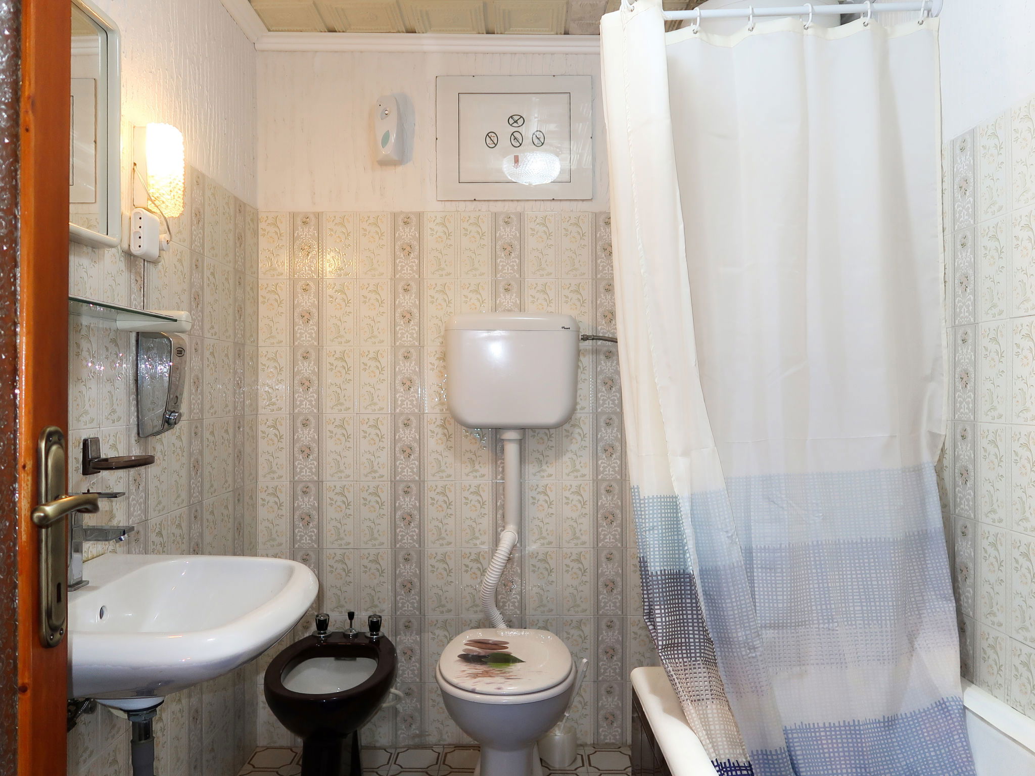 6-room house 150 m2 on 2 levels. Living/dining room with satellite TV, wood-burning stove and air conditioning. Walk-through room with 1 double bed (2 x 80 cm, length 200 cm), air conditioning. Open kitchen (2 hot plates, oven, dishwasher, 4 gas rings, toaster, kettle, freezer, electric coffee machine). Shower/WC. Upper floor: 2 rooms, each room with 2 beds and air conditioning. 1 room with 1 double sofabed (160 cm, length 200 cm), 1 double bed (2 x 80 cm, length 200 cm). 1 room with 1 sofabed (140 cm, length 200 cm), 1 double bed (2 x 80 cm, length 200 cm), air conditioning. Bath/bidet/WC, sep. WC. Terrace 80 m2 partly roofed. Terrace furniture, deck chairs, box-room. View of the sea. Facilities: baby cot (extra), logs (free). Internet (WiFi, free). Please note: non-smoking house. Maximum 2 pets/ dogs allowed. The hallway with the internal staircase to the upper floor can either be accessed through bedroom no. 1 or has an external access.