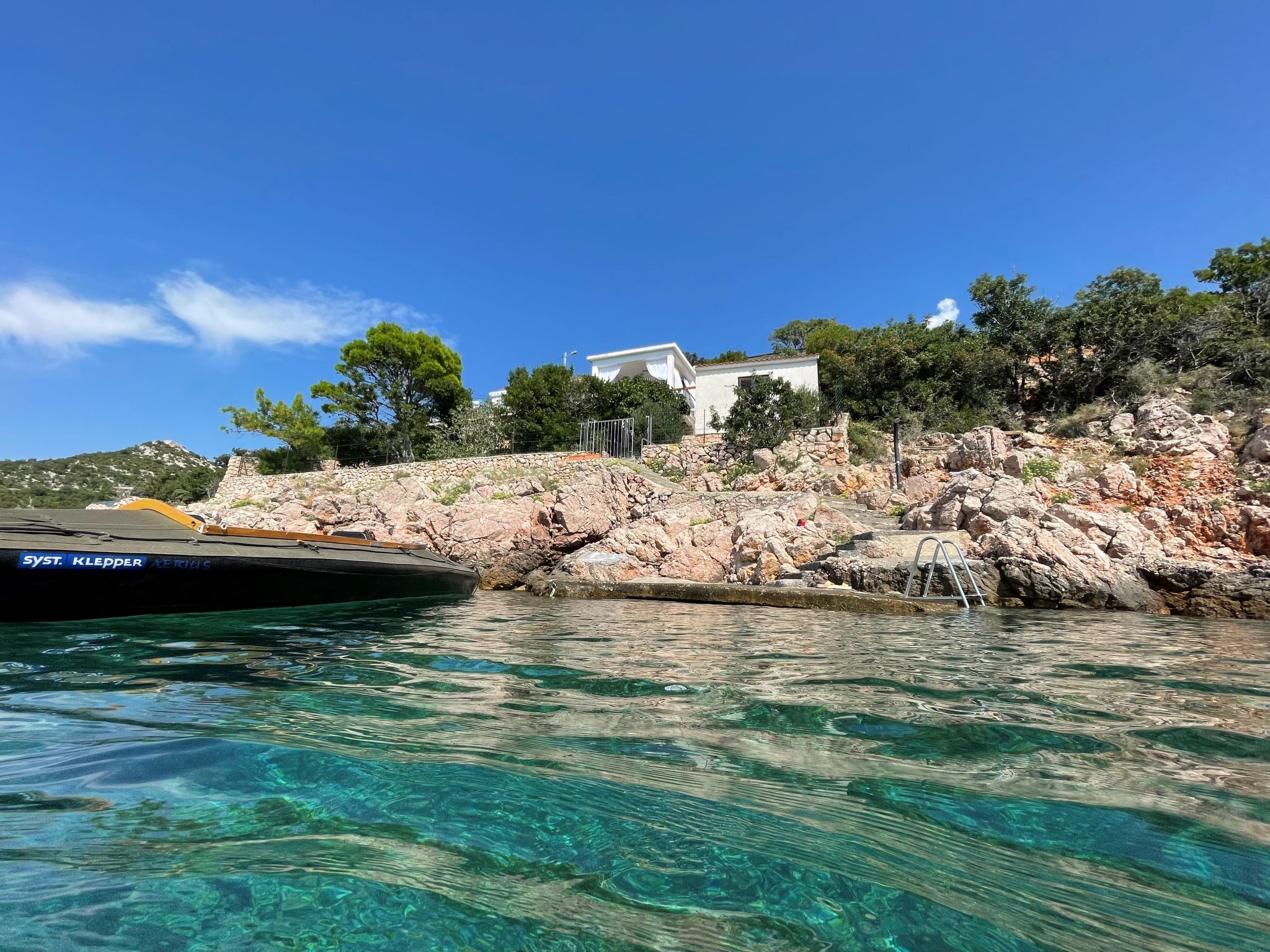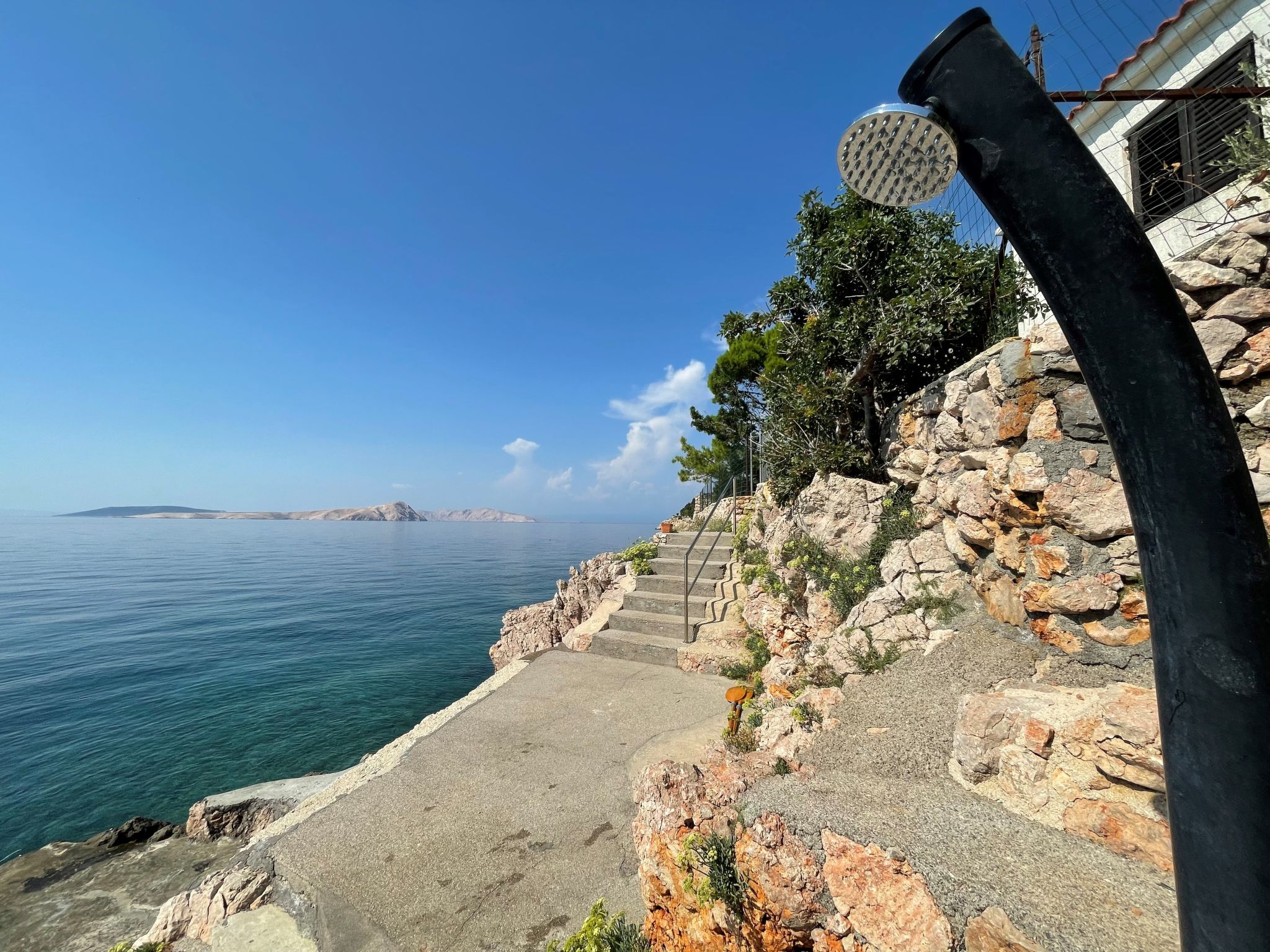 3-family house "Starigrad". 300 m from the centre, 20 km from the centre of Sveti Juraj, in a quiet, sunny, elevated position, 30 m from the sea, 30 m from the beach, in a cul-de-sac. For shared use: property 720 m2 (fenced), plants. In the house: internet access. Parking at the house on the premises. Shop 20 km, restaurant 13 km, bus stop 3.3 km, rocky beach, concrete beach 30 m. The owner does not accept any youth groups.