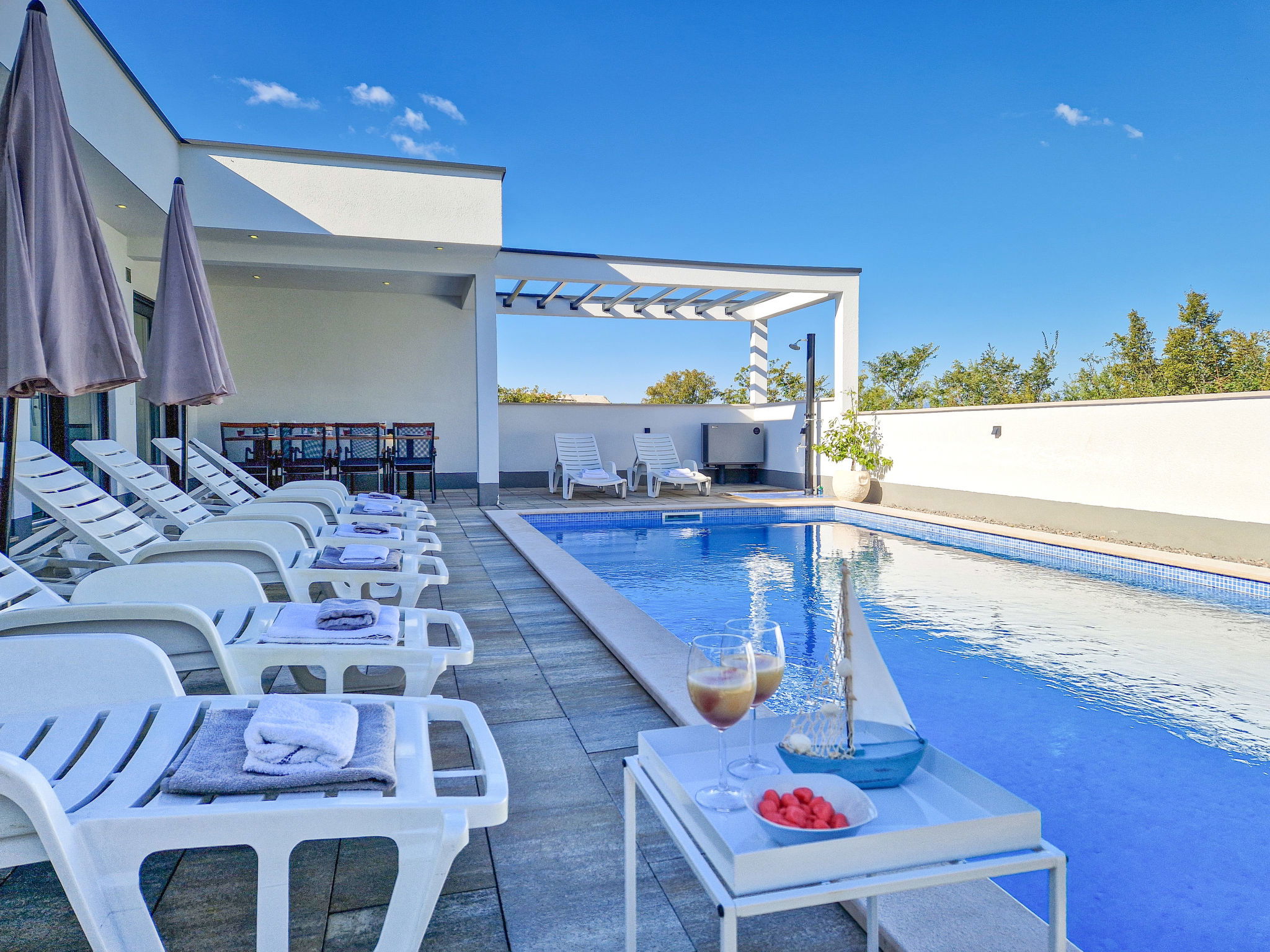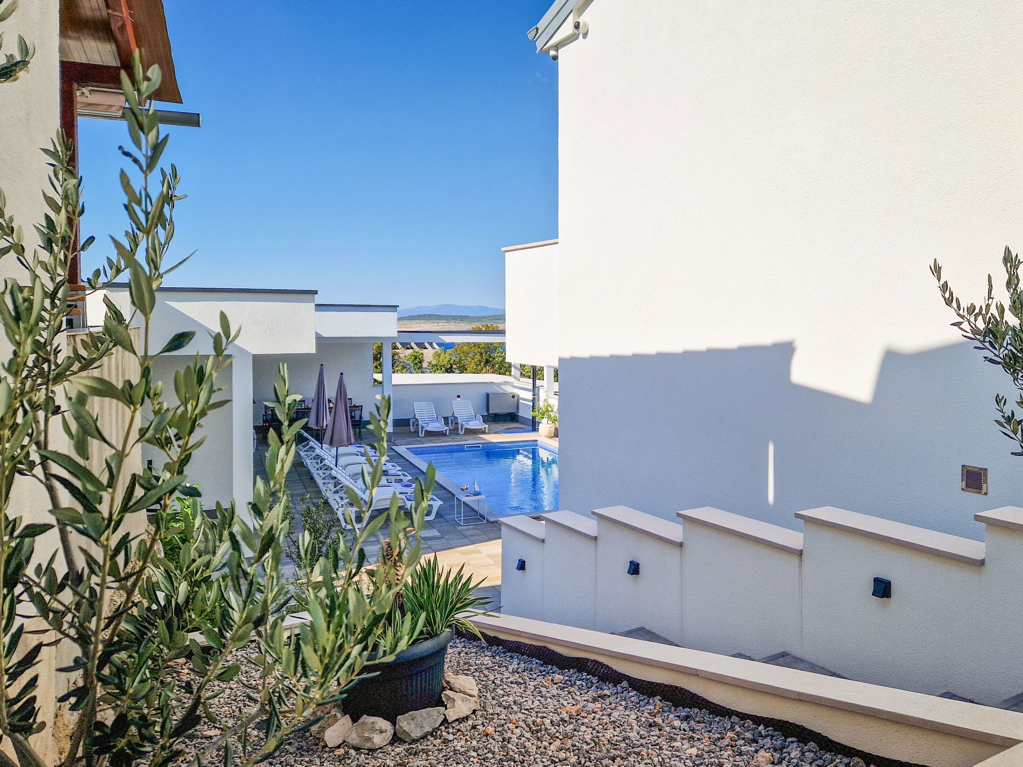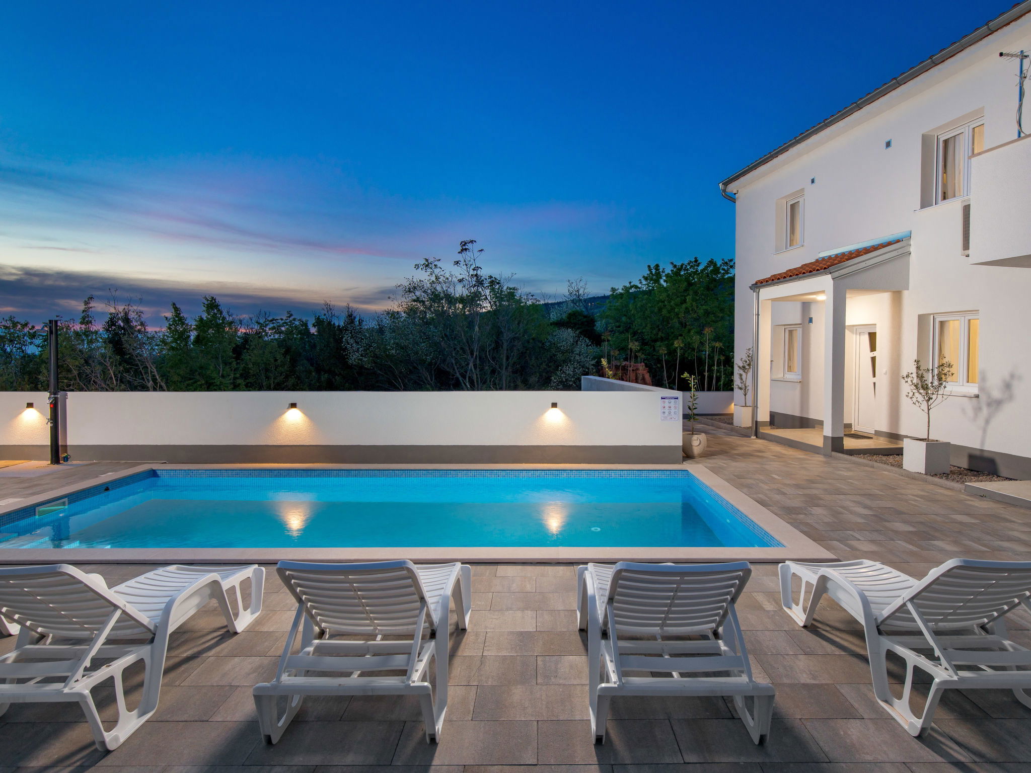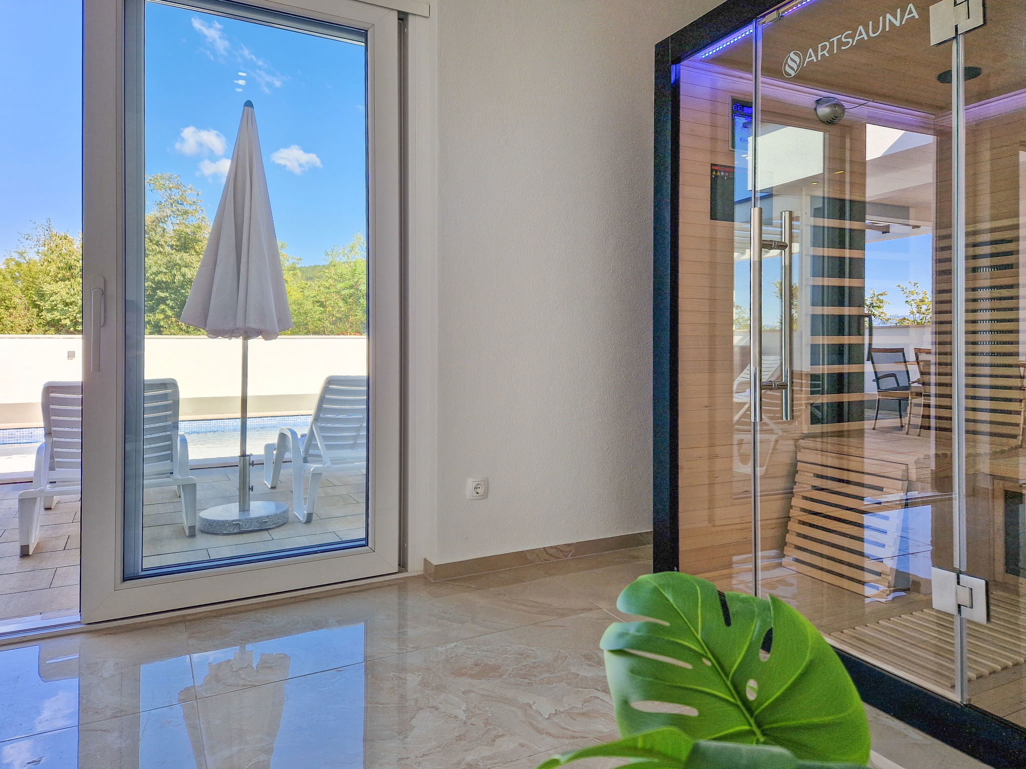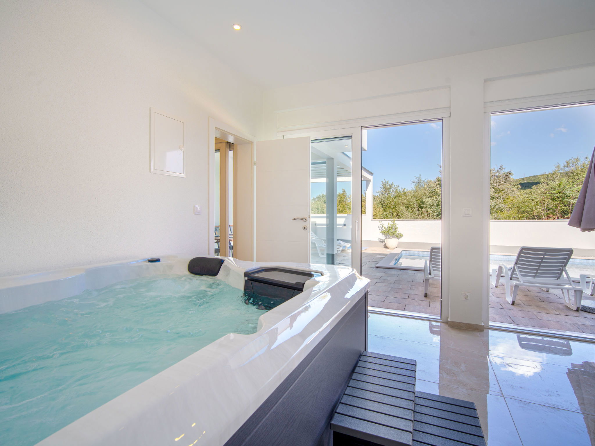 Jadranovo 7 km from Crikvenica: 2-family house "Villa Lea", 2 storeys, built in 2022. 1.5 km from the centre of Jadranovo, 1.8 km from the sea, 1.8 km from the beach. Private: property 500 m2, swimming pool angular, heated (8 x 4 m, depth 145 cm, seasonal availability: 30.Mar. - 30.Oct.) with internal staircase. Outdoor shower, hot tub, pool house with shower and WC, barbecue, pool maintenance by the owner/gardener. In the house: internet access, infrared sauna, washing machine. Parking (for 2 cars) at the house on the premises. Shop, restaurant 800 m, bus stop 1.6 km, pebble beach 1.8 km, concrete beach 1.8 km. Please note: airfield 15 km from the property.