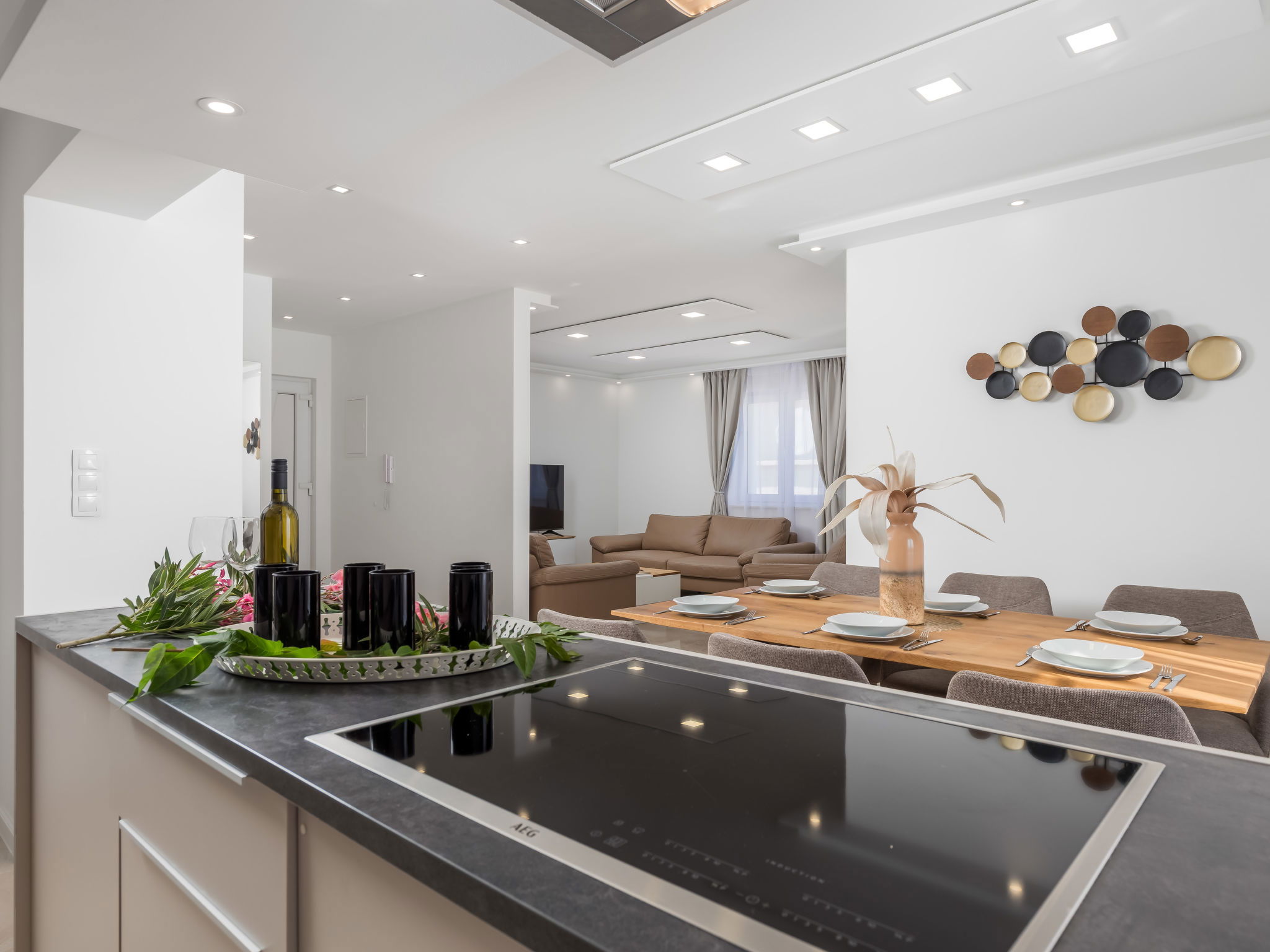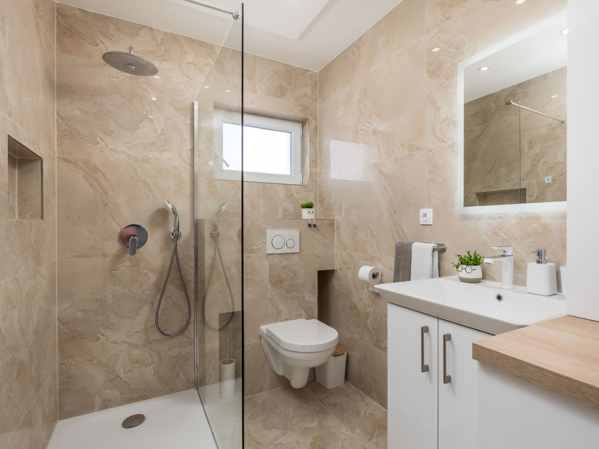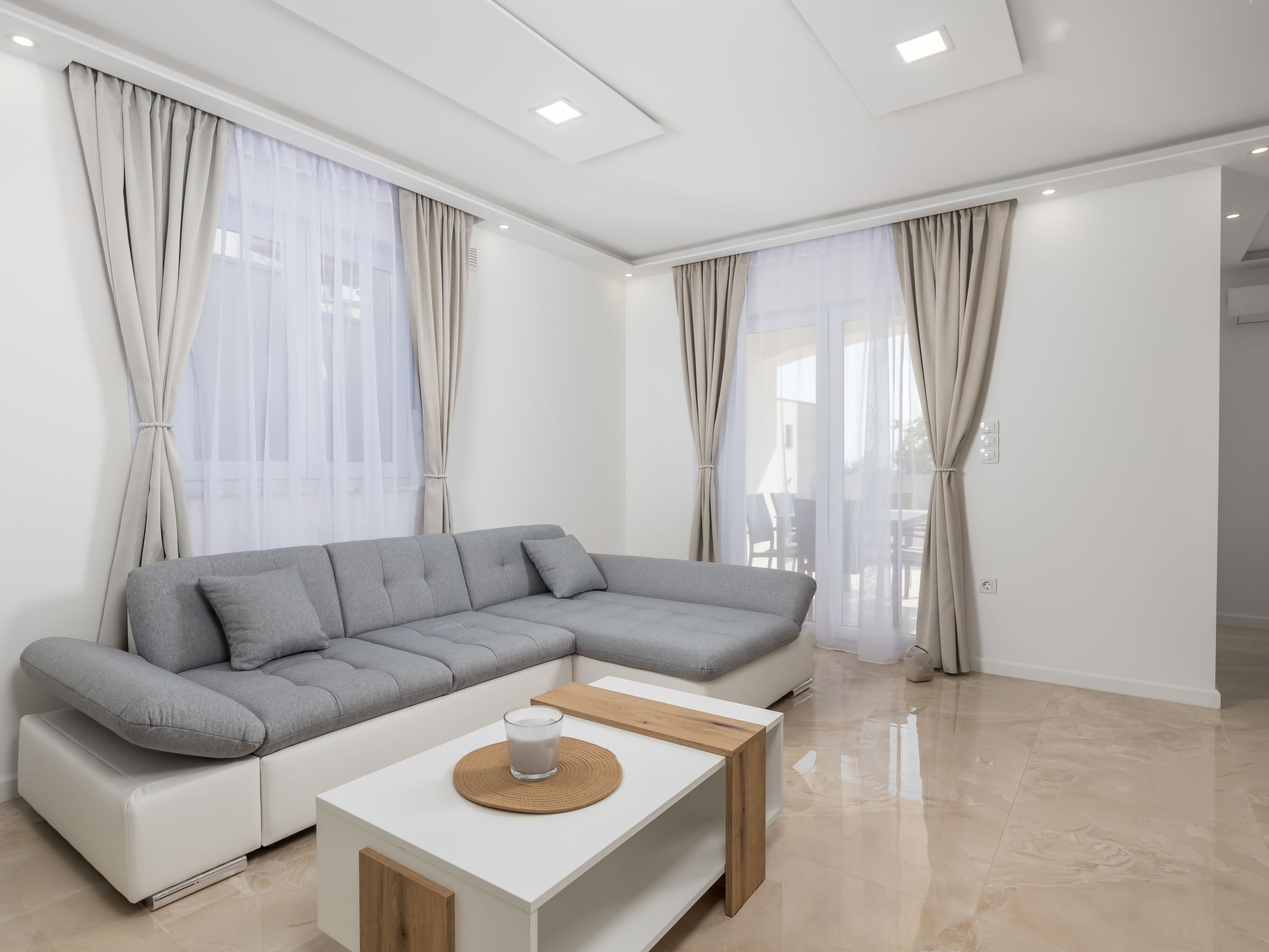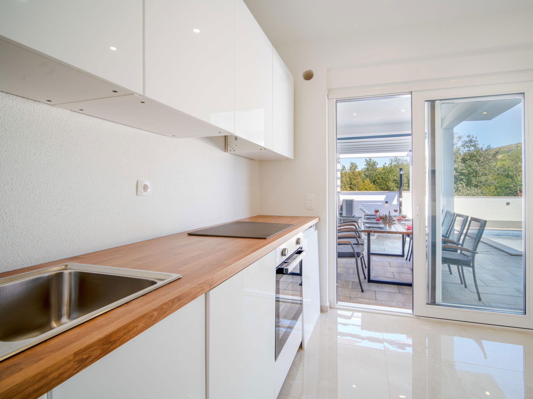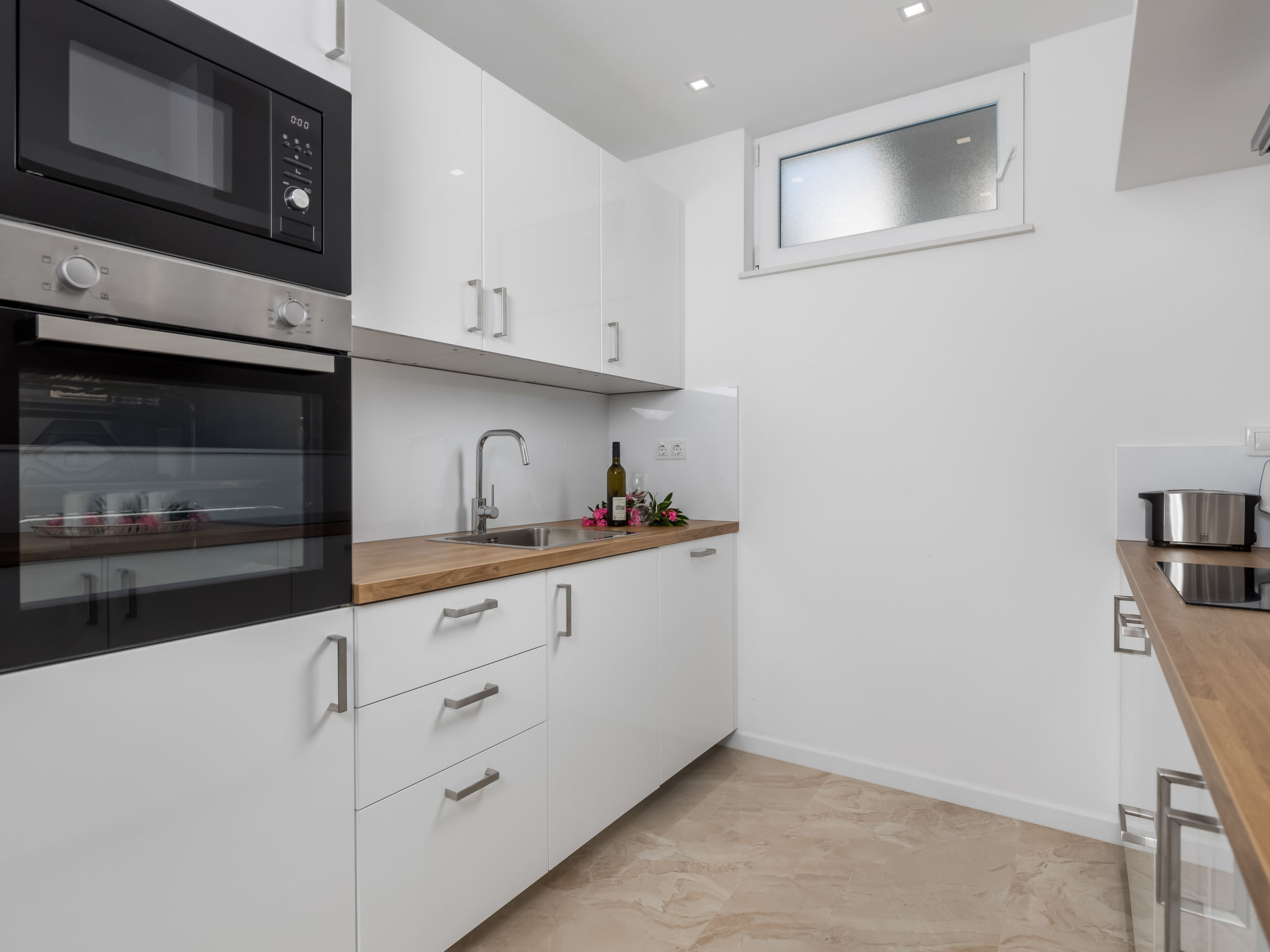 Jadranovo 7 km from Crikvenica: 2-family house "Villa Lea", 2 storeys, built in 2022. 1.5 km from the centre of Jadranovo, 1.8 km from the sea, 1.8 km from the beach. Private: property 500 m2, swimming pool angular, heated (8 x 4 m, depth 145 cm, seasonal availability: 30.Mar. - 30.Oct.) with internal staircase. Outdoor shower, hot tub, pool house with shower and WC, barbecue, pool maintenance by the owner/gardener. In the house: internet access, infrared sauna, washing machine. Parking (for 2 cars) at the house on the premises. Shop, restaurant 800 m, bus stop 1.6 km, pebble beach 1.8 km, concrete beach 1.8 km. Please note: airfield 15 km from the property.