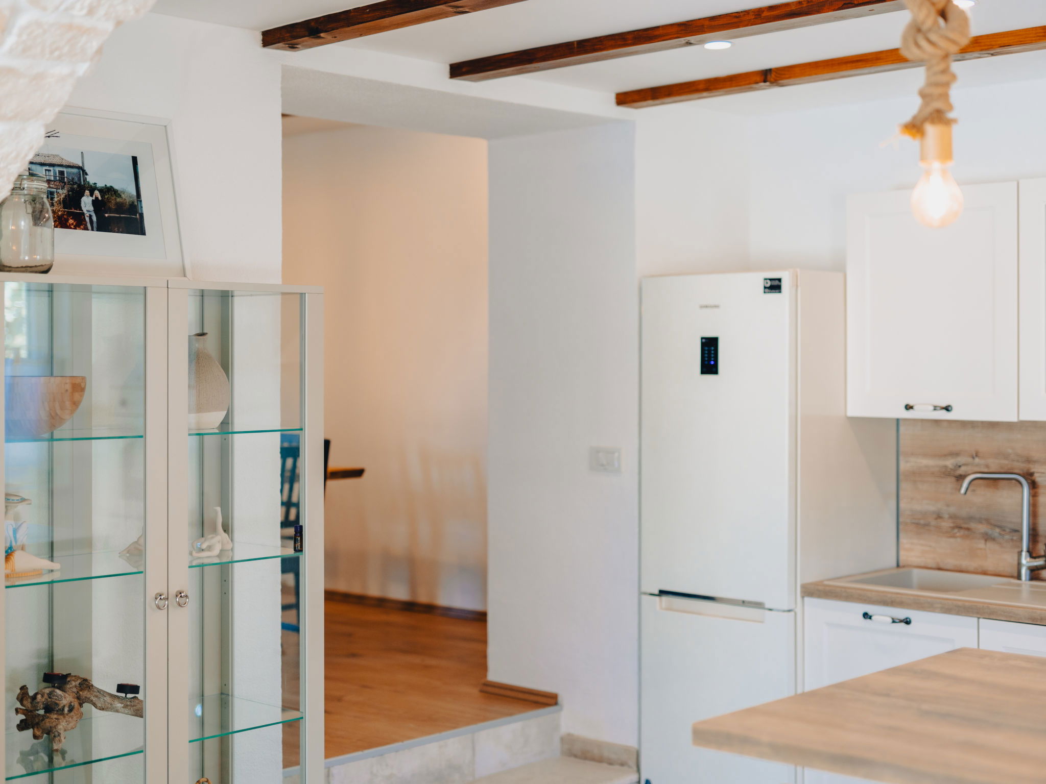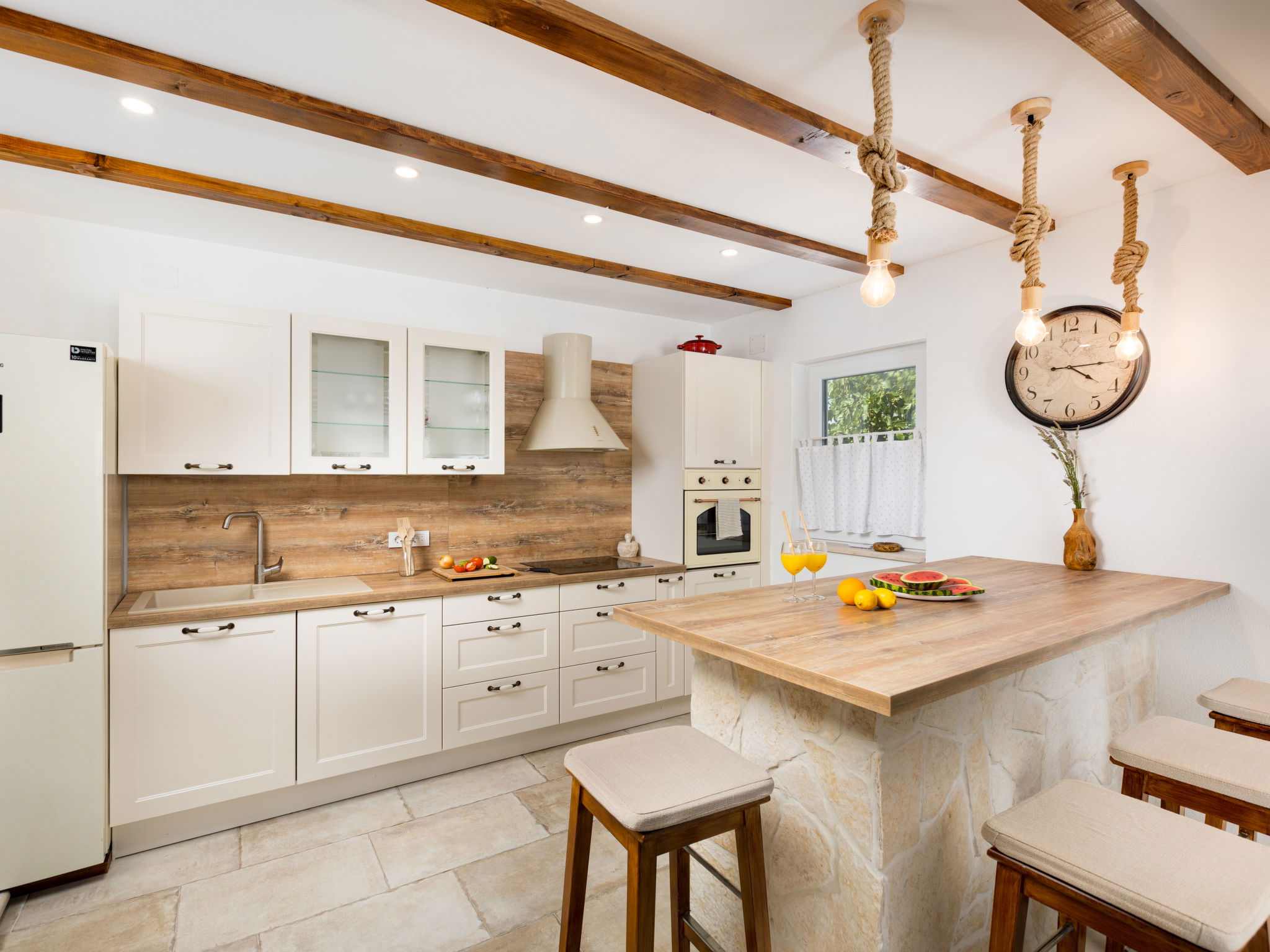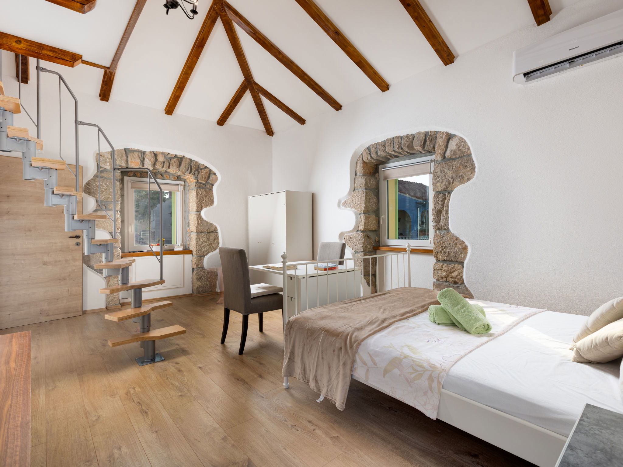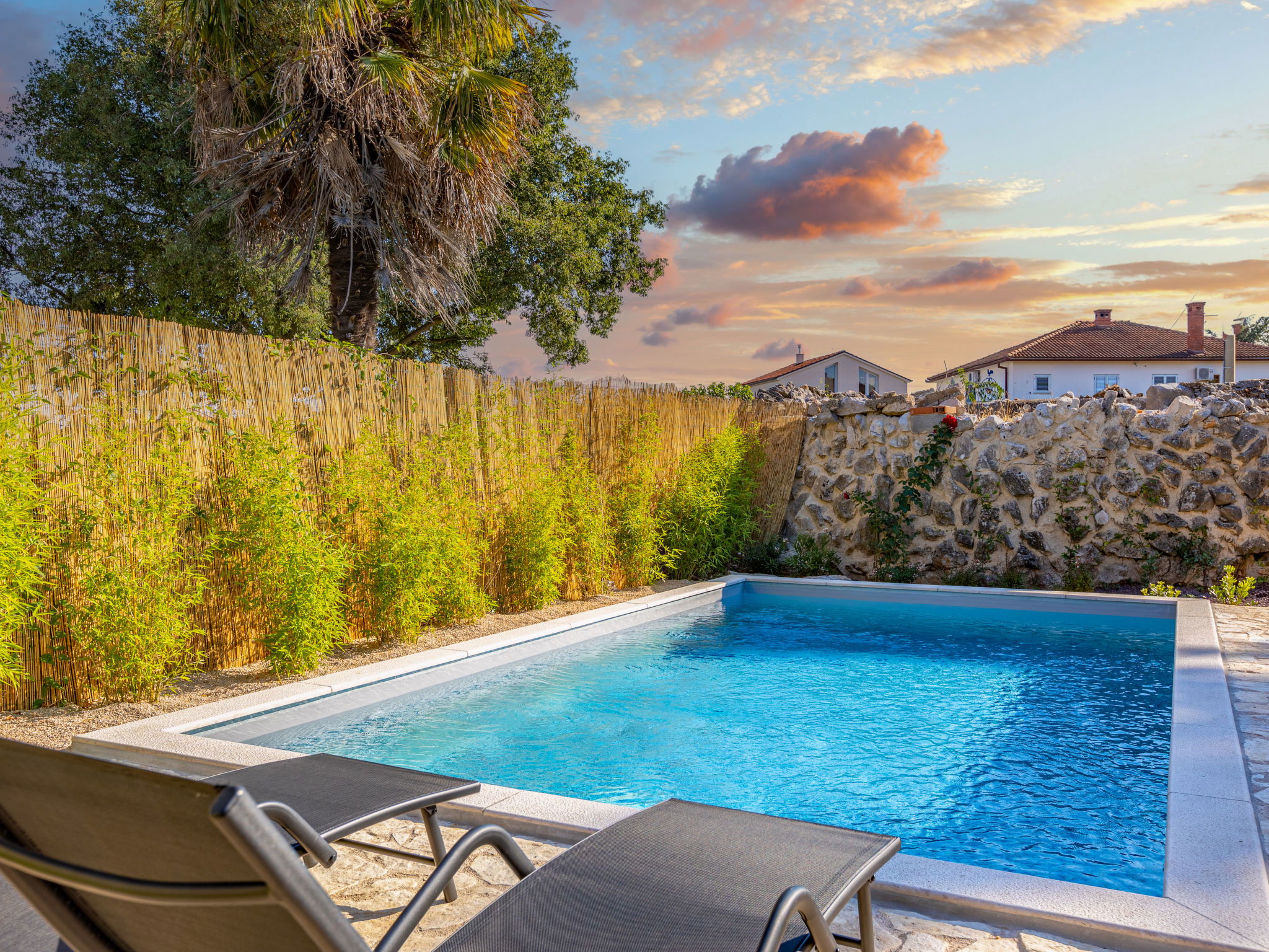 Garica: Beautiful, cosy single-family house "Paesana Heritage House", 2 storeys, built in 1912, renovated in 2018. 6.5 km from the centre of Vrbnik, 11 km from the centre of Malinska, 11 km from the centre of Krk, 6.3 km from the sea, 6.7 km from the beach, in the countryside. Private: property 600 m2, swimming pool angular (6 x 4 m, depth 140 cm, seasonal availability: 15.Mar. - 15.Nov.) with salt-electrolysis pool-cleaning system. Outdoor shower, pool maintenance by the owner/gardener. In the house: internet access, washing machine. Parking (for 3 cars) at the house on the premises. Shop 250 m, supermarket 8.5 km, restaurant 5.7 km, bus stop 6.3 km, pebble beach 6.7 km, concrete beach 6.7 km. Groups of teenagers on request only. Please note: airfield 24 km from the property.