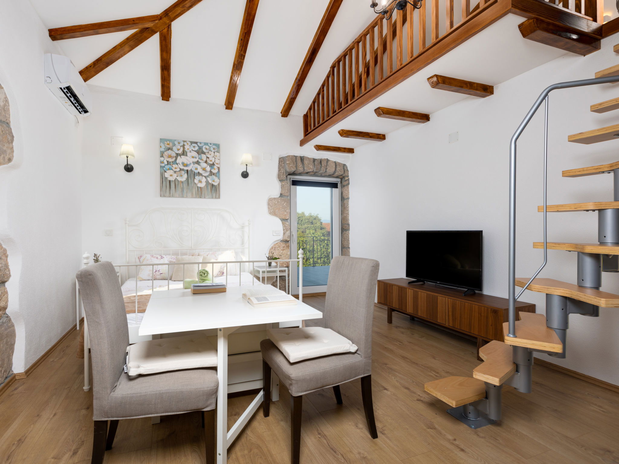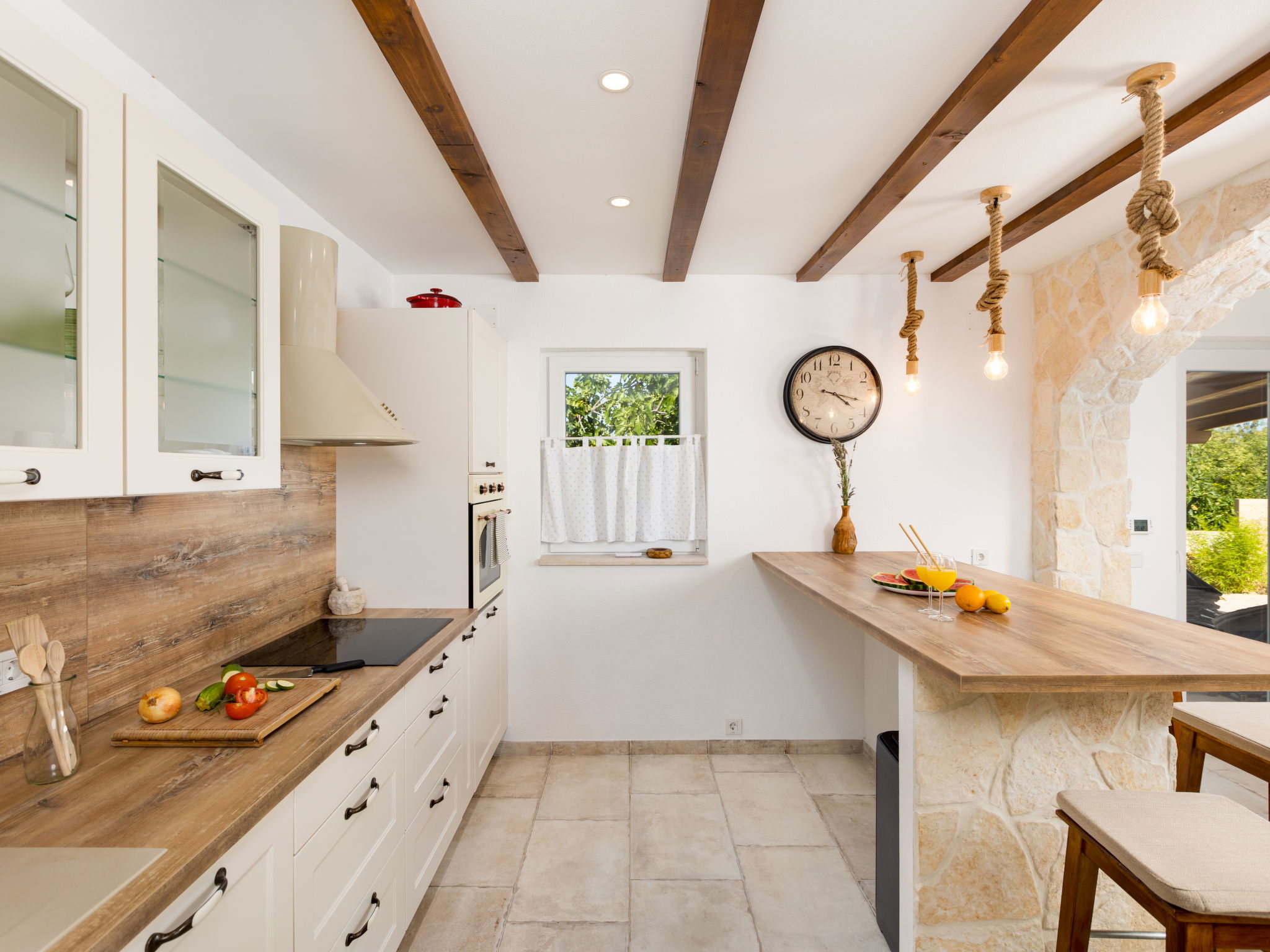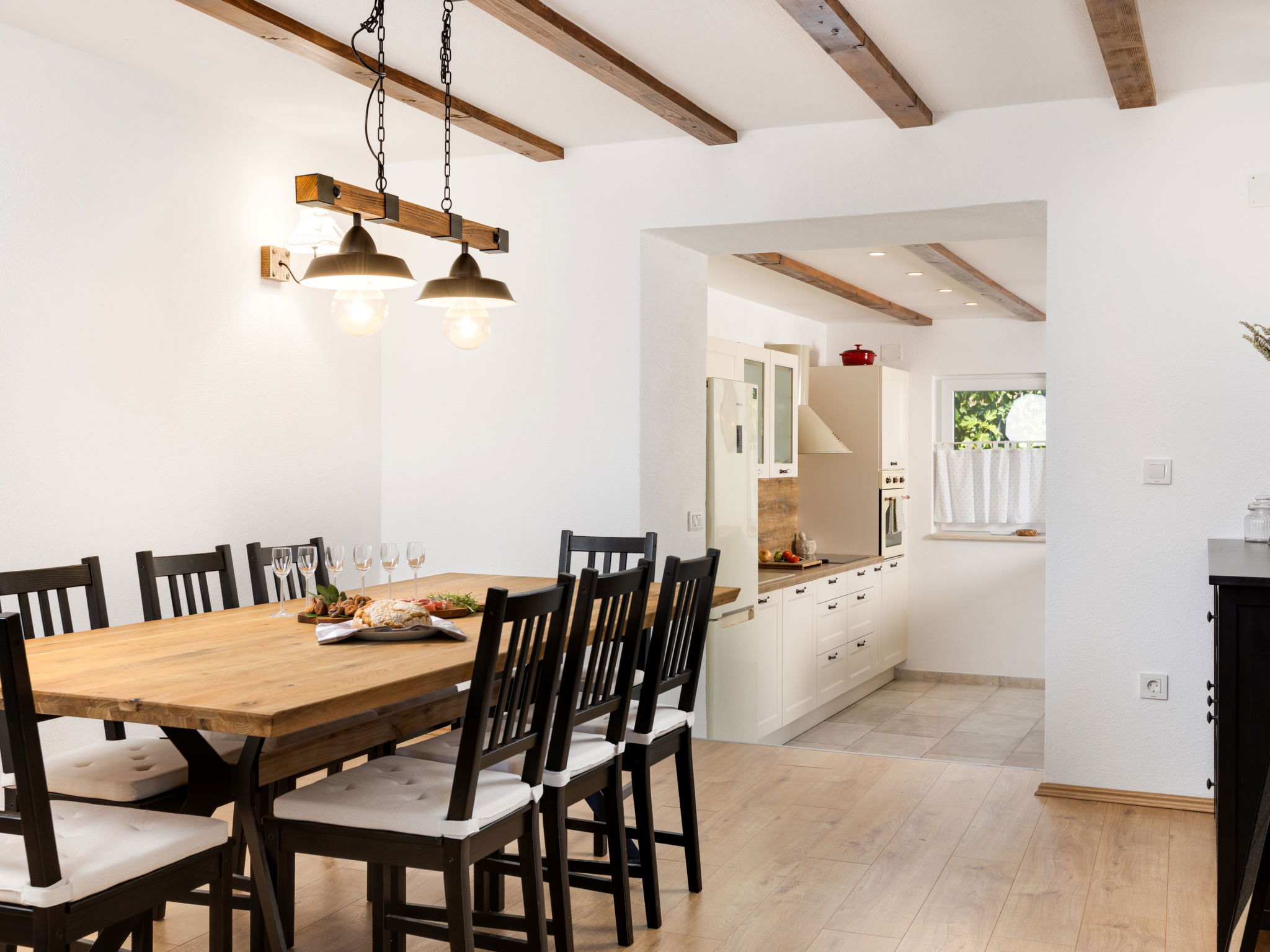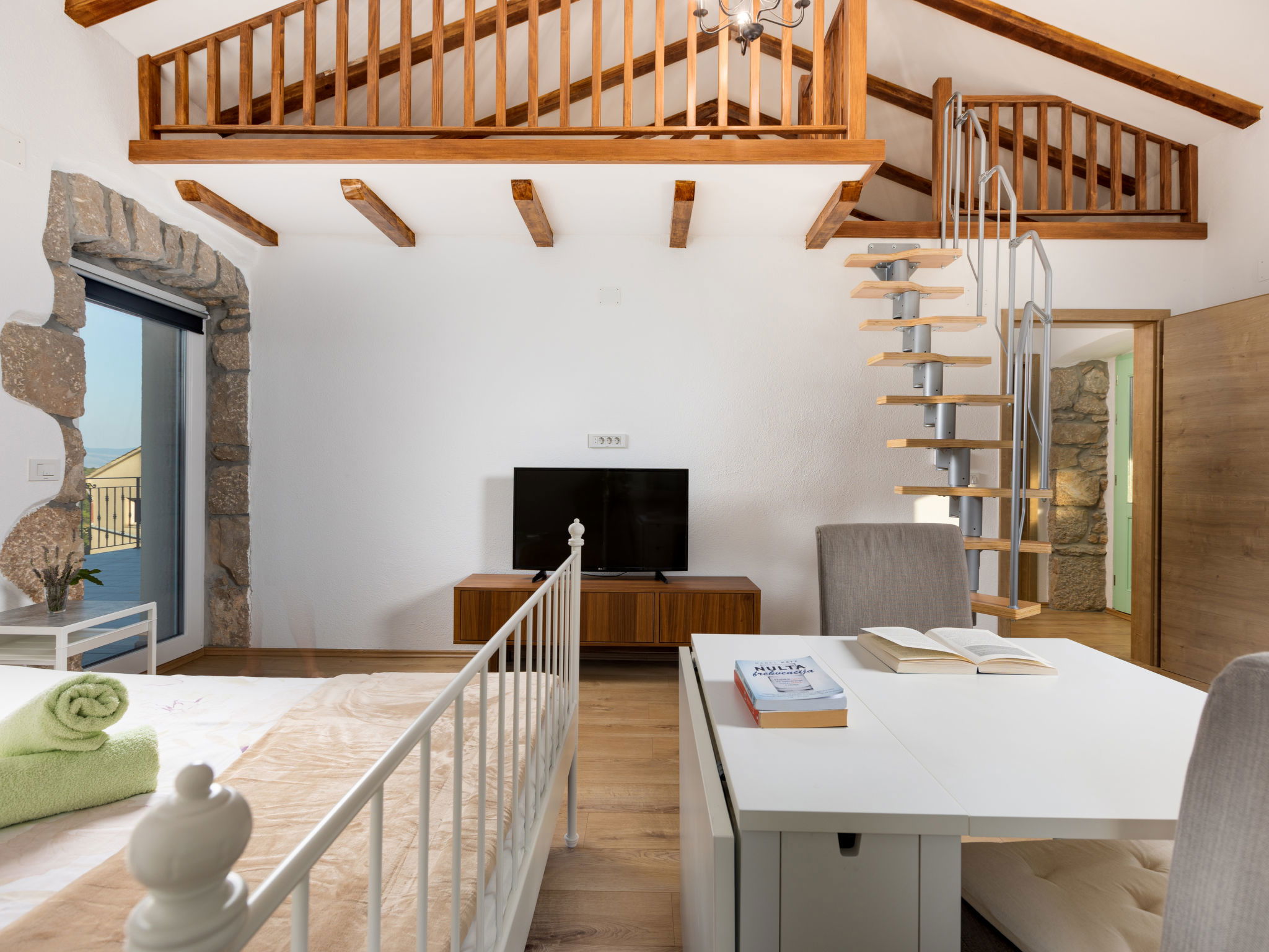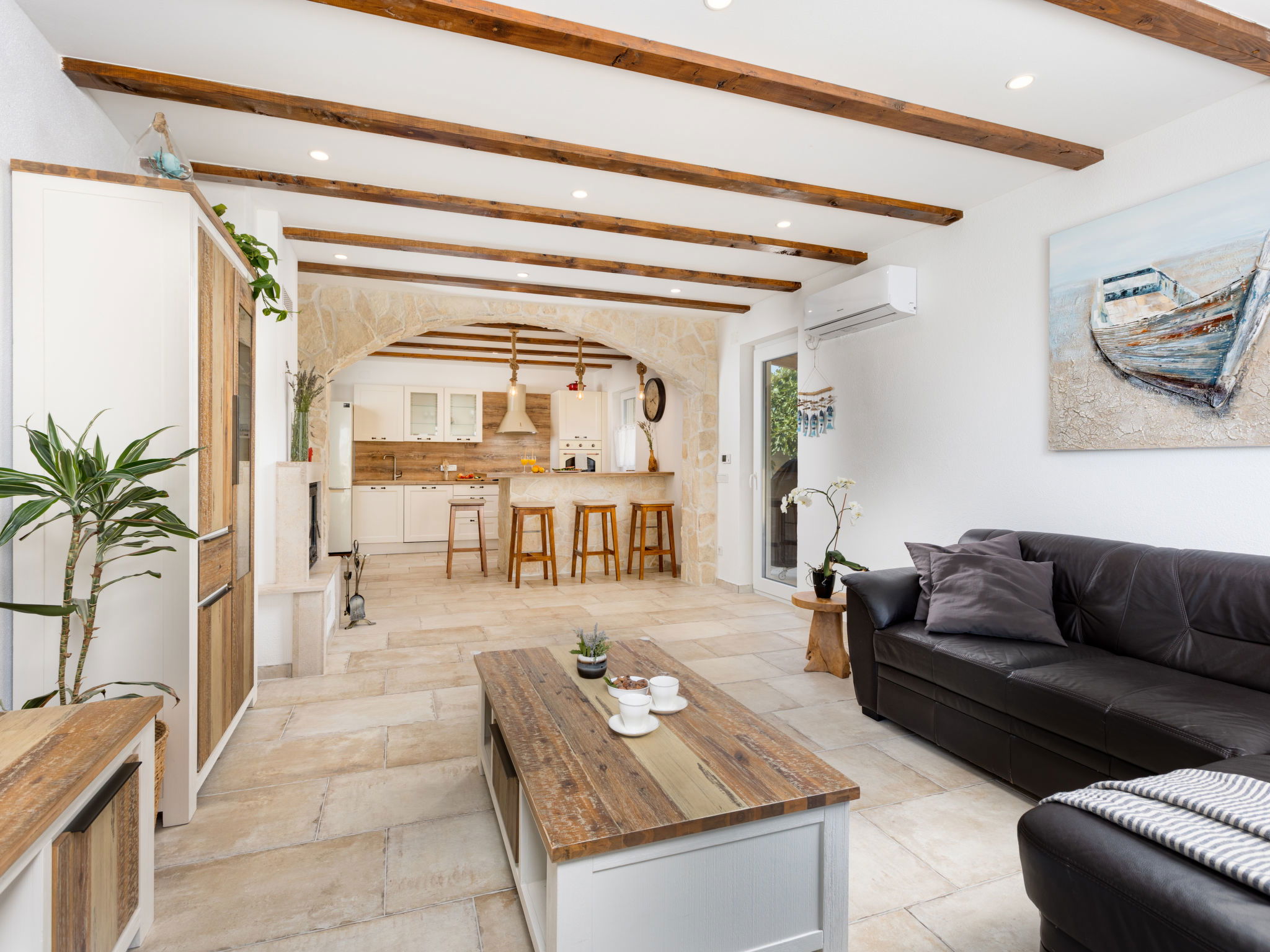 Garica: Beautiful, cosy single-family house "Paesana Heritage House", 2 storeys, built in 1912, renovated in 2018. 6.5 km from the centre of Vrbnik, 11 km from the centre of Malinska, 11 km from the centre of Krk, 6.3 km from the sea, 6.7 km from the beach, in the countryside. Private: property 600 m2, swimming pool angular (6 x 4 m, depth 140 cm, seasonal availability: 15.Mar. - 15.Nov.) with salt-electrolysis pool-cleaning system. Outdoor shower, pool maintenance by the owner/gardener. In the house: internet access, washing machine. Parking (for 3 cars) at the house on the premises. Shop 250 m, supermarket 8.5 km, restaurant 5.7 km, bus stop 6.3 km, pebble beach 6.7 km, concrete beach 6.7 km. Groups of teenagers on request only. Please note: airfield 24 km from the property.