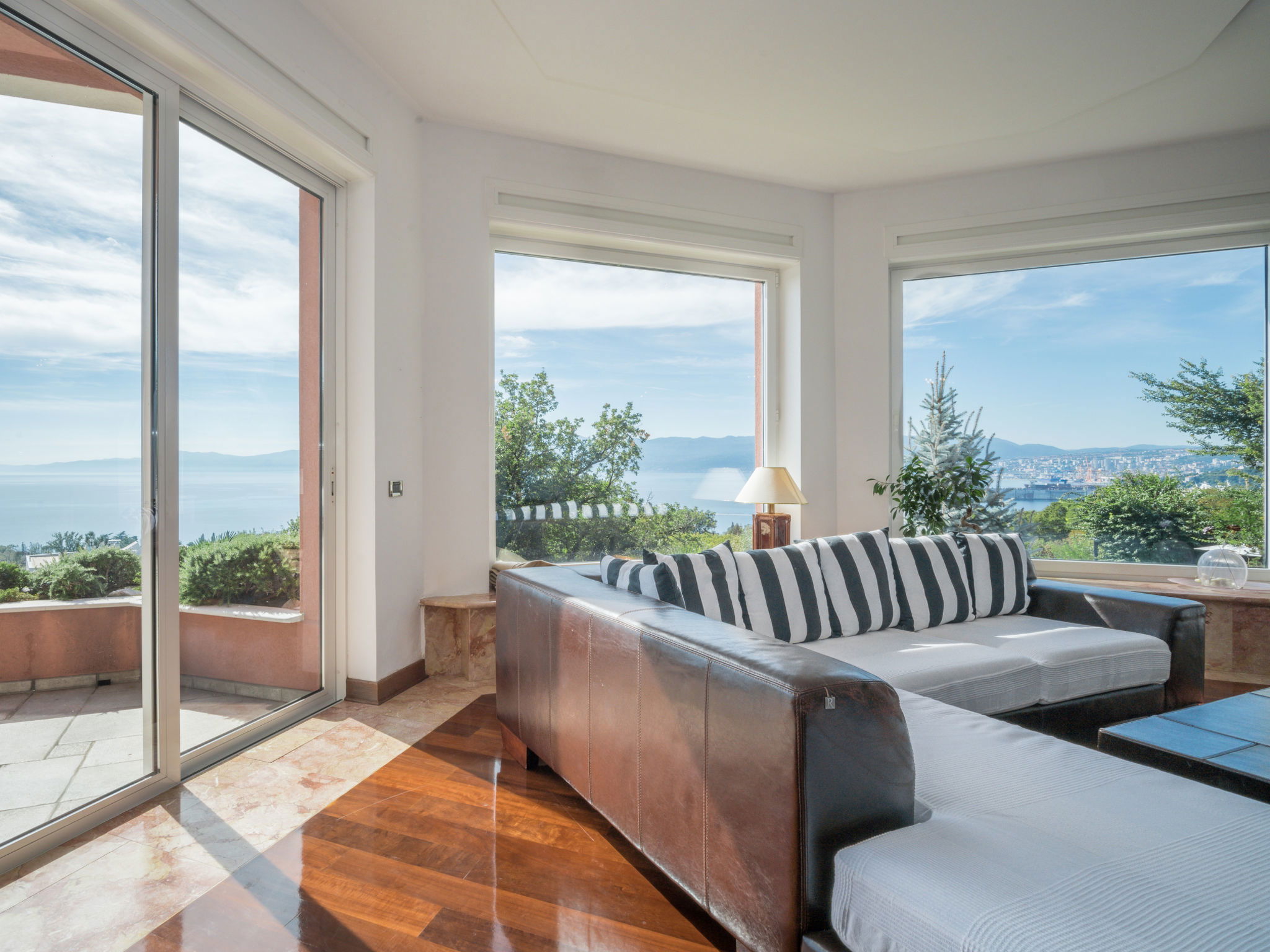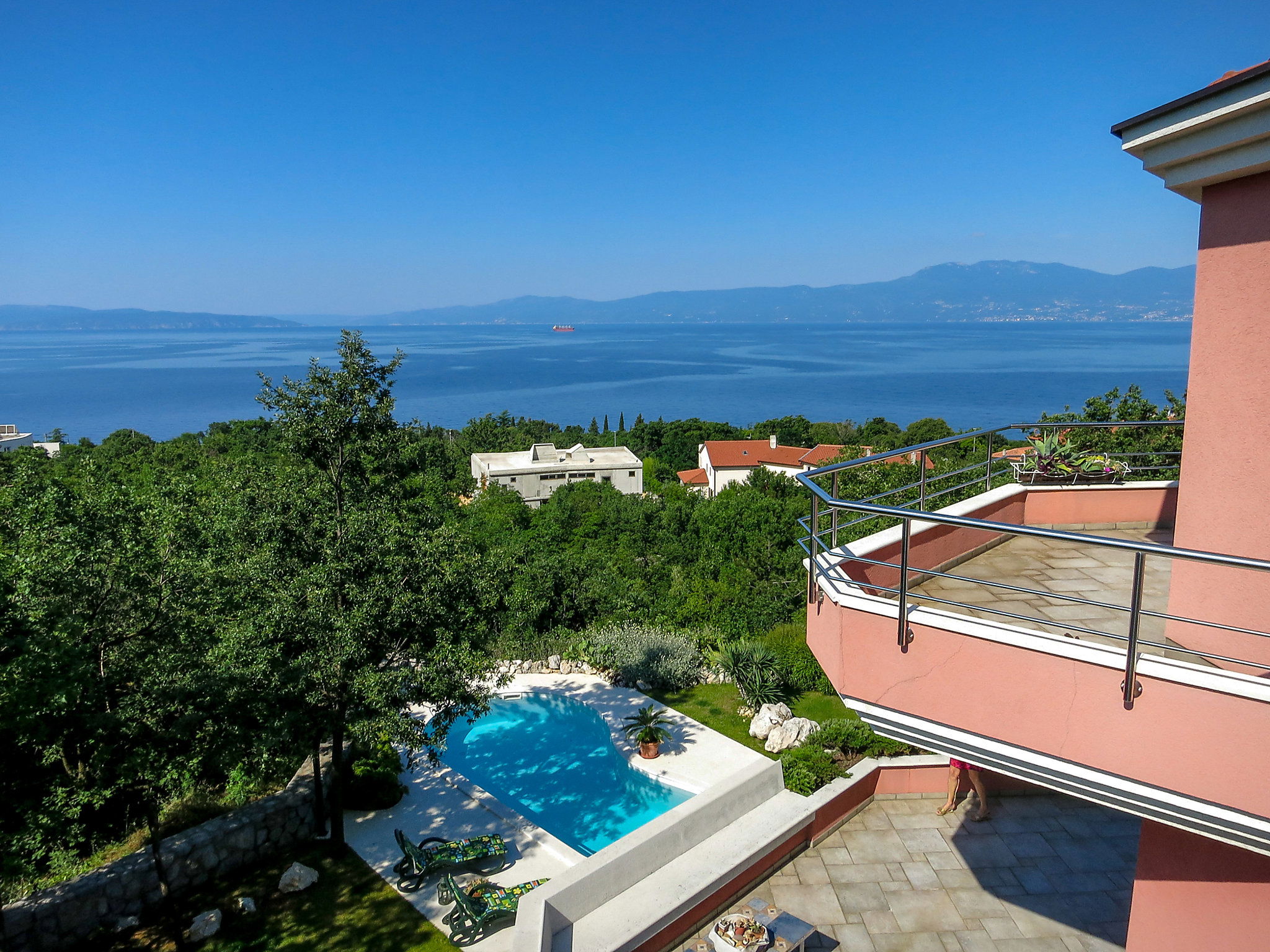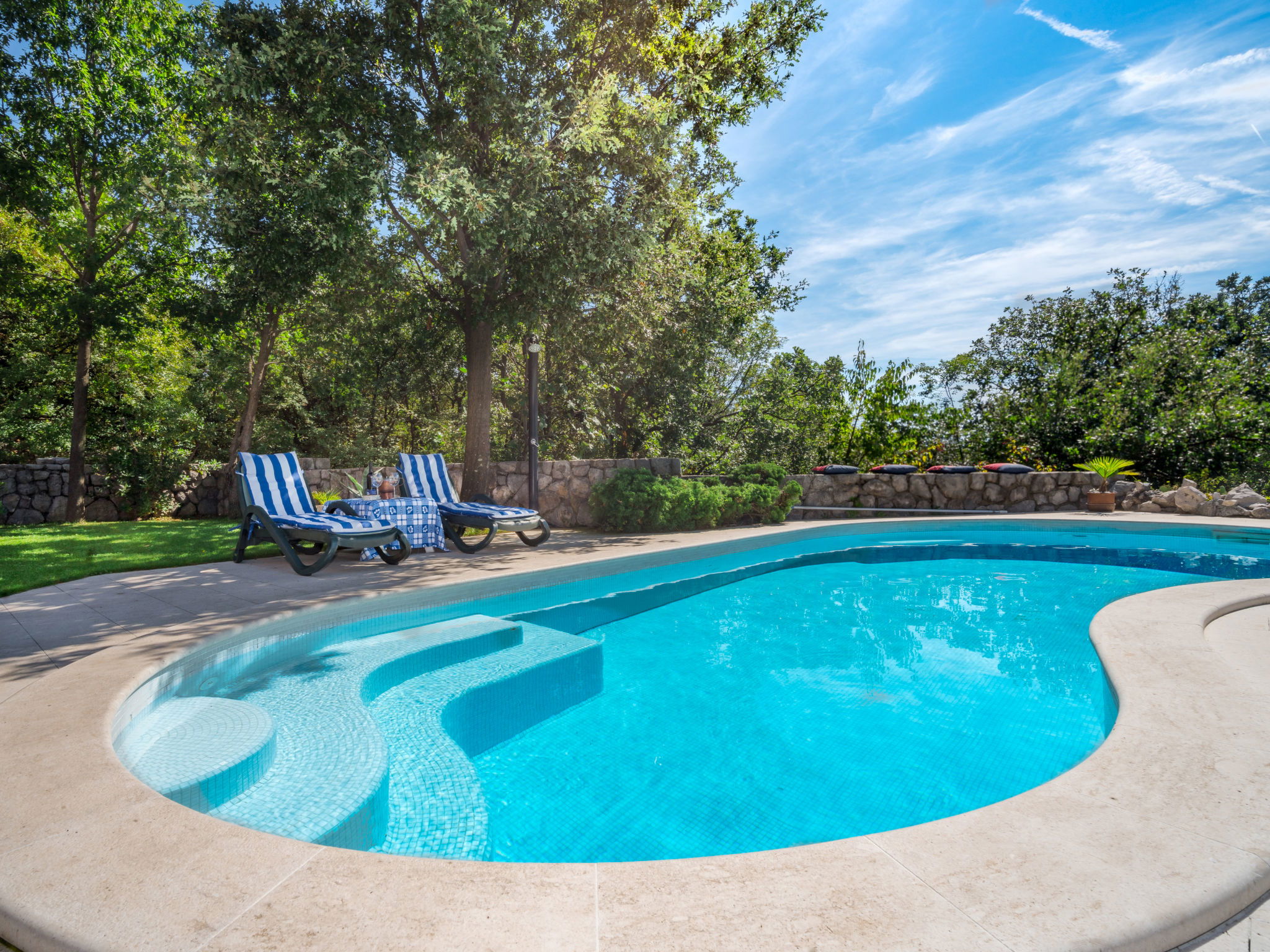 Beautiful villa "Anamia", 3 storeys. In the district of Kostrena 5 km from the centre of Rijeka, 25 km from the centre of Crikvenica, in a quiet, sunny, elevated position, 400 m from the sea, 400 m from the beach, in a cul-de-sac, in the countryside. Private: property 890 m2 (fenced), lawn 300 m2, swimming pool (24 m2, depth 140 cm, seasonal availability: 01.Jun. - 15.Sep.) with internal staircase. Unconventional pool shape. Outdoor shower, terrace (40 m2), garden furniture, barbecue. In the house: internet access, air conditioning, washing machine. Shop 1.3 km, supermarket 2 km, restaurant 400 m, bus stop 450 m, pebble beach 650 m, rocky beach, concrete beach 400 m. Groups of teenagers on request only. By groups of young people double deposit is requested on arrival. Swimming pool with counterflow and hydromassage. Well behaved pets are welcomed.