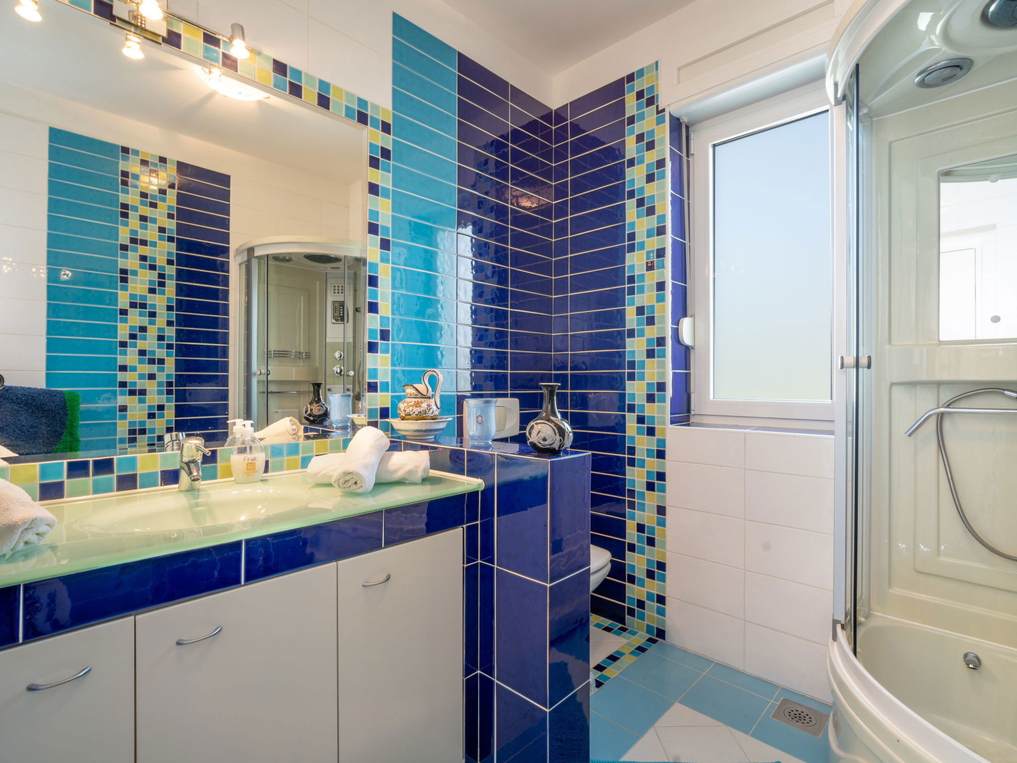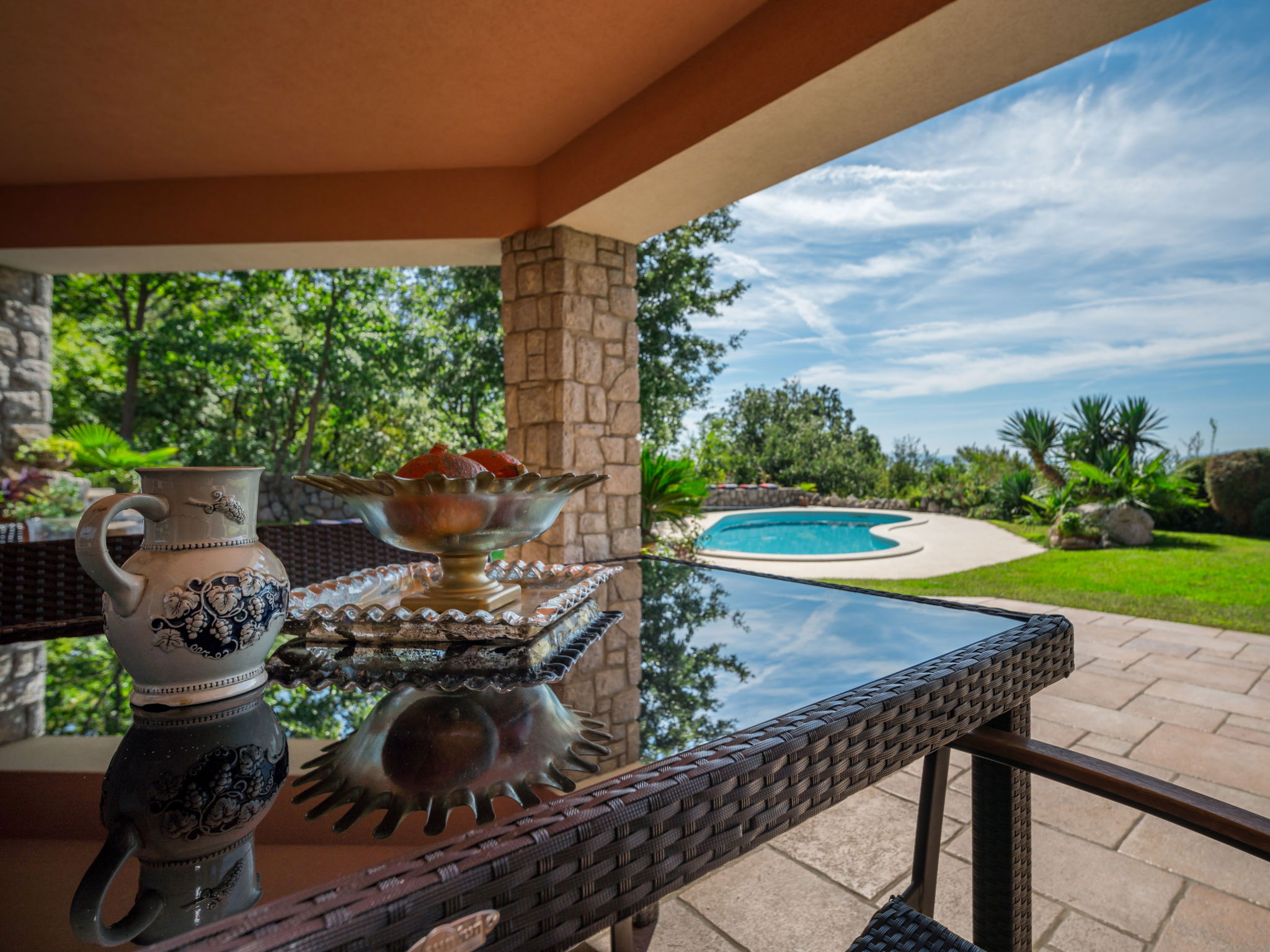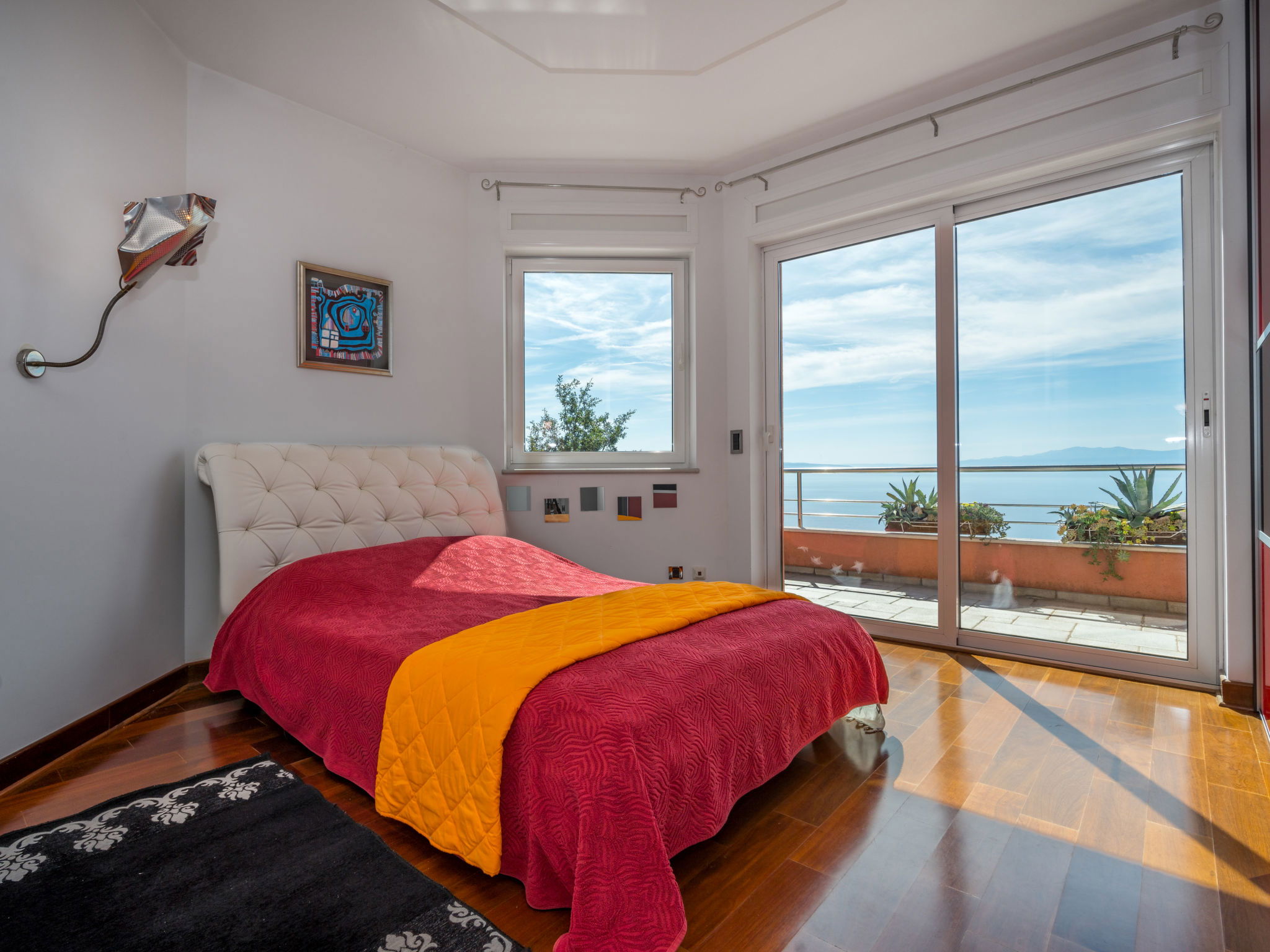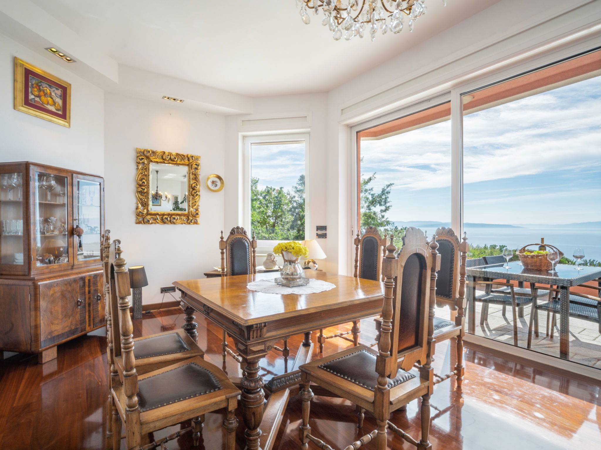 Beautiful villa "Anamia", 3 storeys. In the district of Kostrena 5 km from the centre of Rijeka, 25 km from the centre of Crikvenica, in a quiet, sunny, elevated position, 400 m from the sea, 400 m from the beach, in a cul-de-sac, in the countryside. Private: property 890 m2 (fenced), lawn 300 m2, swimming pool (24 m2, depth 140 cm, seasonal availability: 01.Jun. - 15.Sep.) with internal staircase. Unconventional pool shape. Outdoor shower, terrace (40 m2), garden furniture, barbecue. In the house: internet access, air conditioning, washing machine. Shop 1.3 km, supermarket 2 km, restaurant 400 m, bus stop 450 m, pebble beach 650 m, rocky beach, concrete beach 400 m. Groups of teenagers on request only. By groups of young people double deposit is requested on arrival. Swimming pool with counterflow and hydromassage. Well behaved pets are welcomed.