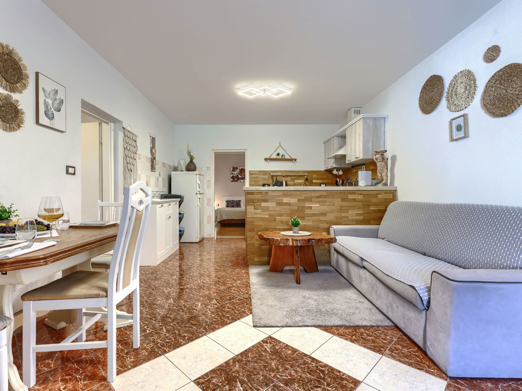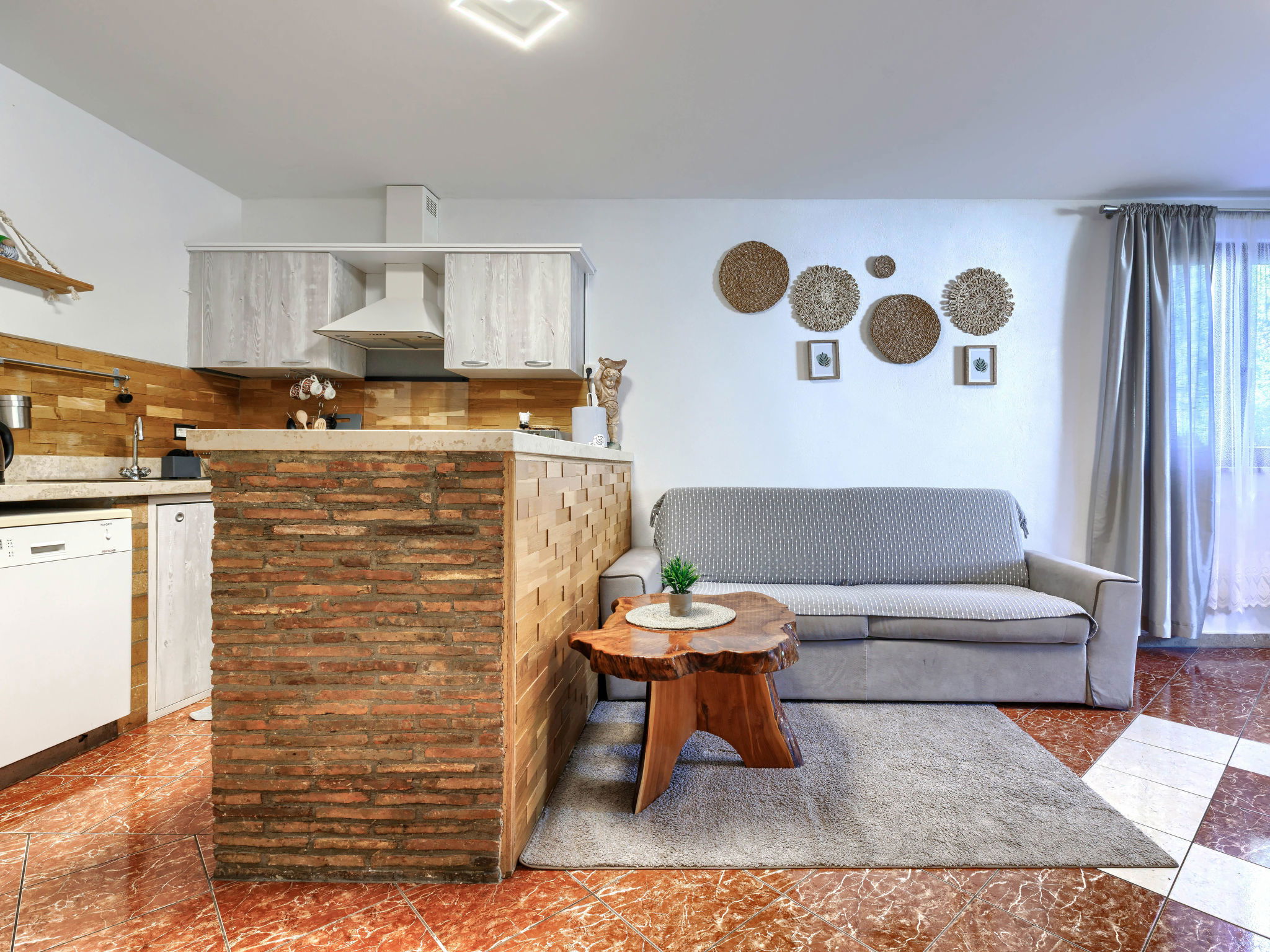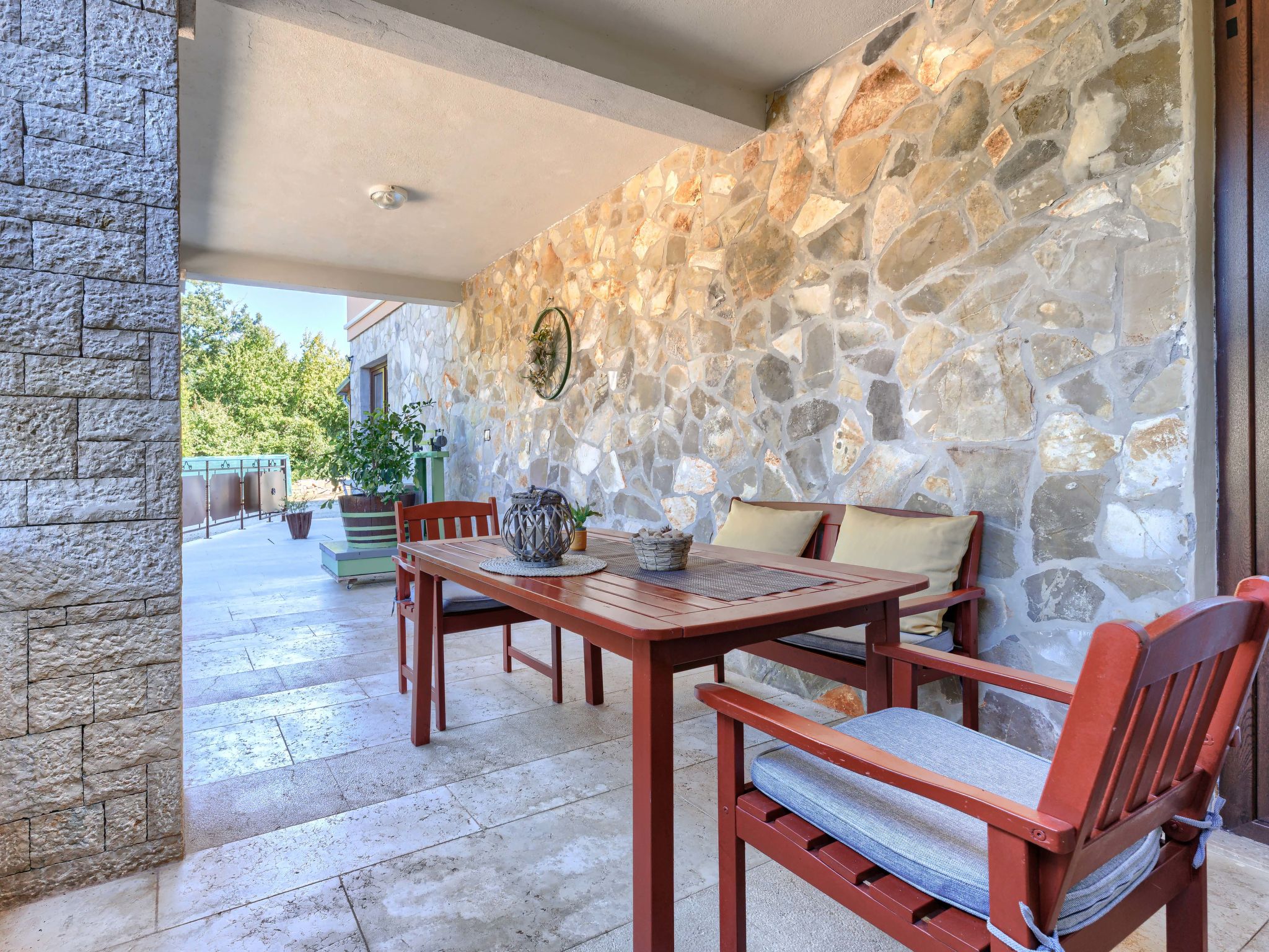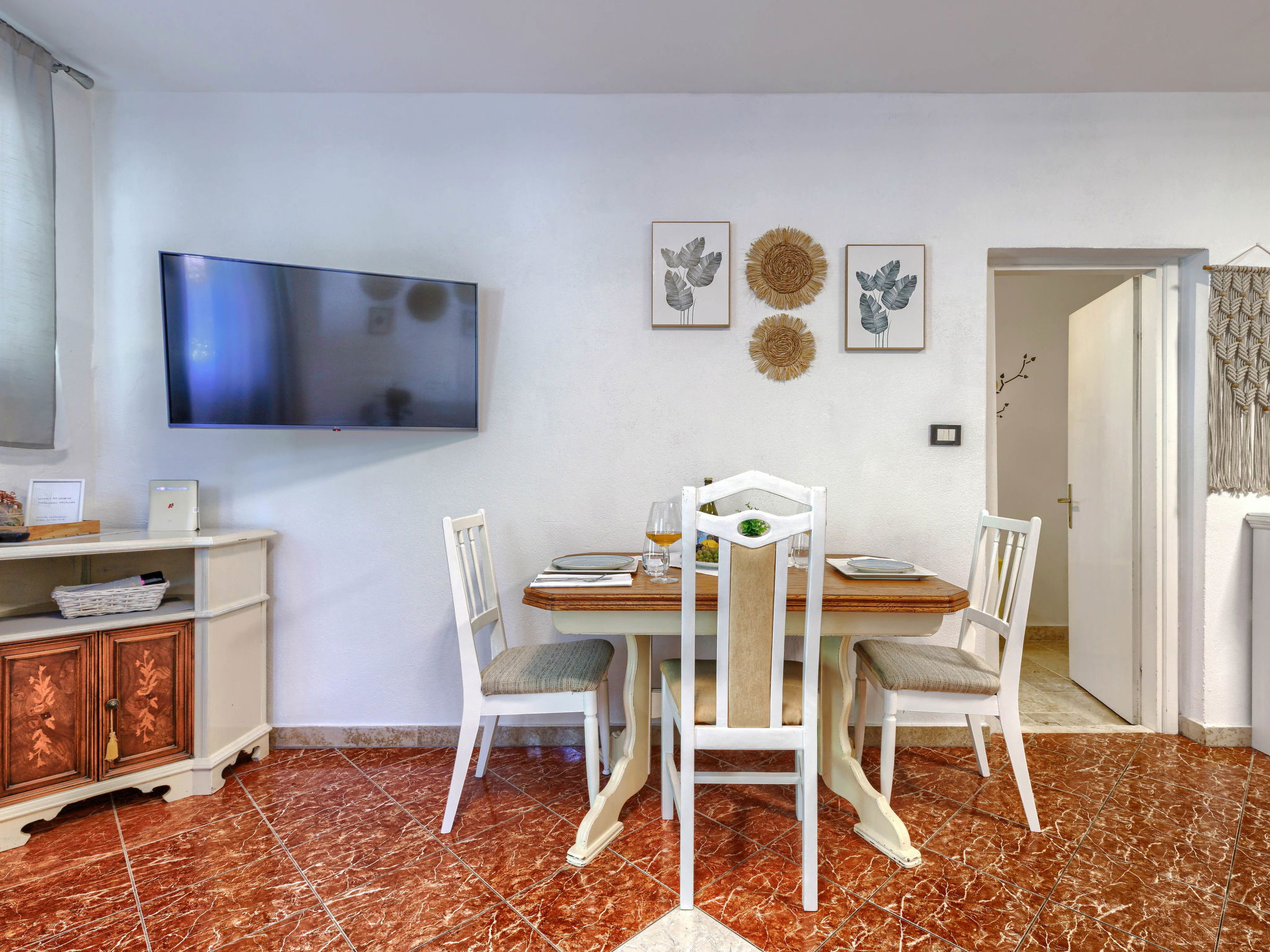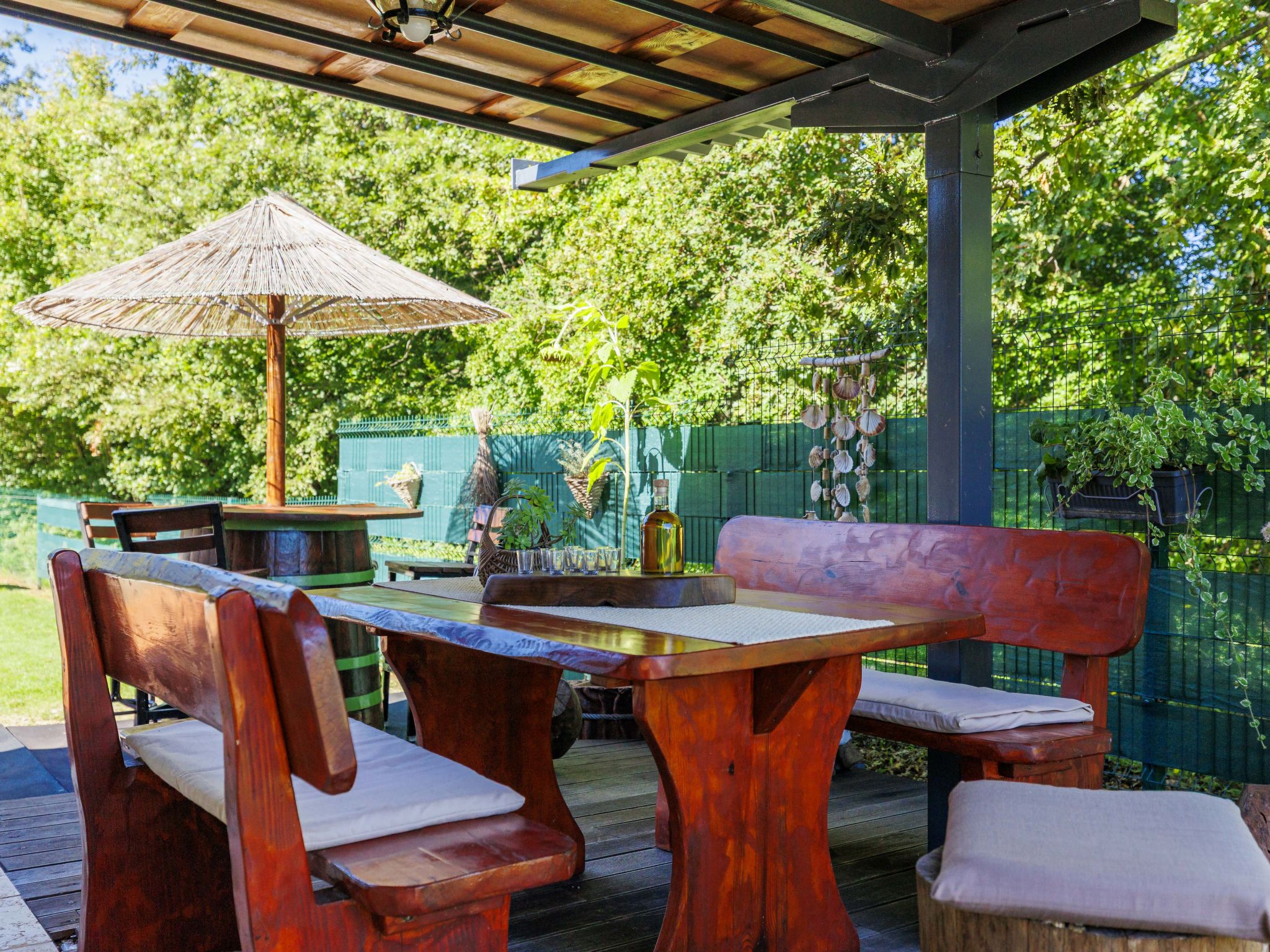 "Viliam", 2-room apartment 50 m2, on the lower ground floor. Living/sleeping room with 1 sofabed, dining table, satellite TV, electric heater and air conditioning. Exit to the terrace. 1 double bedroom. Exit to the terrace. Open kitchen (1 hot plate, oven, dishwasher, 3 gas rings, toaster, kettle, microwave, freezer, electric coffee machine). Shower/WC. Terrace 30 m2 partly roofed. Terrace furniture, barbecue (portable). Facilities: washing machine. Internet (WiFi, free). Please note: non-smokers only. Maximum 1 pet/ dog allowed.