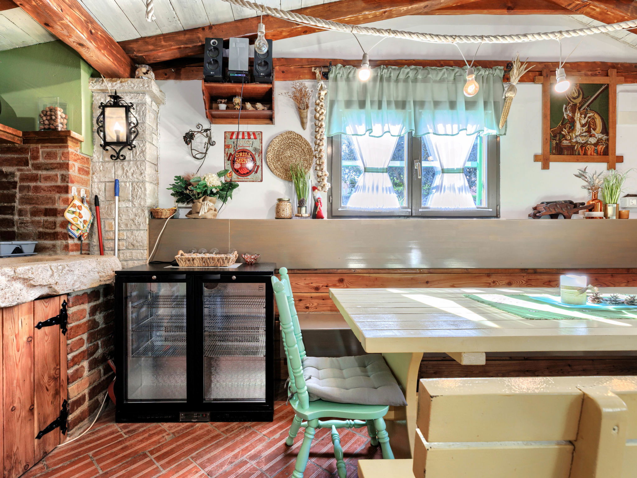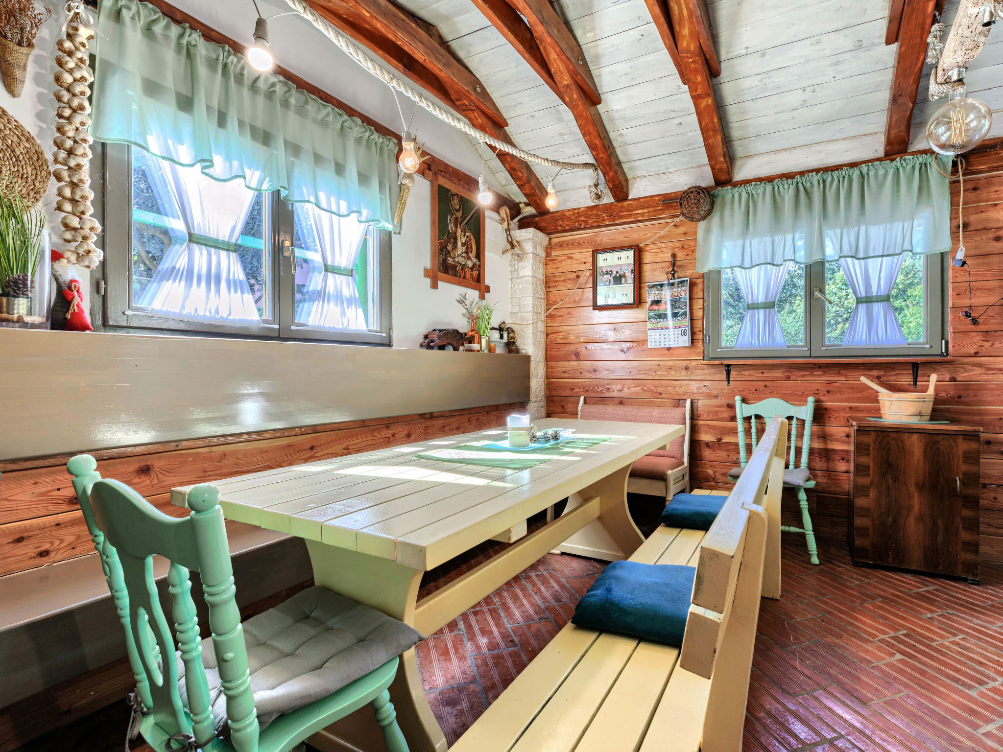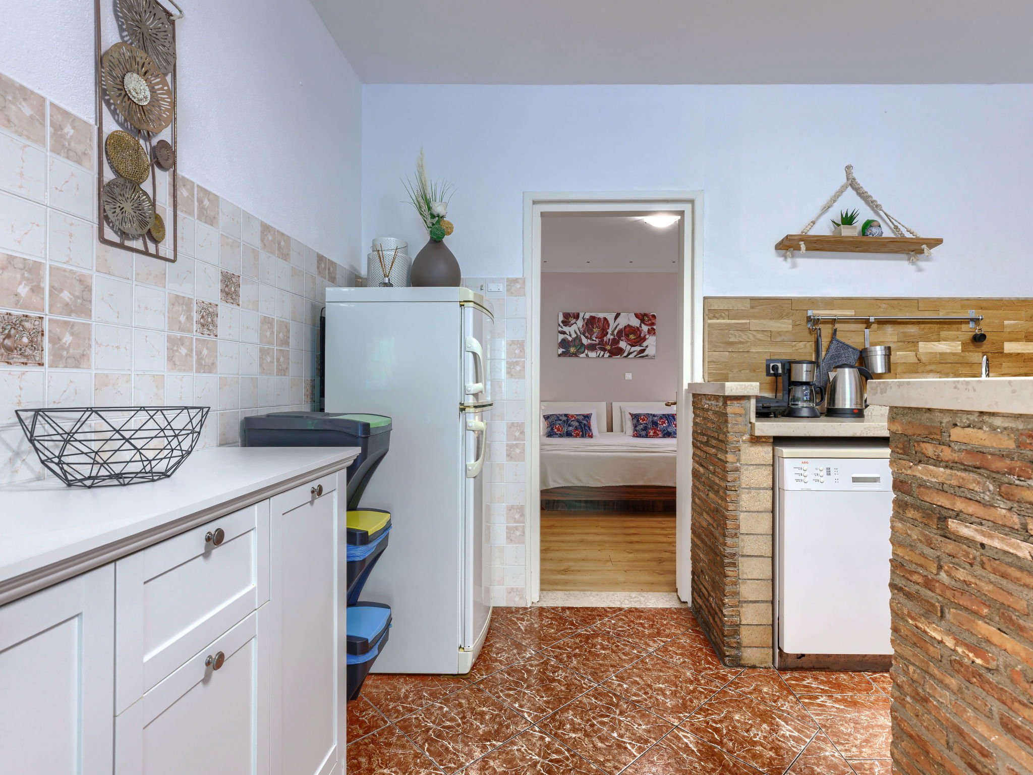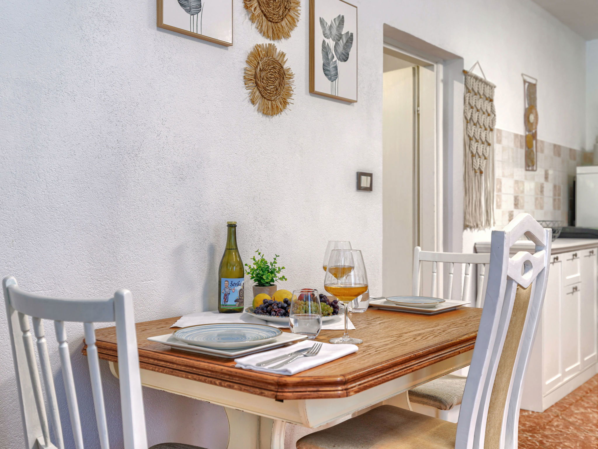 "Viliam", 2-room apartment 50 m2, on the lower ground floor. Living/sleeping room with 1 sofabed, dining table, satellite TV, electric heater and air conditioning. Exit to the terrace. 1 double bedroom. Exit to the terrace. Open kitchen (1 hot plate, oven, dishwasher, 3 gas rings, toaster, kettle, microwave, freezer, electric coffee machine). Shower/WC. Terrace 30 m2 partly roofed. Terrace furniture, barbecue (portable). Facilities: washing machine. Internet (WiFi, free). Please note: non-smokers only. Maximum 1 pet/ dog allowed.