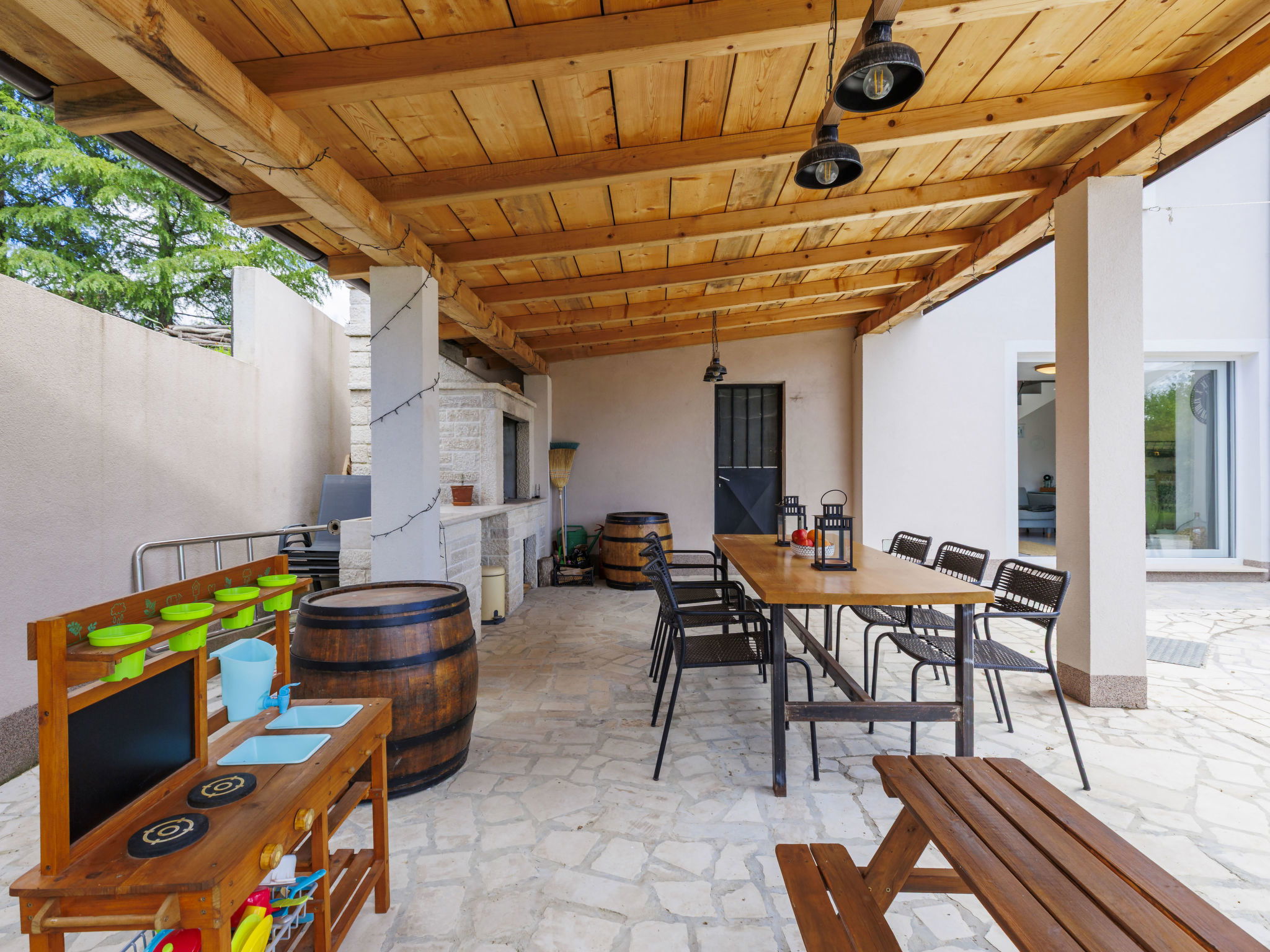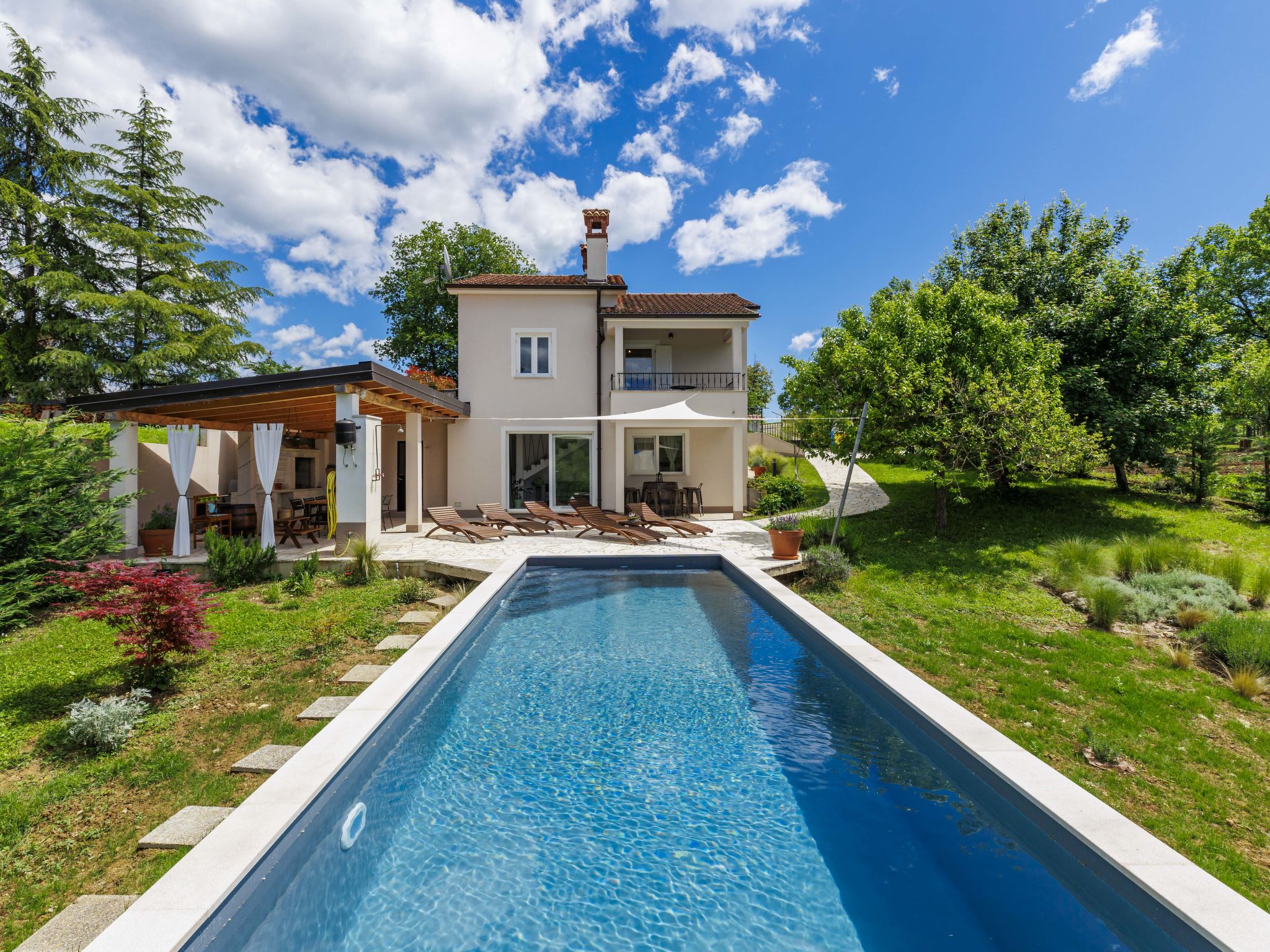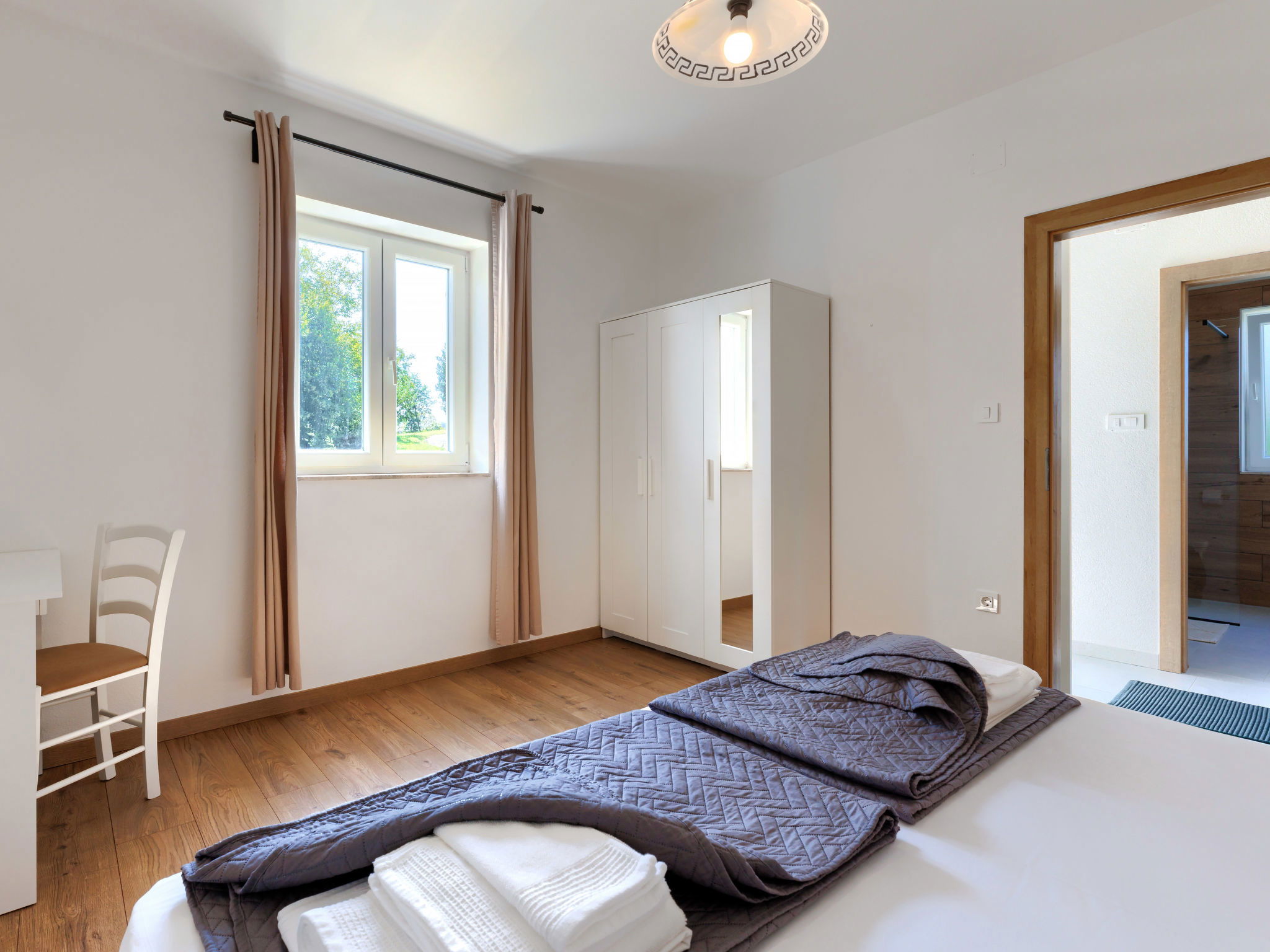 Single-family house "Klementini", 2 storeys, renovated in 2023. 8 km from the centre of Pazin, 22 km from the centre of Roč, in a sunny position, 40 km from the sea. Private: property 1'300 m2, lawn, swimming pool (9 x 3 m, depth 140 cm, seasonal availability: 01.May. - 01.Oct.) with internal staircase and salt-electrolysis pool-cleaning system. Outdoor shower, terrace (40 m2), garden furniture, barbecue, pool maintenance by the owner/gardener. In the house: internet access, washing machine. Parking (for 2 cars) at the house on the premises. Shop 100 m, supermarket 8 km, restaurant 100 m, bus stop 220 m, pebble beach 40 km, public bathing area 40 km. Walking paths from the house 50 m, cycle lane 100 m. Nearby attractions: Nature park Učka 27 km. The owner does not accept any youth groups.