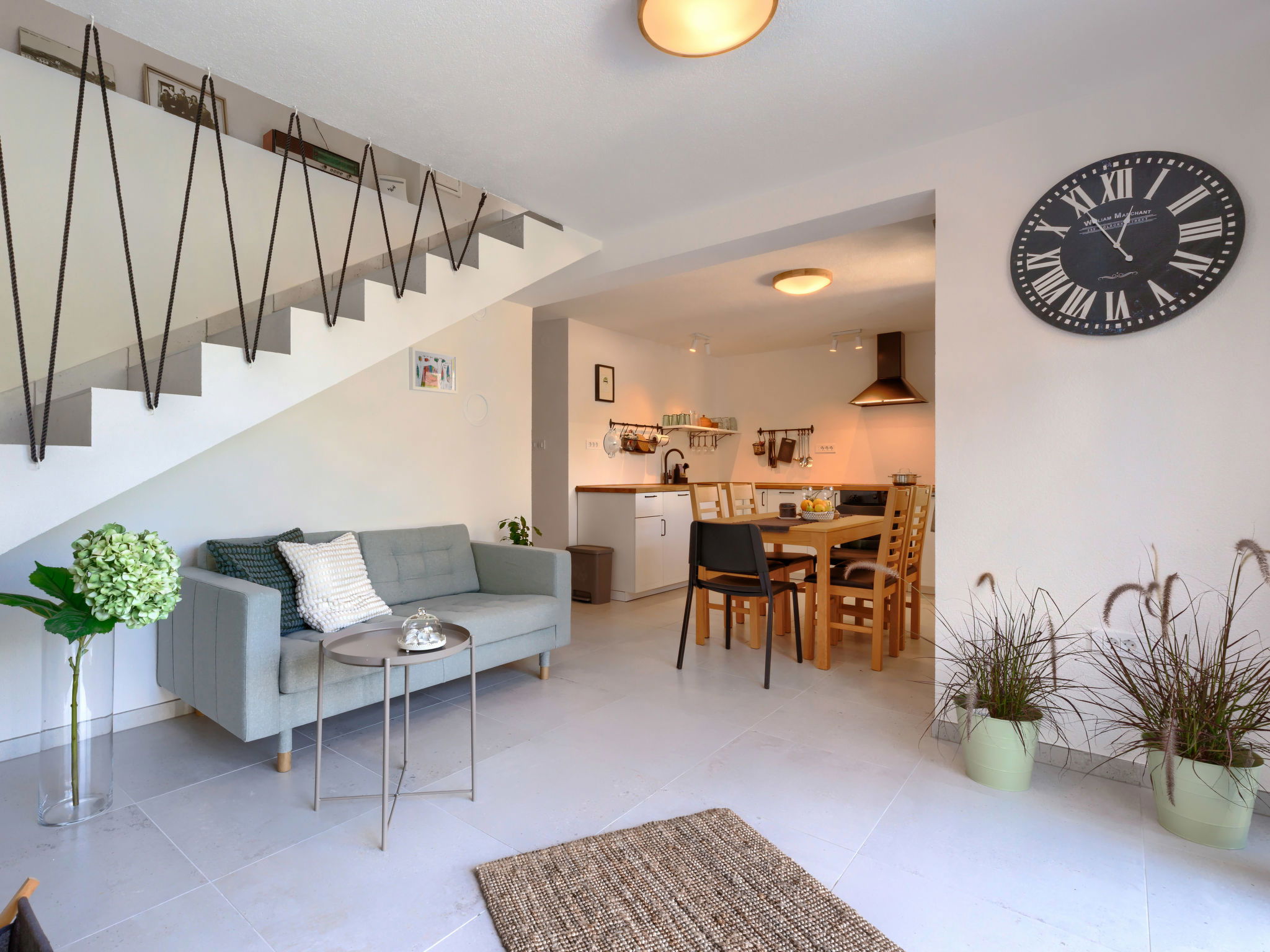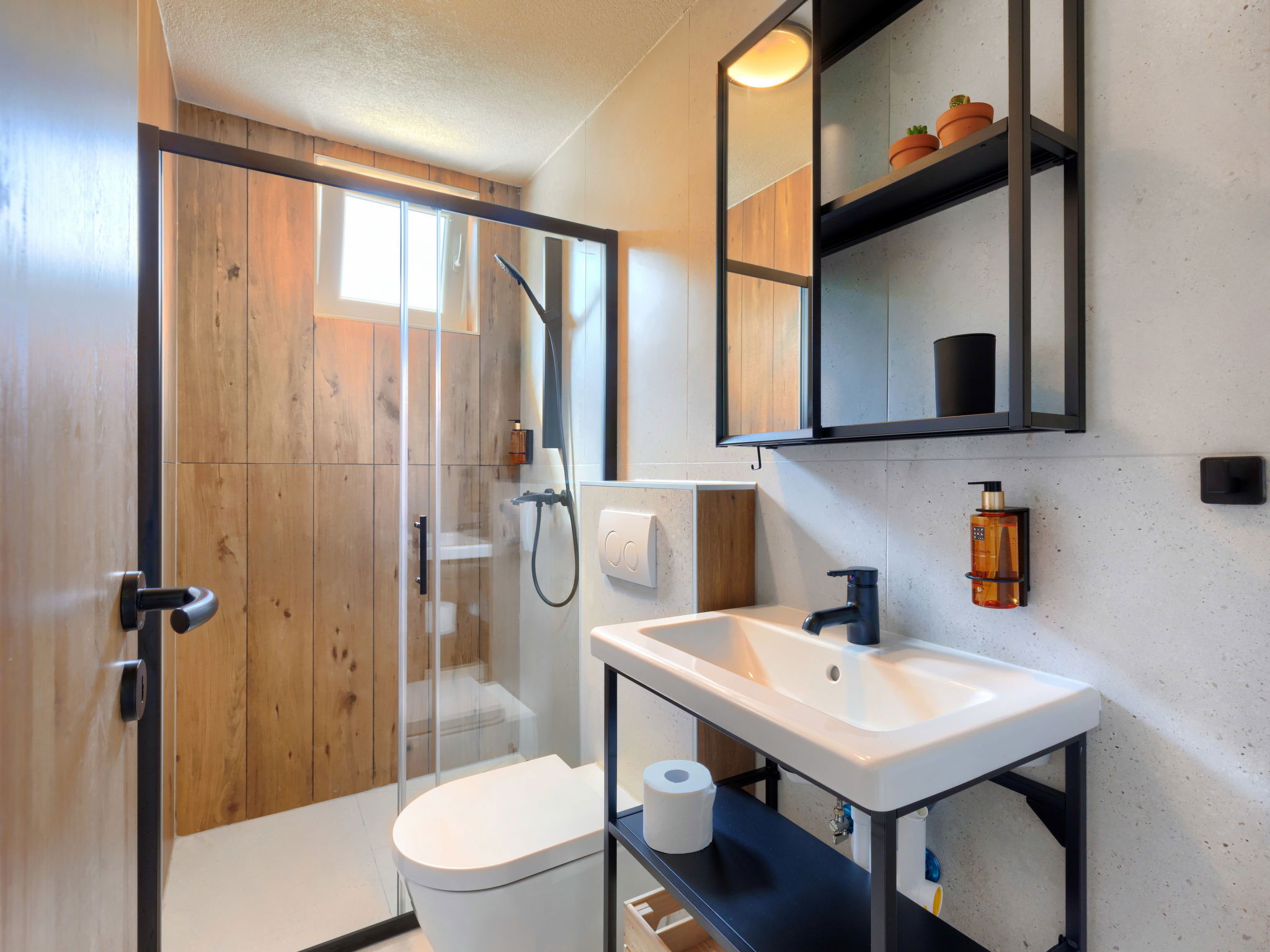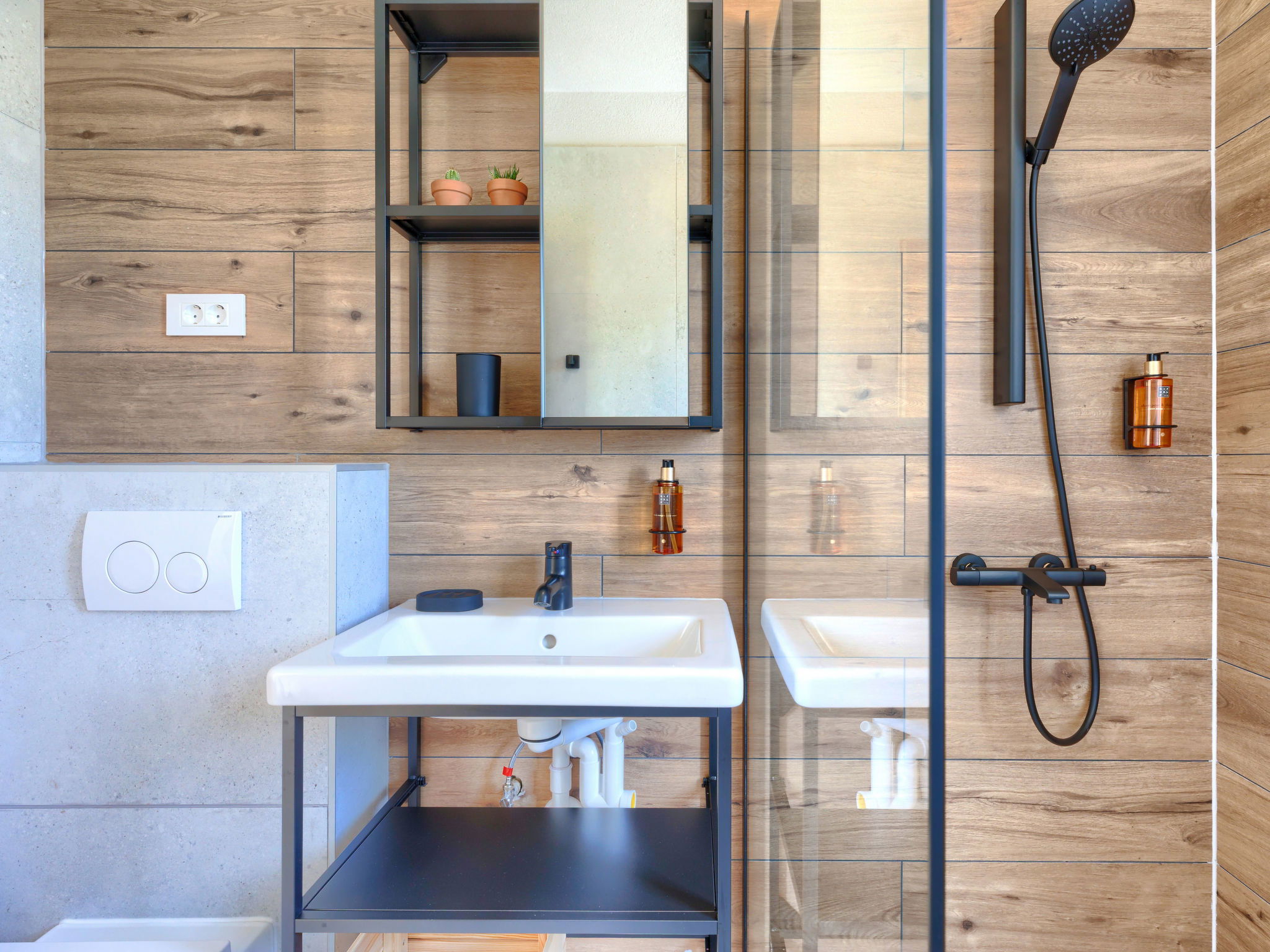 4-room house 85 m2 on 2 levels. Beautiful furnishings: living/dining room with satellite TV (flat screen), air conditioning. Exit to the terrace. Open kitchen (oven, dishwasher, 4 induction hot plates, kettle, freezer, electric coffee machine). Shower/WC. Upper floor: open living/sleeping room with 1 double sofabed (140 cm, length 200 cm), satellite TV (flat screen), air conditioning. Exit to the balcony. 1 room with 1 french bed (160 cm, length 200 cm). 1 room with 1 french bed (180 cm, length 200 cm). Shower/WC. Forced-air heating. Balcony 8 m2, terrace 8 m2, roofed. Terrace furniture, deck chairs. View of the swimming pool. Facilities: safe, baby cot, hair dryer. Internet (WiFi, free).