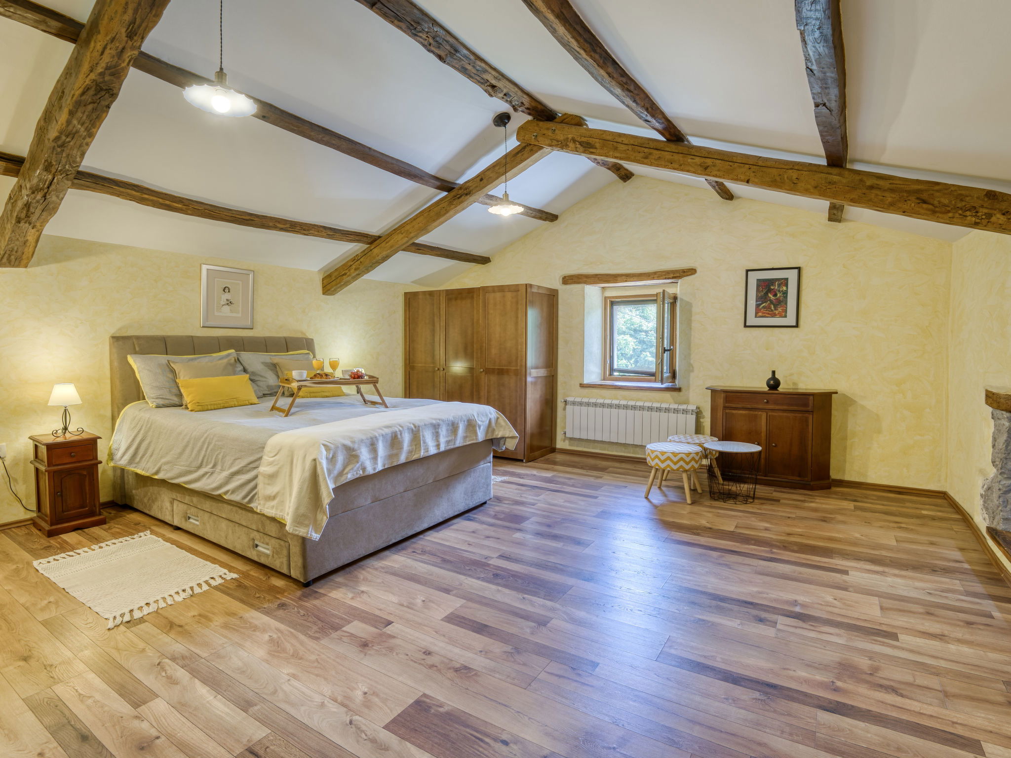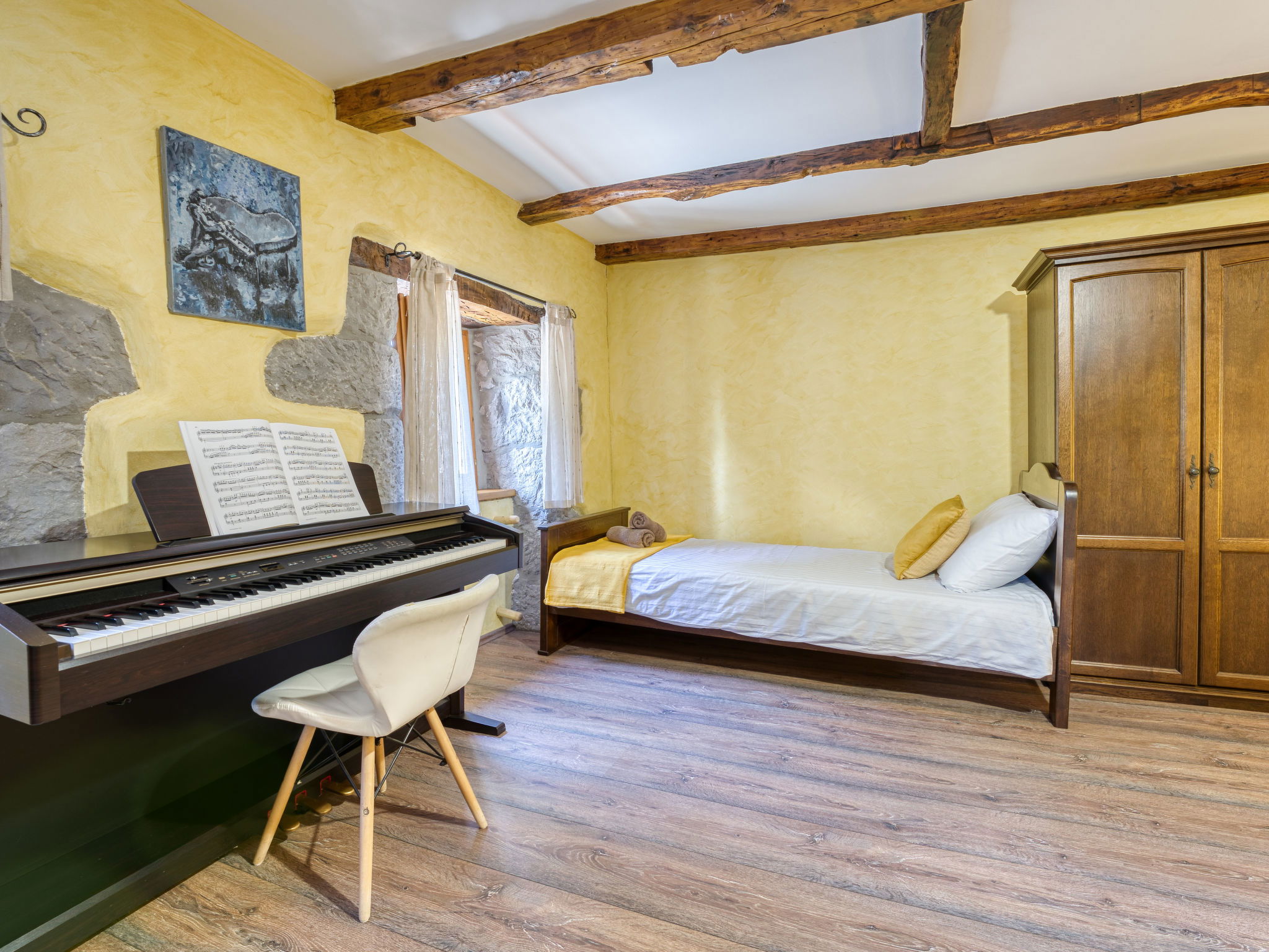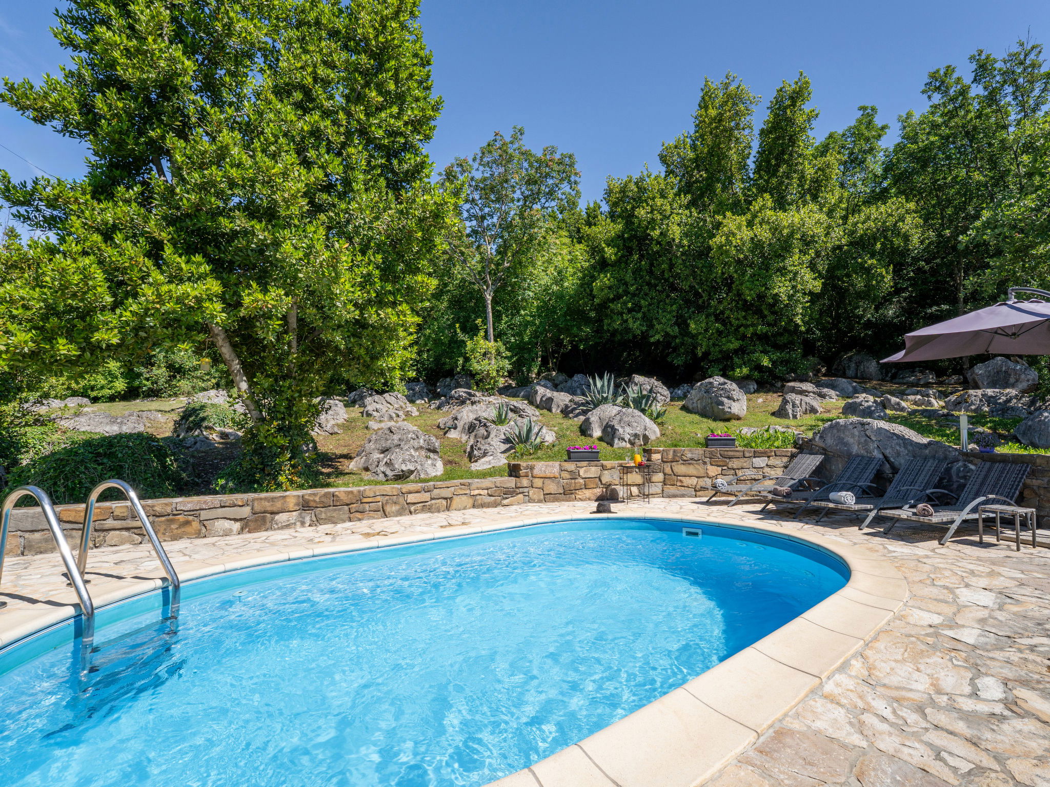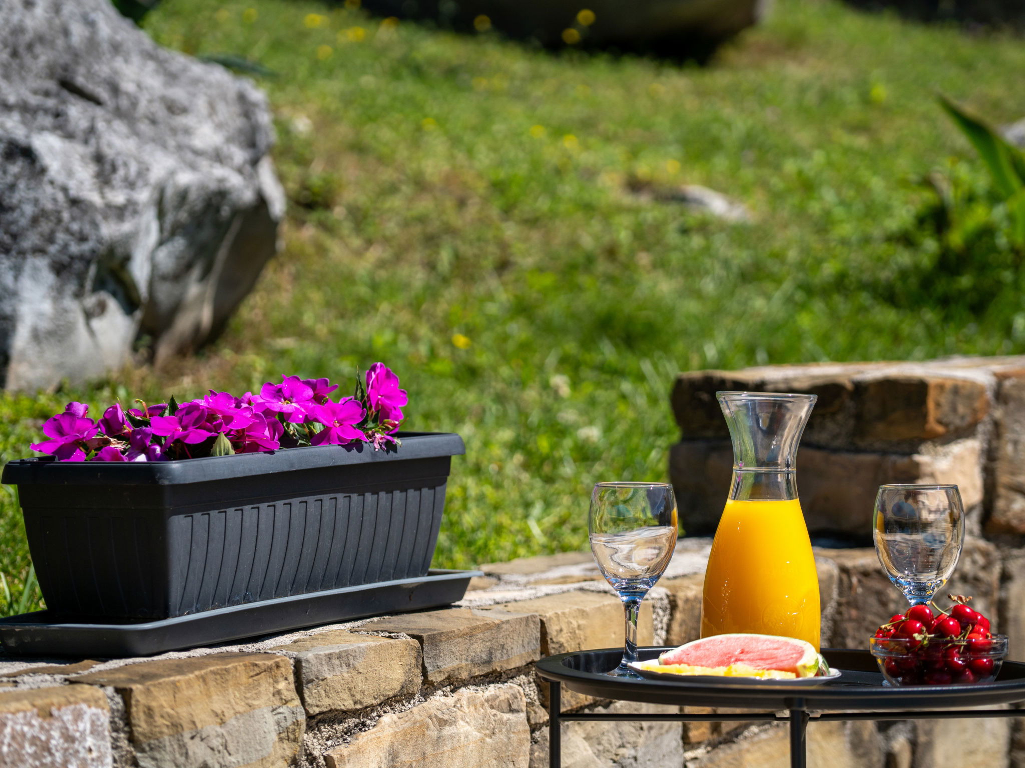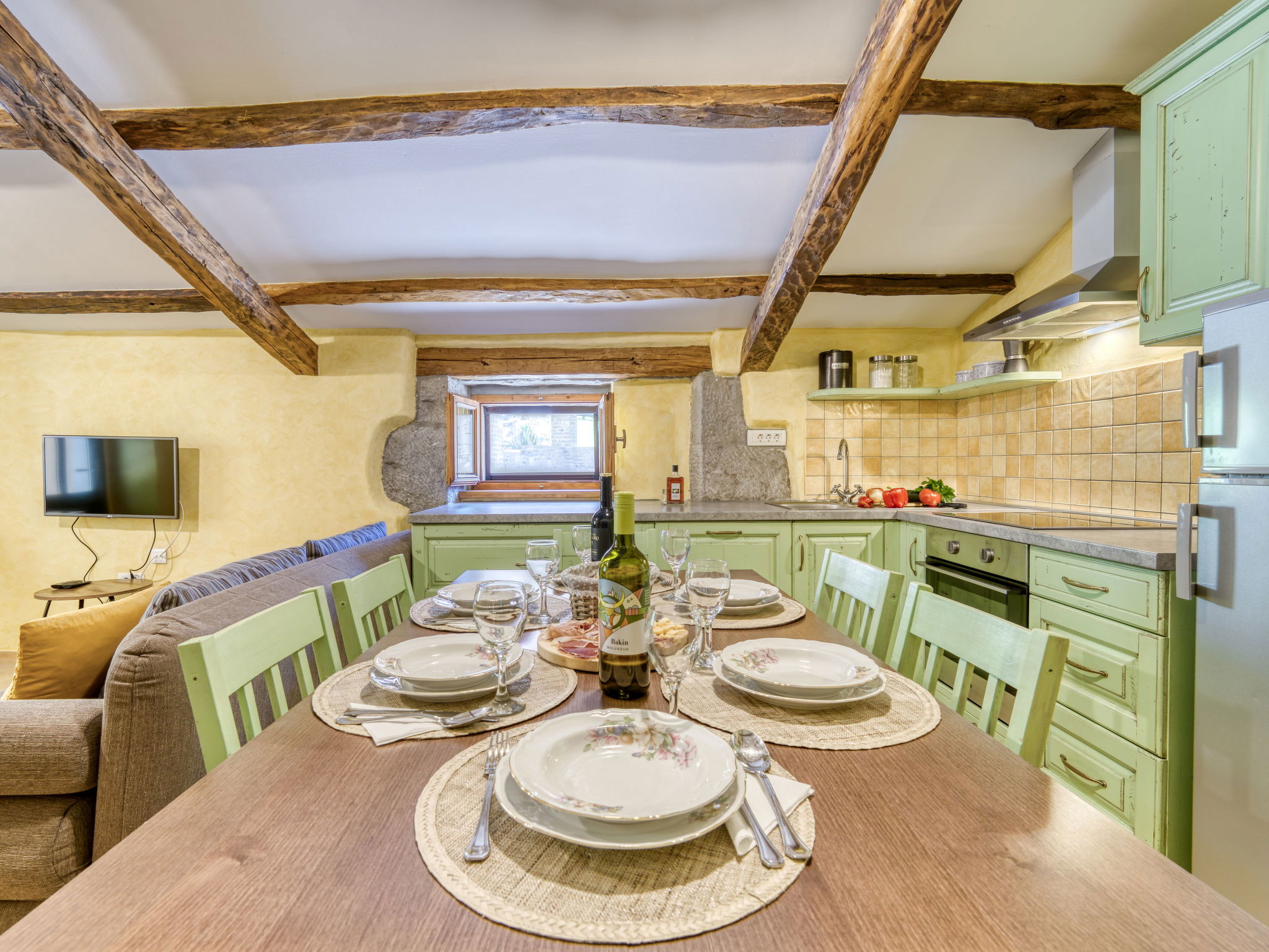 Semi-detached house "Kapitani", 2 storeys, surrounded by trees. In the hamlet Brnobići 2.5 km from the centre of Hum, 5 km from the centre of Roč, 11 km from the centre of Buzet, in a quiet, sunny, elevated position, 40 km from the sea, in a cul-de-sac, in the countryside. Private: property 900 m2, swimming pool (20 m2, depth 130 cm, seasonal availability: 01.Jun. - 30.Sep.). Barbecue. In the house: internet access, washing machine. Parking at the house on the premises. Shop 5 km, restaurant 2.5 km, bus stop 5.1 km, pebble beach 40 km. Ground floor is closed and not occupied.