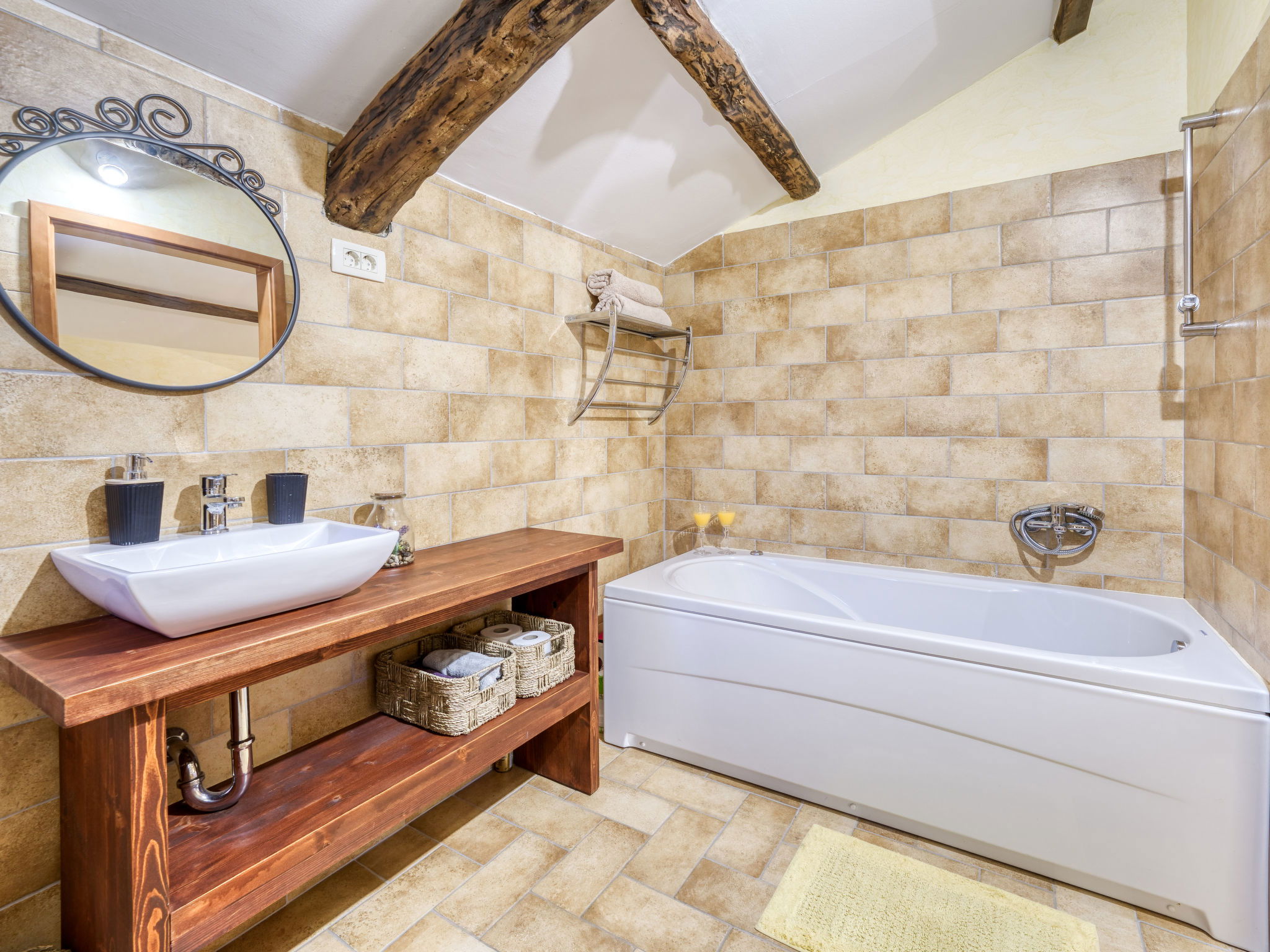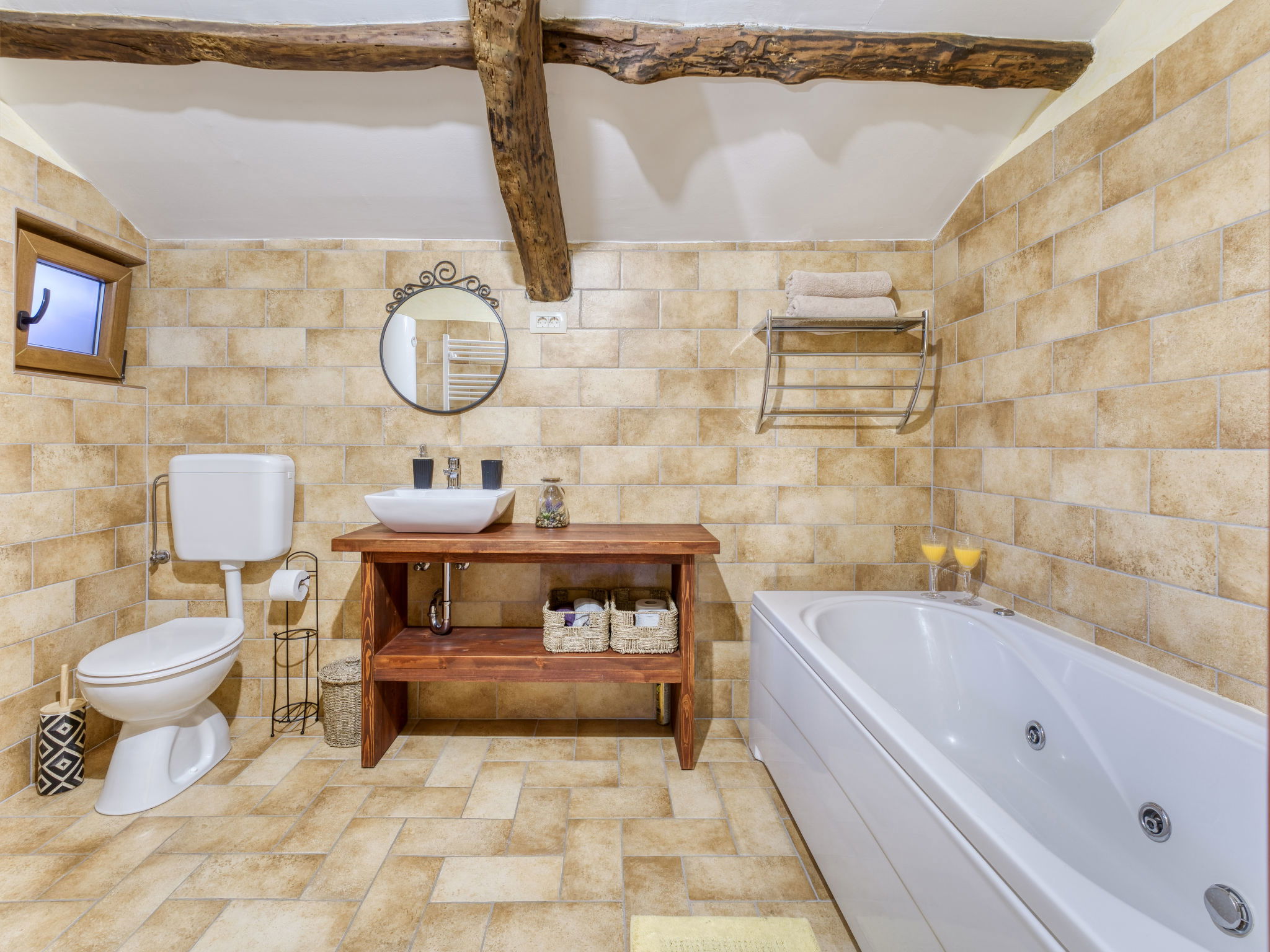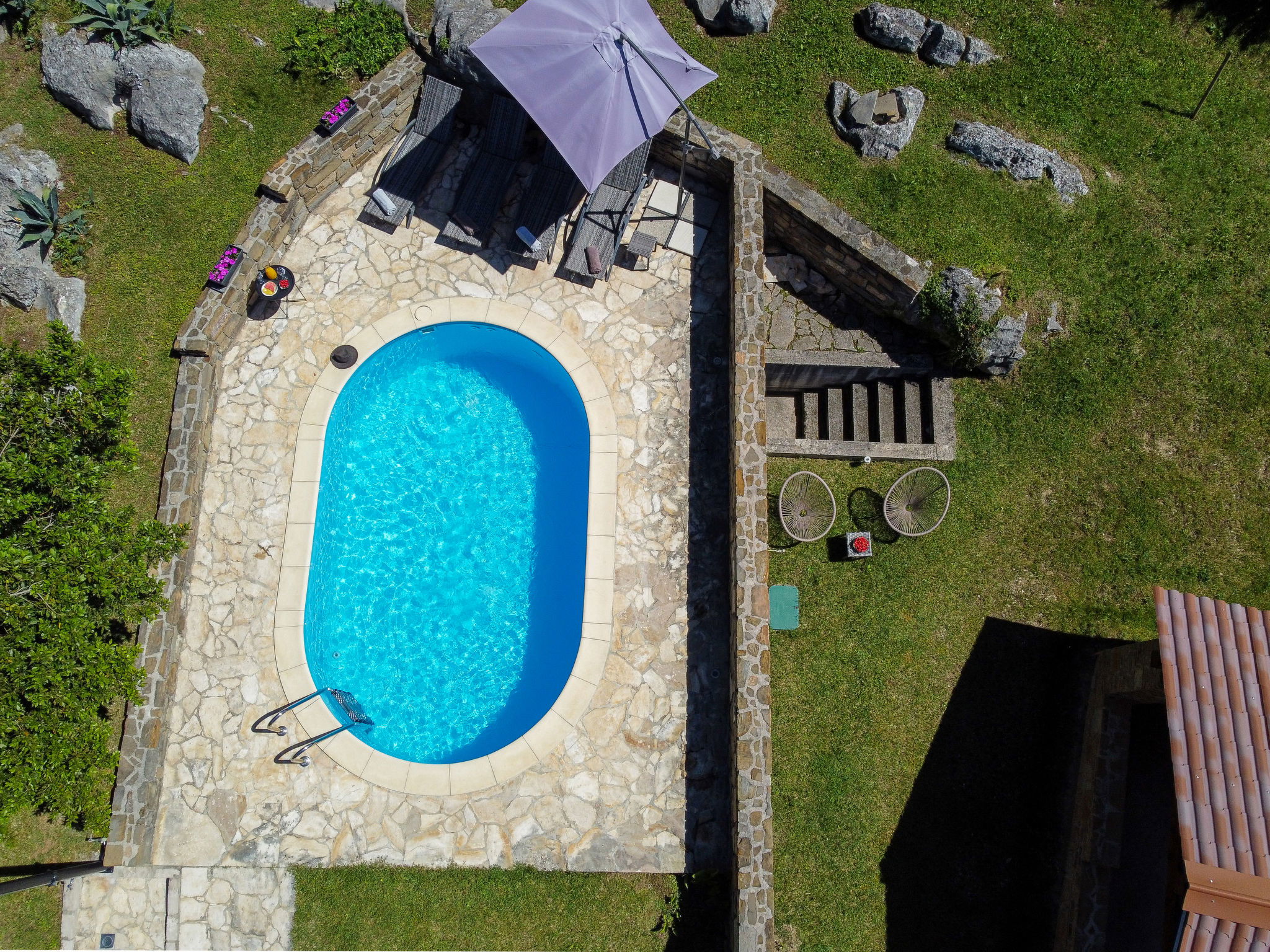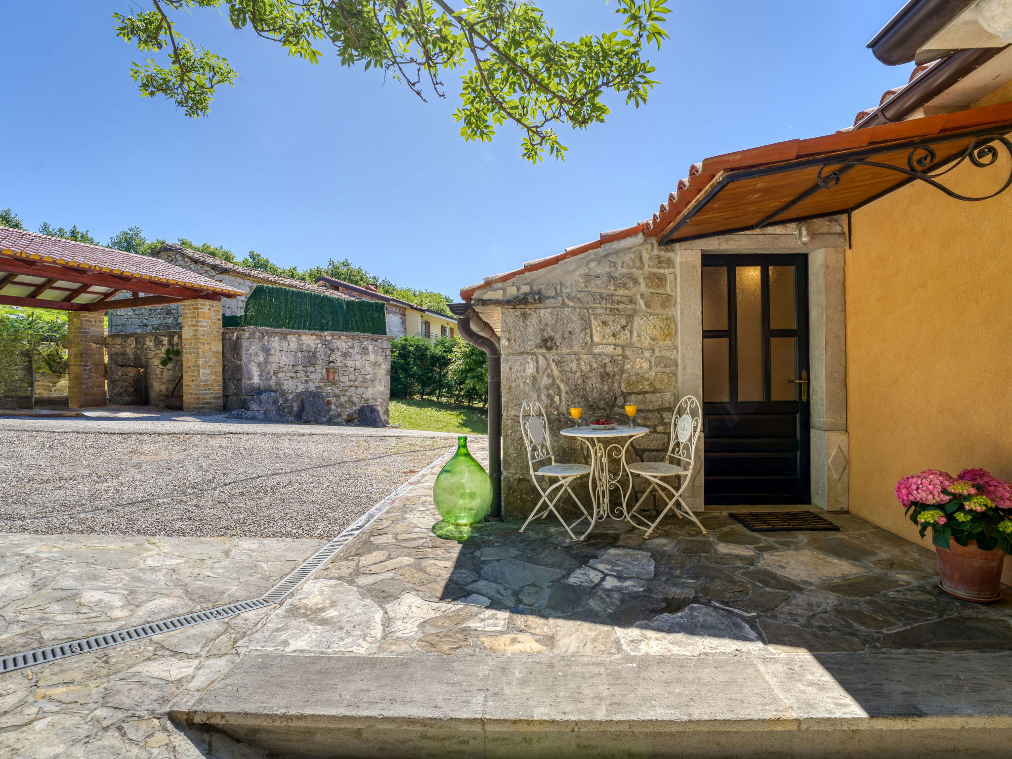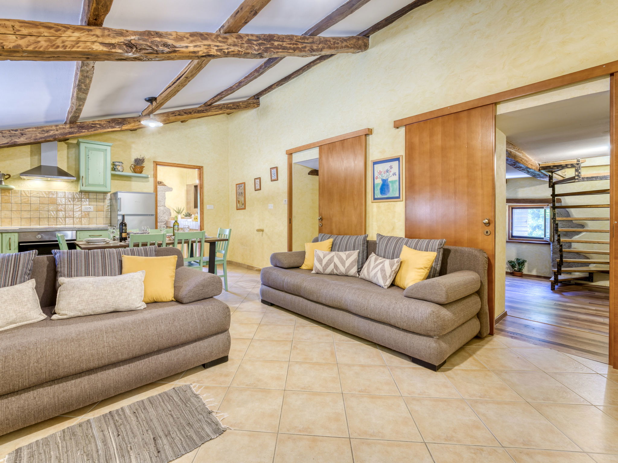 Semi-detached house "Kapitani", 2 storeys, surrounded by trees. In the hamlet Brnobići 2.5 km from the centre of Hum, 5 km from the centre of Roč, 11 km from the centre of Buzet, in a quiet, sunny, elevated position, 40 km from the sea, in a cul-de-sac, in the countryside. Private: property 900 m2, swimming pool (20 m2, depth 130 cm, seasonal availability: 01.Jun. - 30.Sep.). Barbecue. In the house: internet access, washing machine. Parking at the house on the premises. Shop 5 km, restaurant 2.5 km, bus stop 5.1 km, pebble beach 40 km. Ground floor is closed and not occupied.