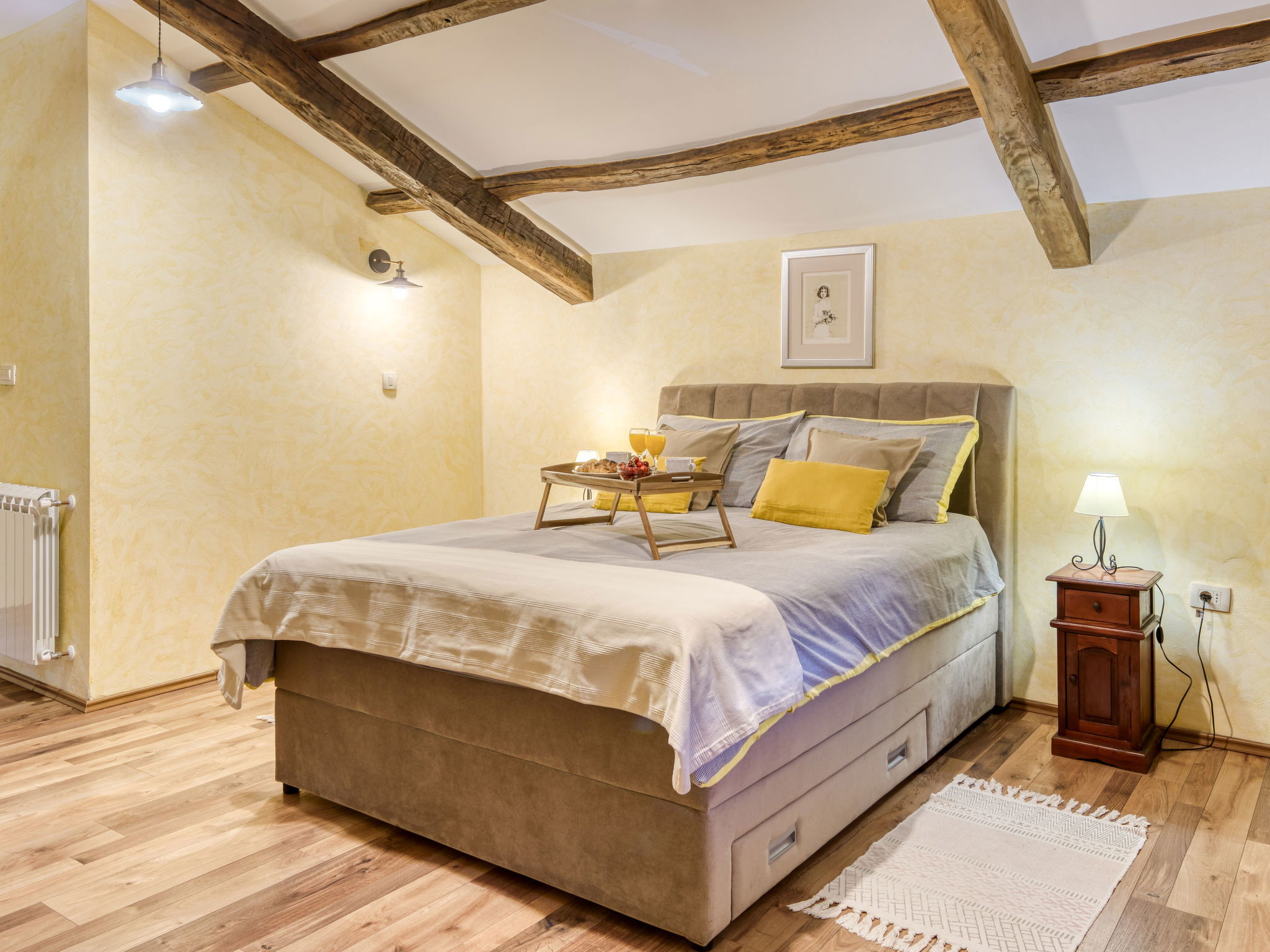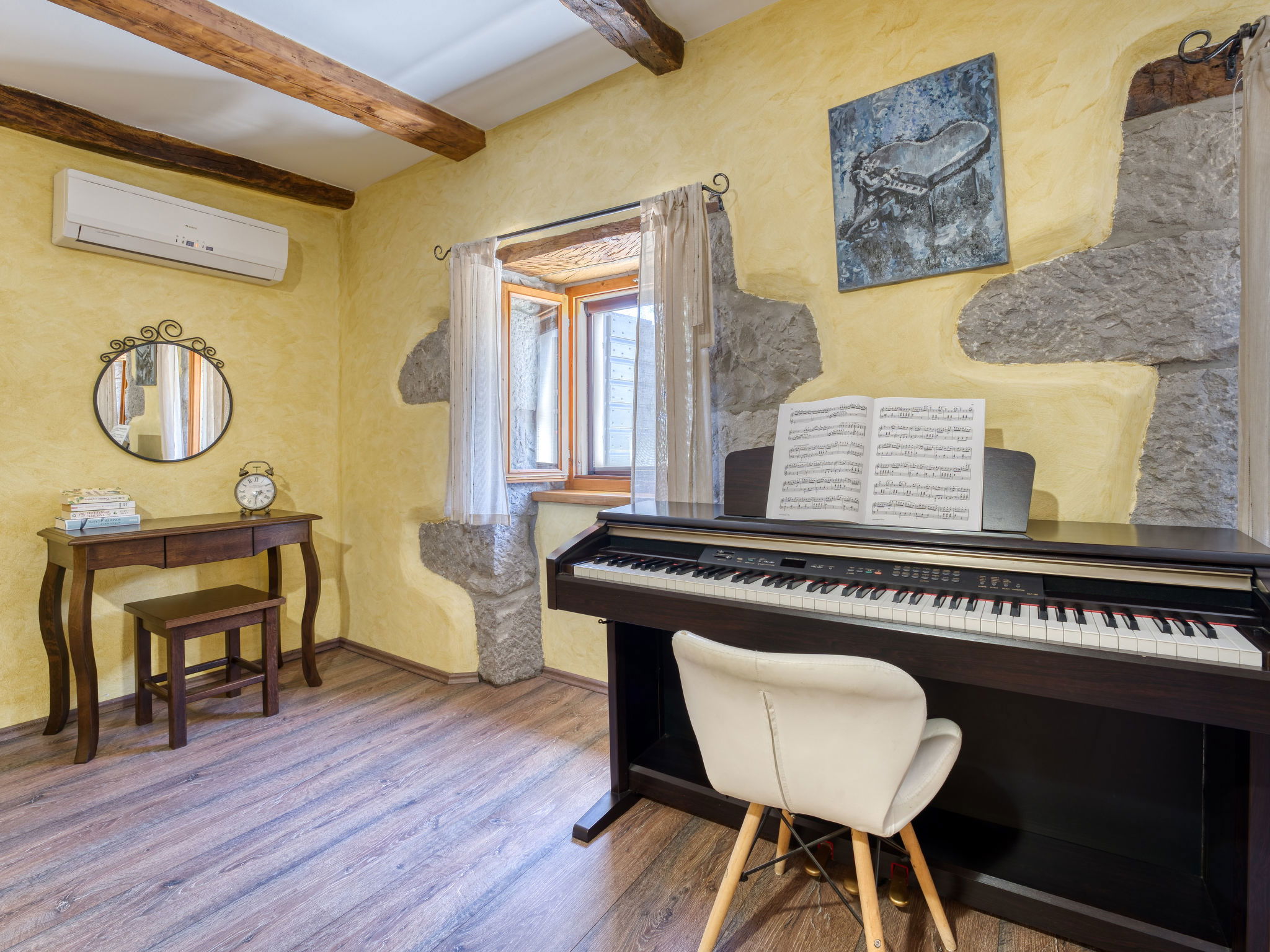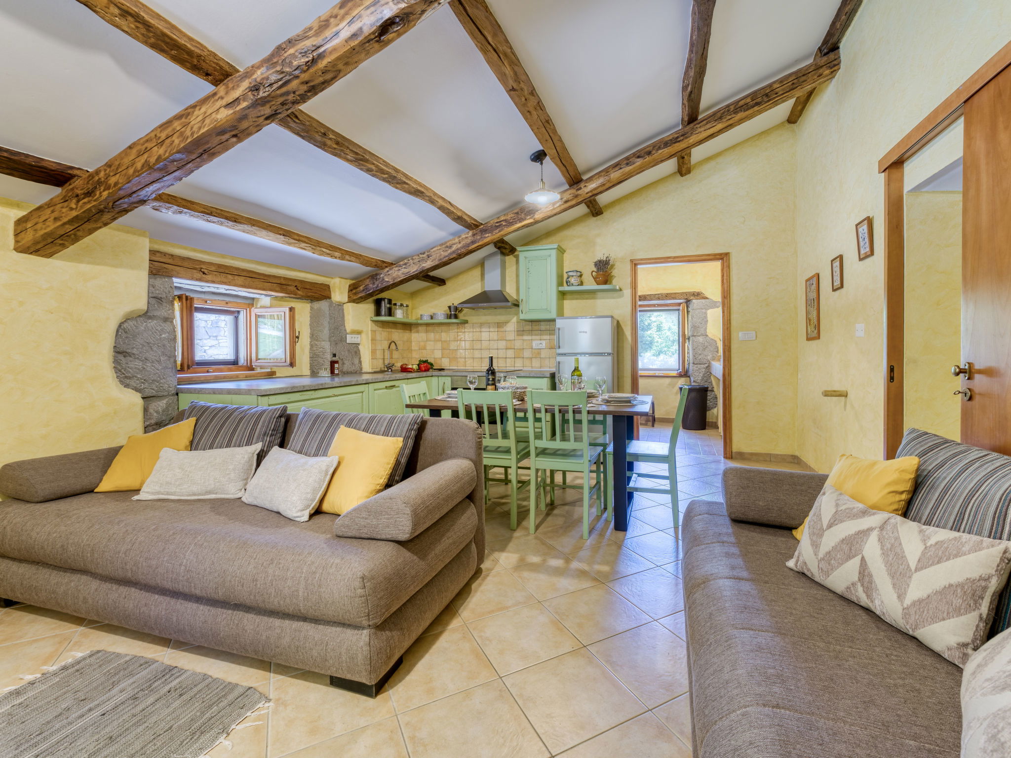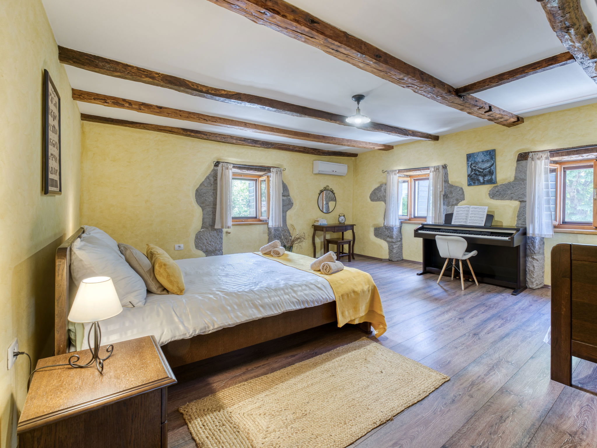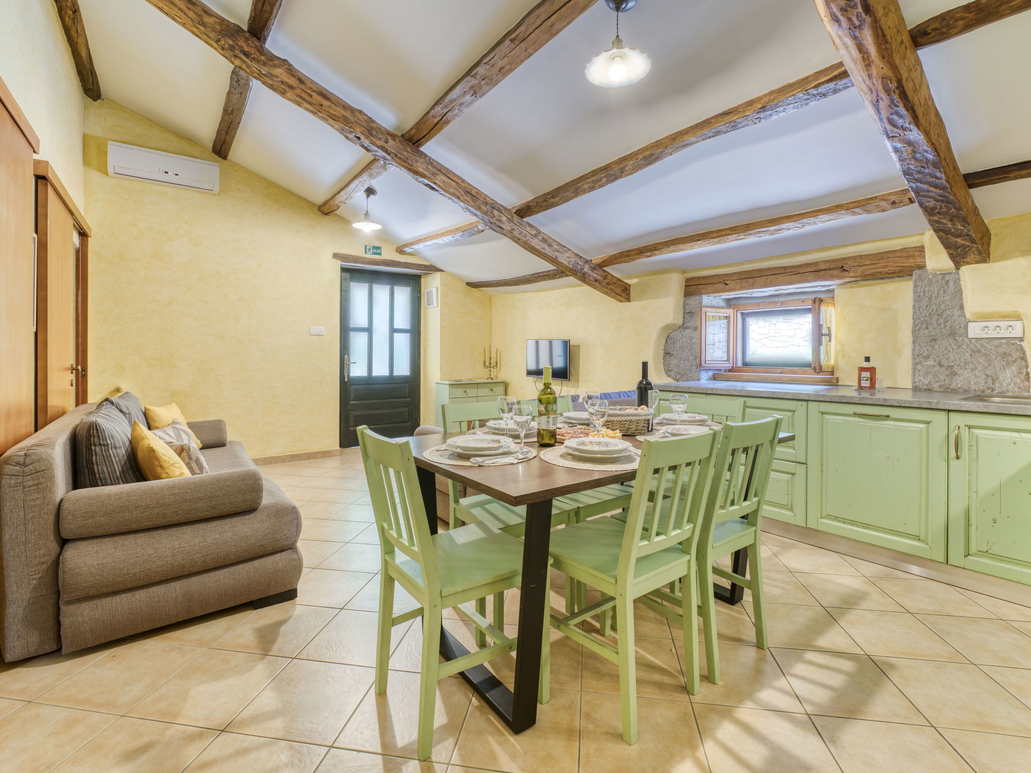 Semi-detached house "Kapitani", 2 storeys, surrounded by trees. In the hamlet Brnobići 2.5 km from the centre of Hum, 5 km from the centre of Roč, 11 km from the centre of Buzet, in a quiet, sunny, elevated position, 40 km from the sea, in a cul-de-sac, in the countryside. Private: property 900 m2, swimming pool (20 m2, depth 130 cm, seasonal availability: 01.Jun. - 30.Sep.). Barbecue. In the house: internet access, washing machine. Parking at the house on the premises. Shop 5 km, restaurant 2.5 km, bus stop 5.1 km, pebble beach 40 km. Ground floor is closed and not occupied.