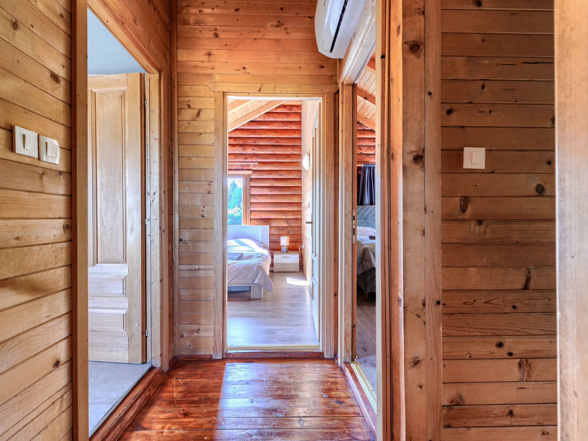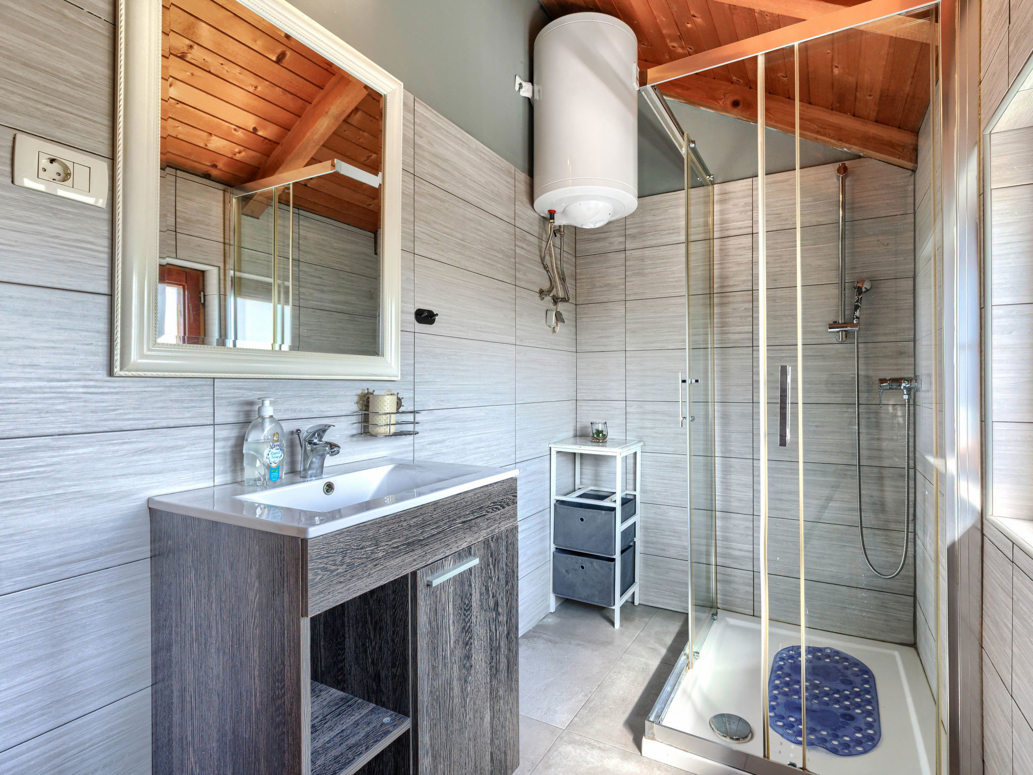 5-room house 120 m2 on 2 levels. Living/dining room with satellite TV (flat screen), wood-burning stove and air conditioning. Exit to the terrace. 1 room with 1 french bed (160 cm). Open kitchen (4 hot plates, oven, dishwasher, microwave, freezer, electric coffee machine). Shower/WC. Wood heating. Upper floor: (open staircase) entrance hall with air conditioning. 3 rooms, each room with 1 french bed (180 cm). Shower/WC. Forced-air heating. Terrace 18 m2, roofed. Terrace furniture, deck chairs, box-room. Facilities: iron, logs (free). Internet (WiFi, free). Please note: non-smoking house. Maximum 1 pet/ dog allowed. Steep stairs towards the upper floor.