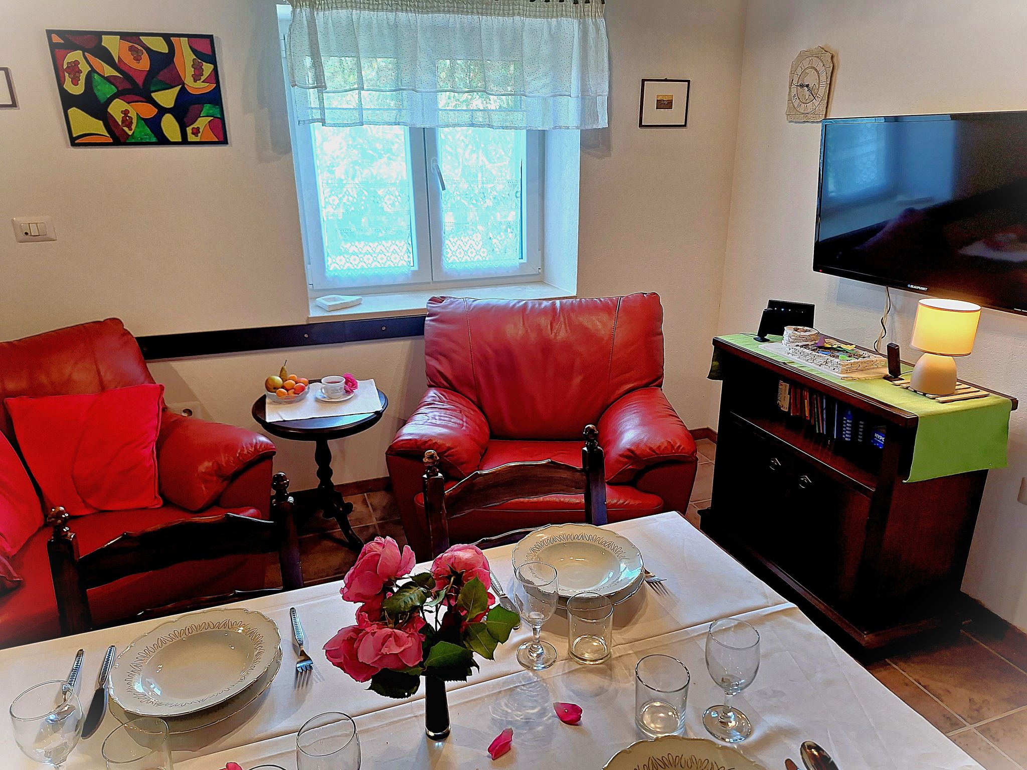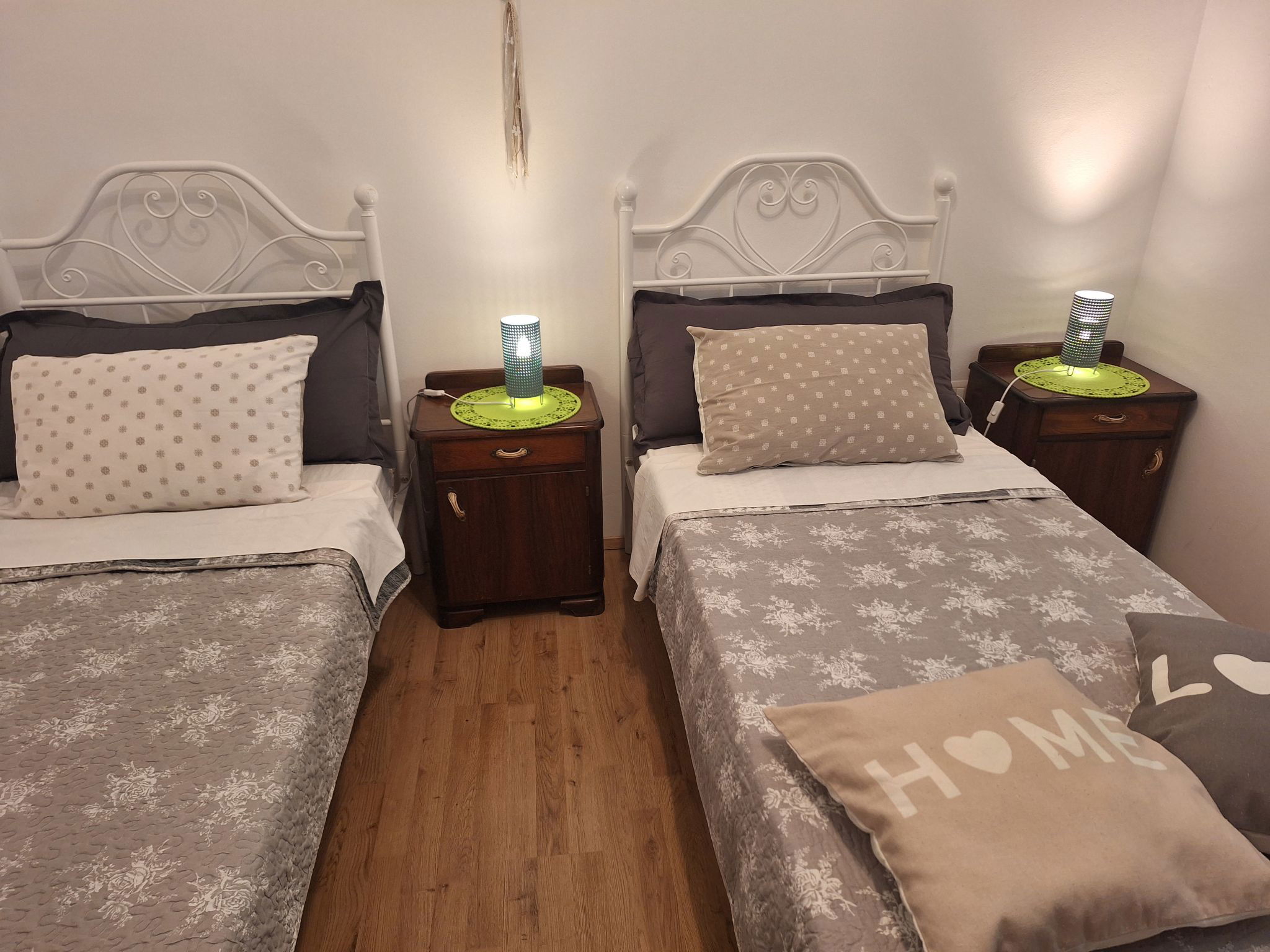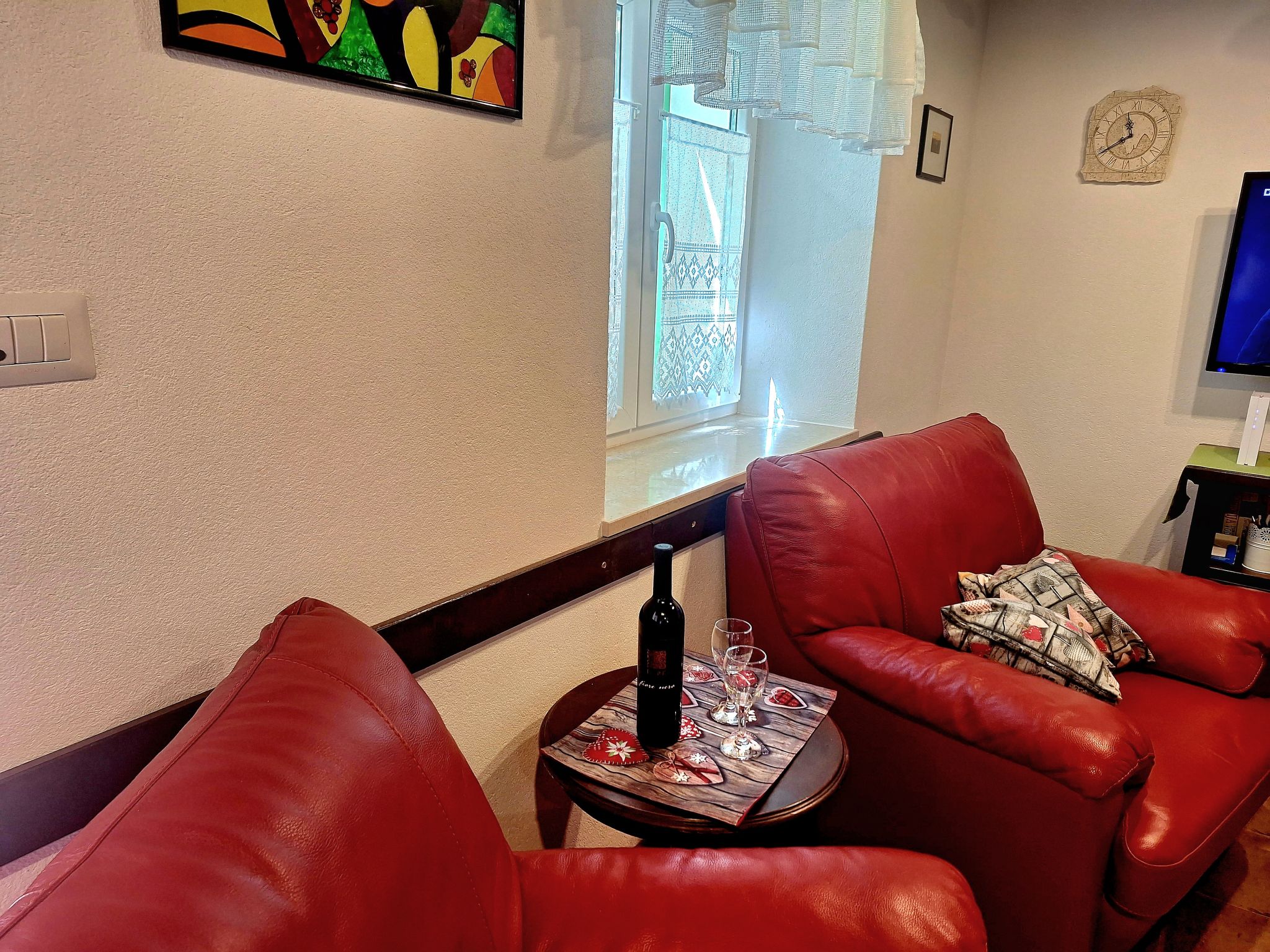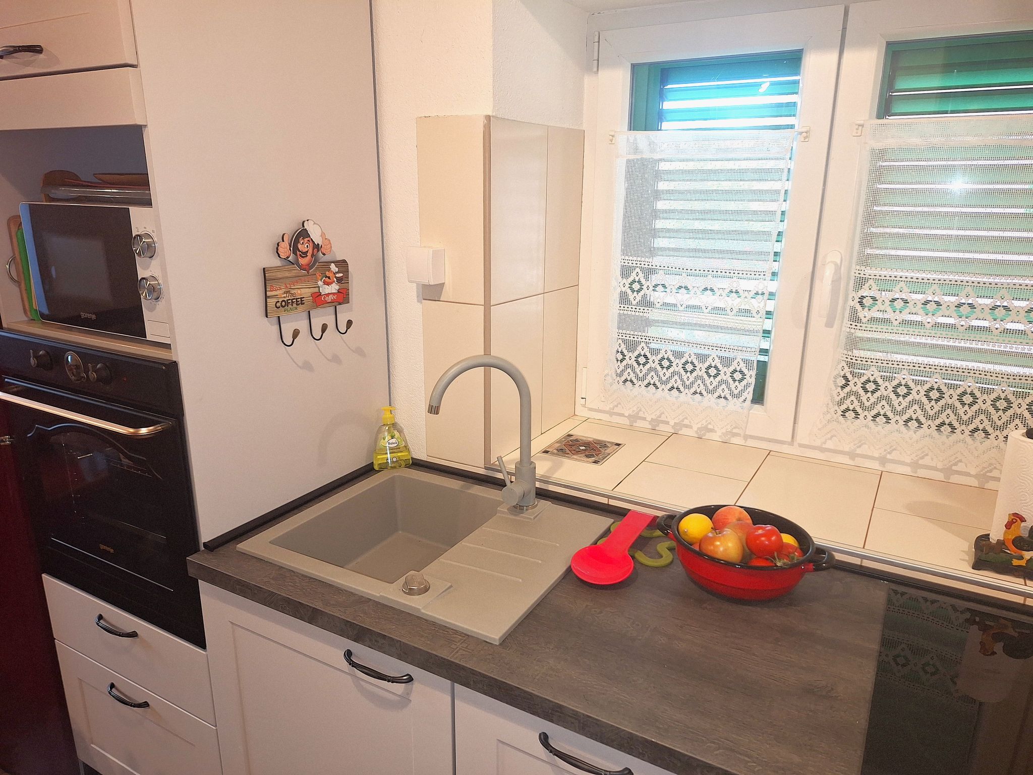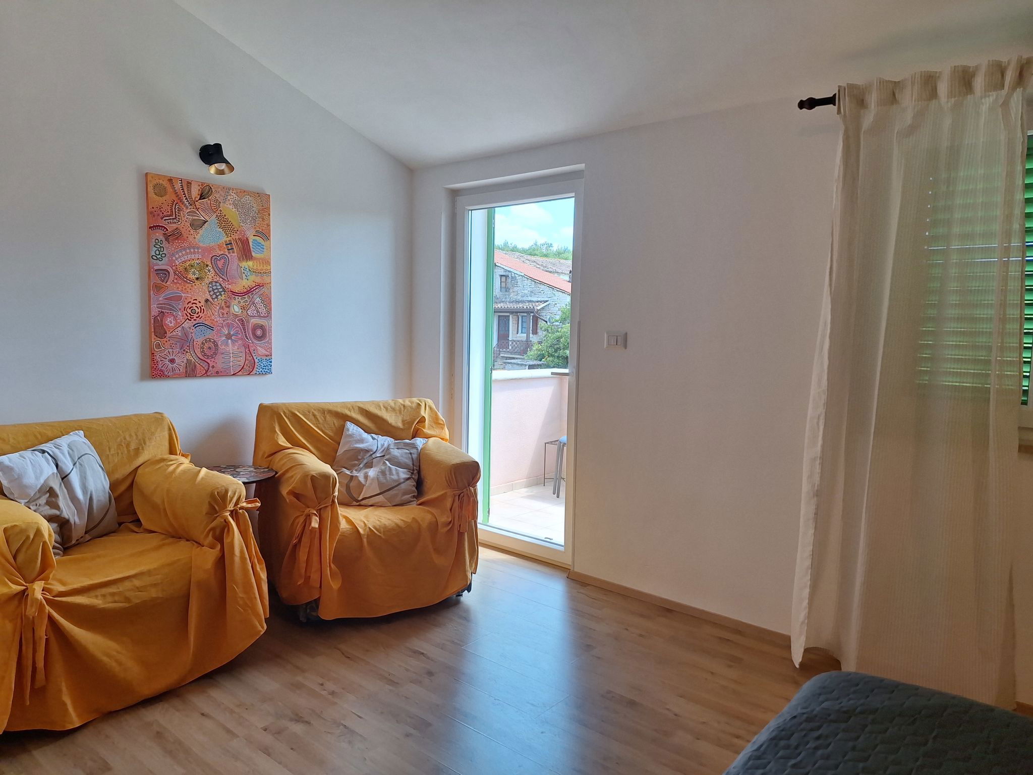 4-room house 120 m2 on 2 levels. Living/dining room with satellite TV. Living room with 1 double sofabed (140 cm, length 200 cm). Open kitchen (oven, dishwasher, 4 ceramic glass hob hotplates, microwave, electric coffee machine). Shower/WC. Upper floor: entrance hall with air conditioning. 1 room with 1 french bed (180 cm, length 200 cm). Exit to the balcony. 1 room with 2 beds (90 cm, length 200 cm). Shower/WC. Balcony 5 m2. Deck chairs. View of the garden and the countryside. Facilities: safe, baby cot (extra), hair dryer. Internet (WiFi, free). 1 small pet/ dog allowed. UP/I-335-03/18-01/94