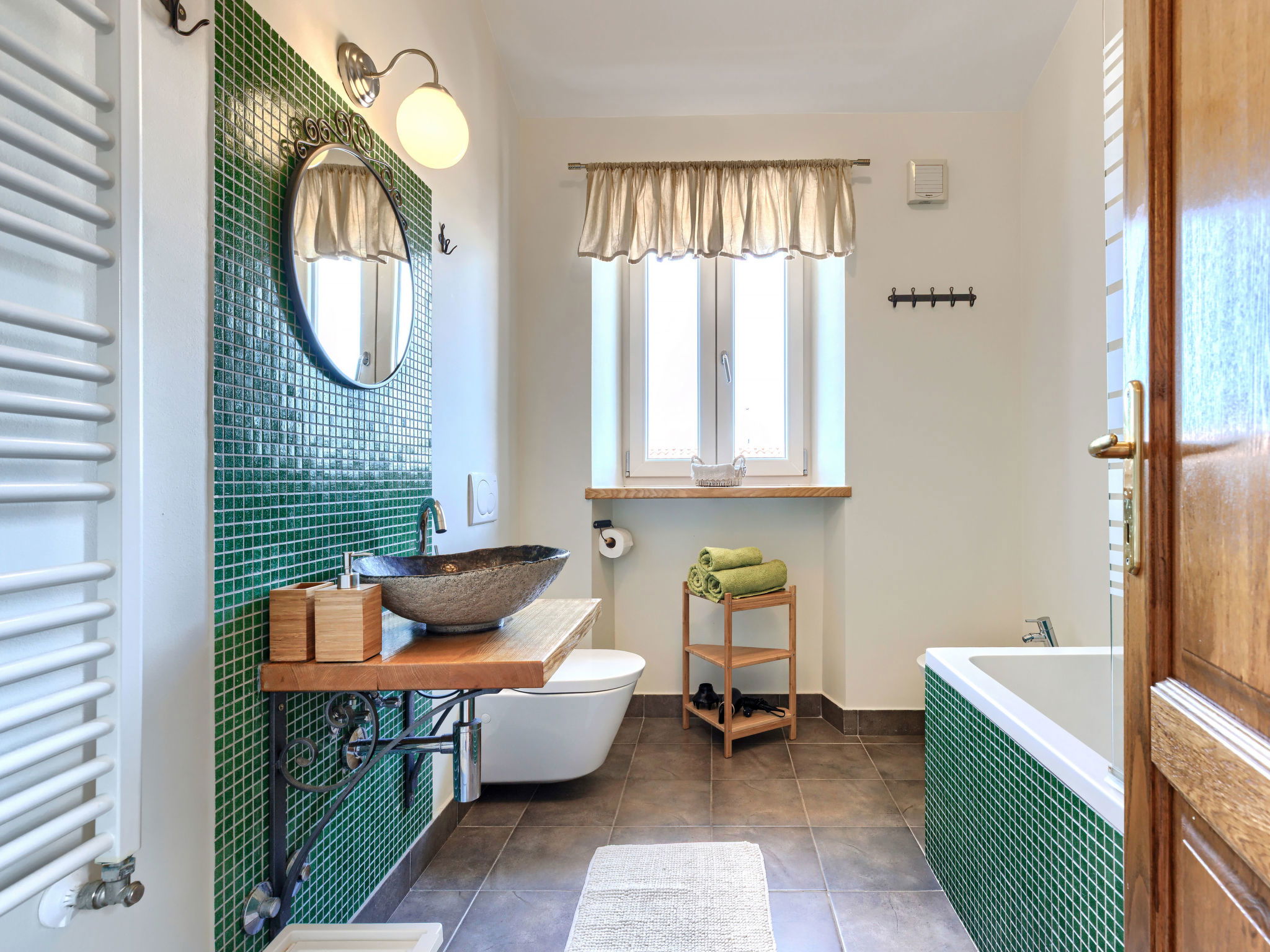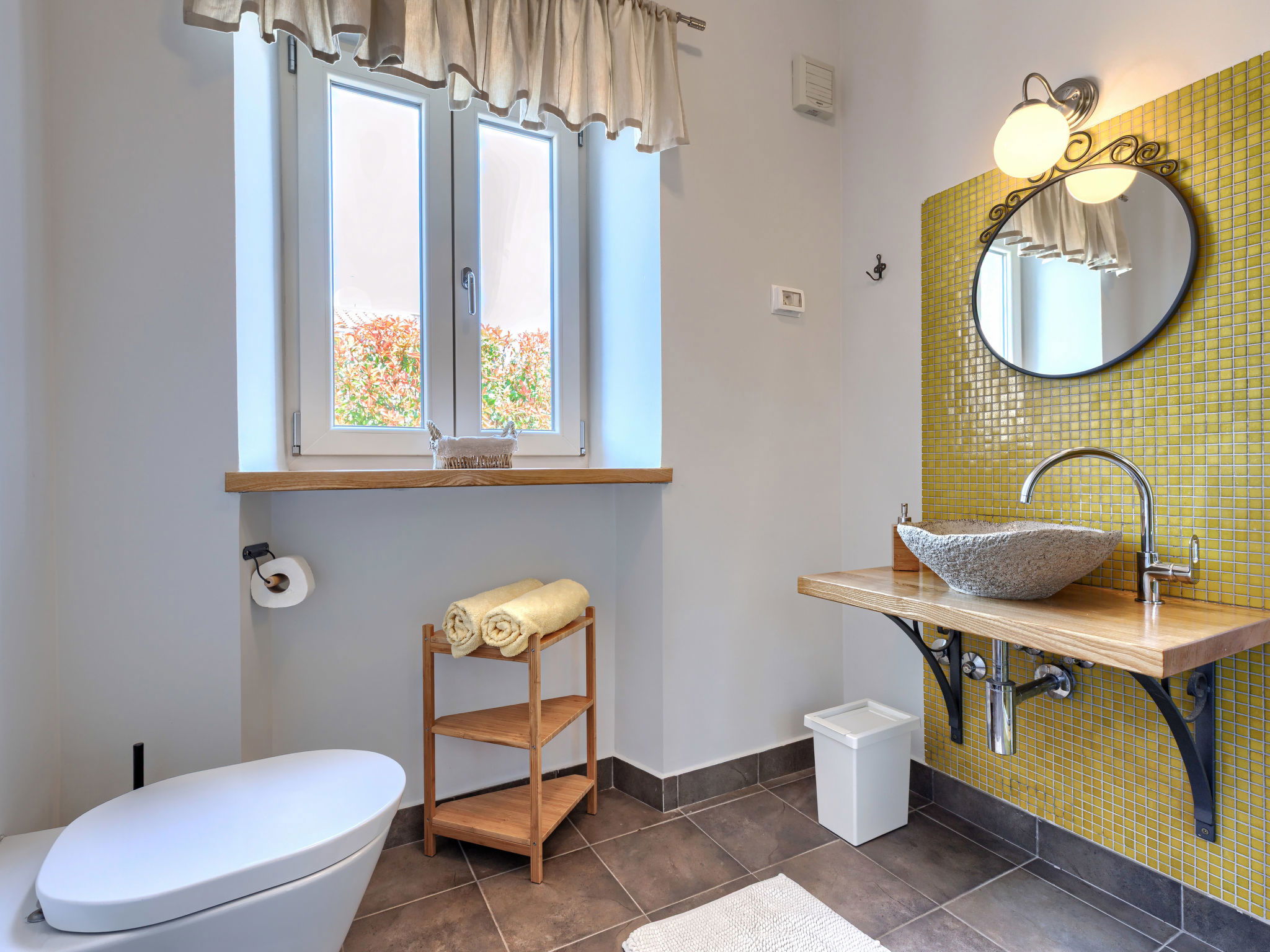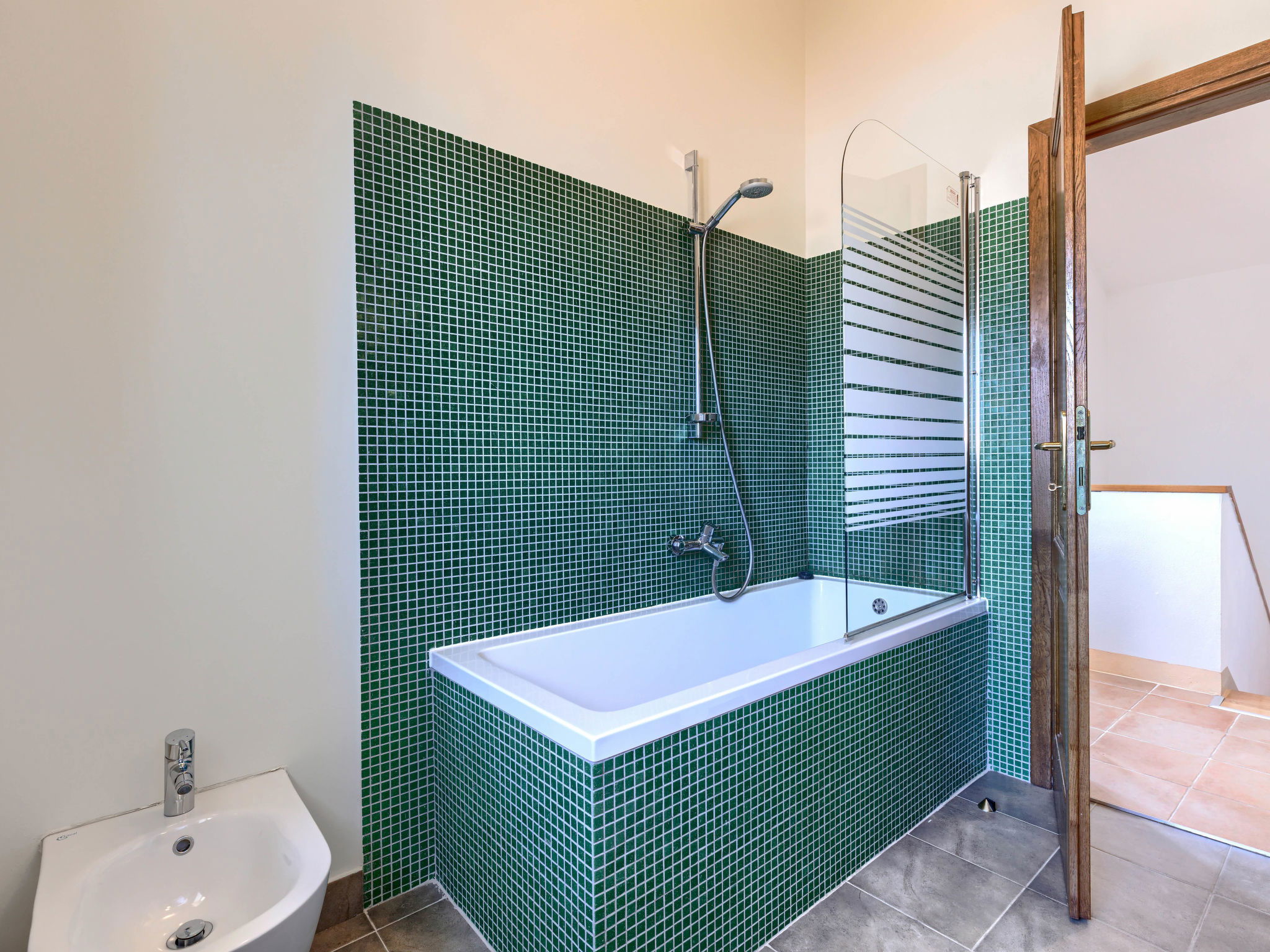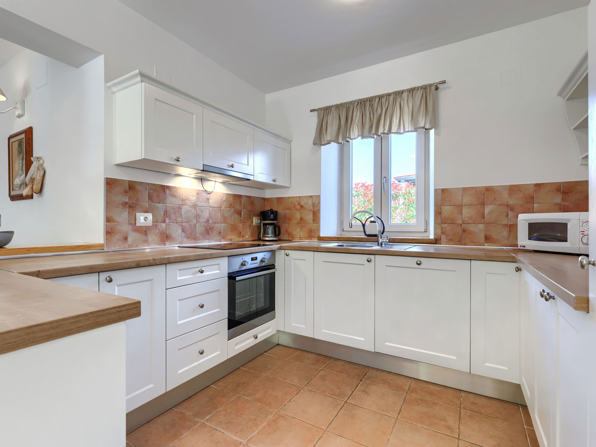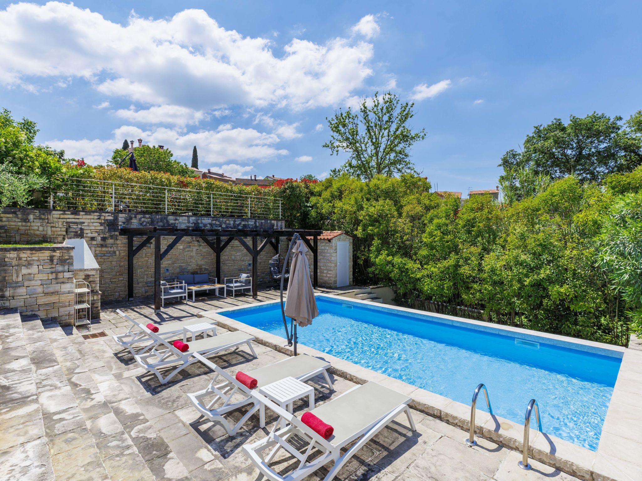 Momjan 5 km from Buje: Single-family house "Villa Samanta", 2 storeys. In a sunny position, 17 km from the sea. Private: property 500 m2 with lawn, swimming pool (8 x 4 m, depth 130 cm, seasonal availability: 01.May. - 30.Sep.) with salt-electrolysis pool-cleaning system. Outdoor shower, pergola (30 m2), garden furniture, barbecue. In the house: internet access, washing machine. Parking (for 2 cars) at the house on the premises. Shop 200 m, restaurant 150 m, bus stop 13.1 km, pebble beach 20 km, concrete beach 20 km. Walking paths from the house 200 m, cycle lane 250 m. Nearby attractions: aquapark 16 km. The owner does not accept any youth groups.