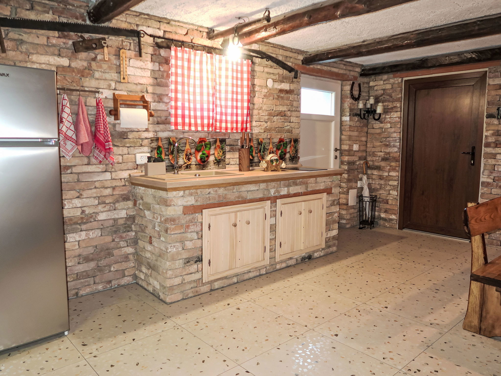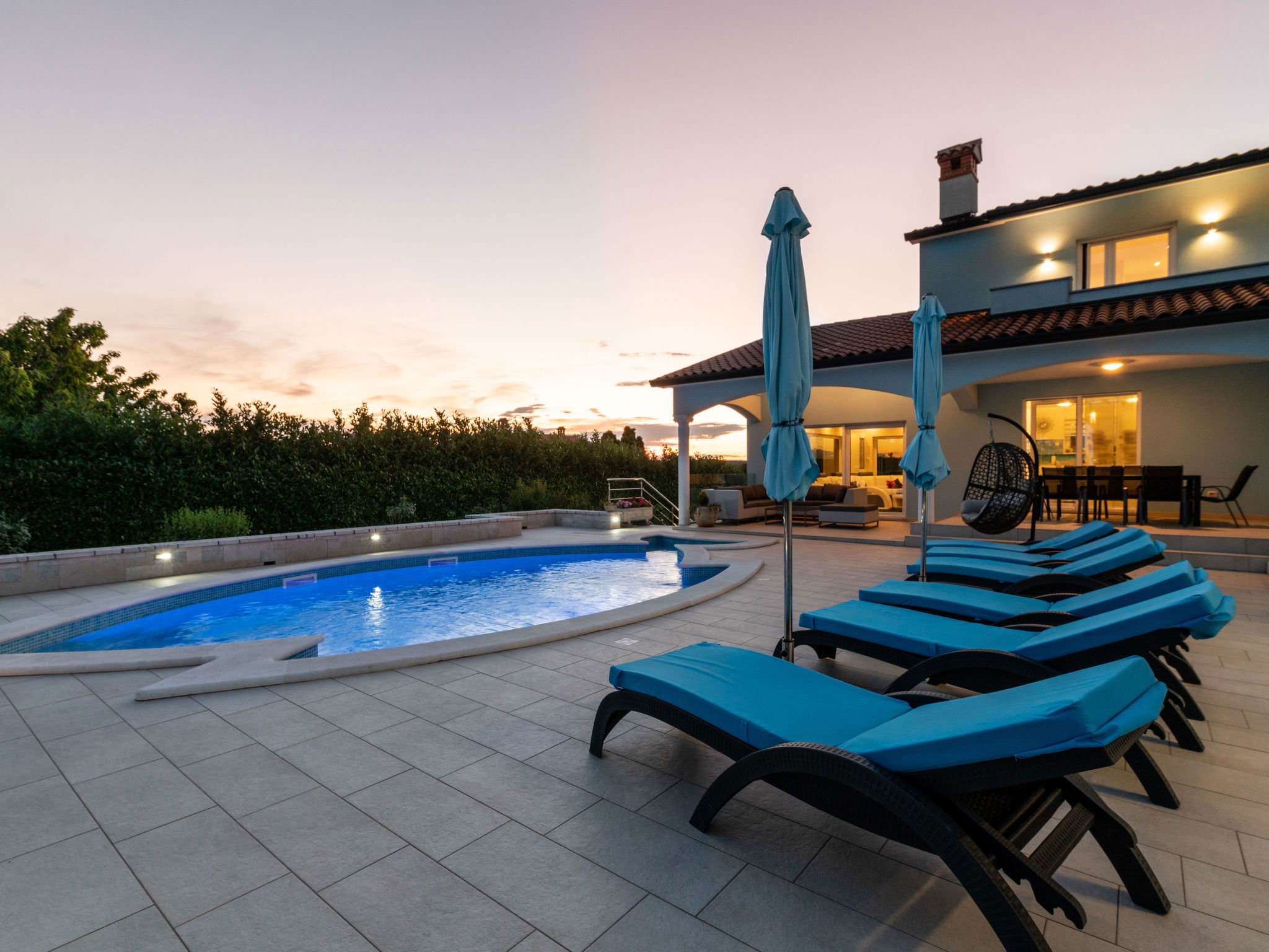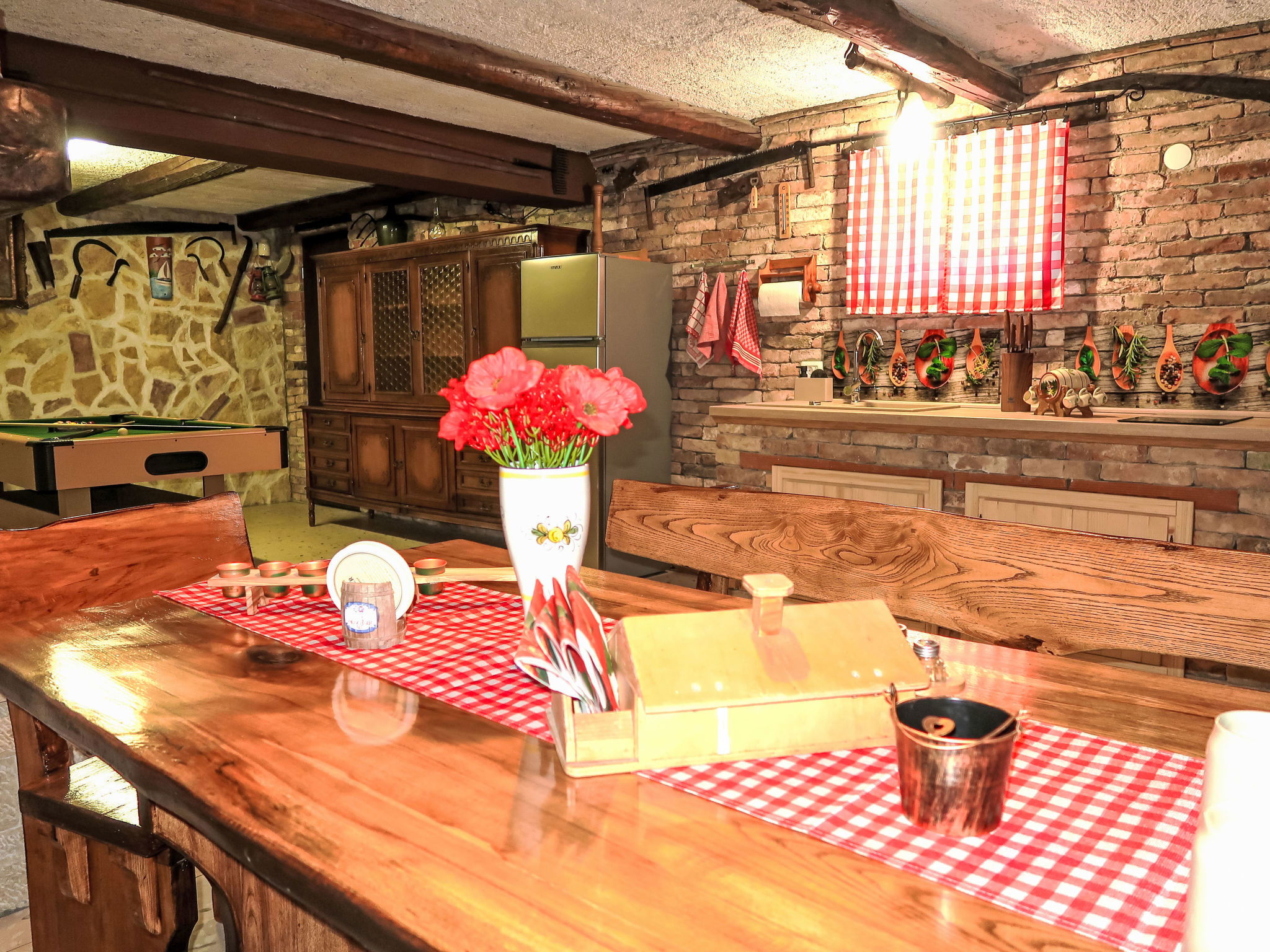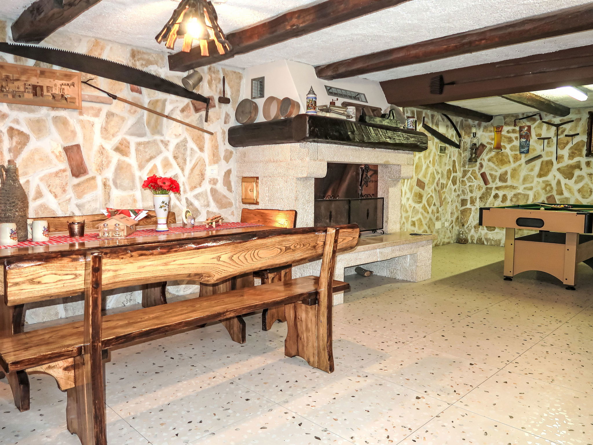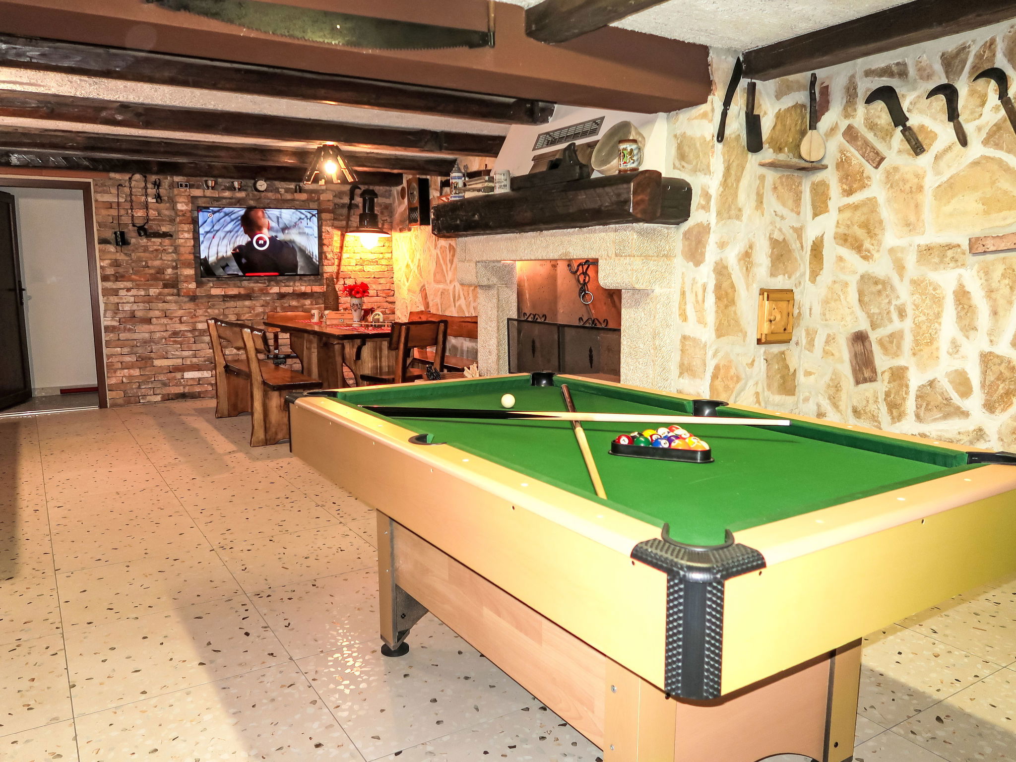 Single-family house "Villa Gabriel", 2 storeys. In the hamlet Kapelica 5 km from the centre of Labin, 10 km from the centre of Rabac, 40 km from the centre of Pula, 9 km from the sea. Private: property 900 m2 (fenced) with lawn and wildlife garden, swimming pool (28 m2, depth 130 cm, seasonal availability: 06.May. - 07.Oct.). Unconventional pool shape. Outdoor shower, table tennis, patio (10 m2) (slide, swing). In the house: internet access, table football, washing machine. Motor access to the house (50 m via unmade road). Parking (for 3 cars) on the premises. Shop 5 km, supermarket 5 km, bus stop 5.5 km, pebble beach 10 km, rocky beach 10 km. Marina 10 km.