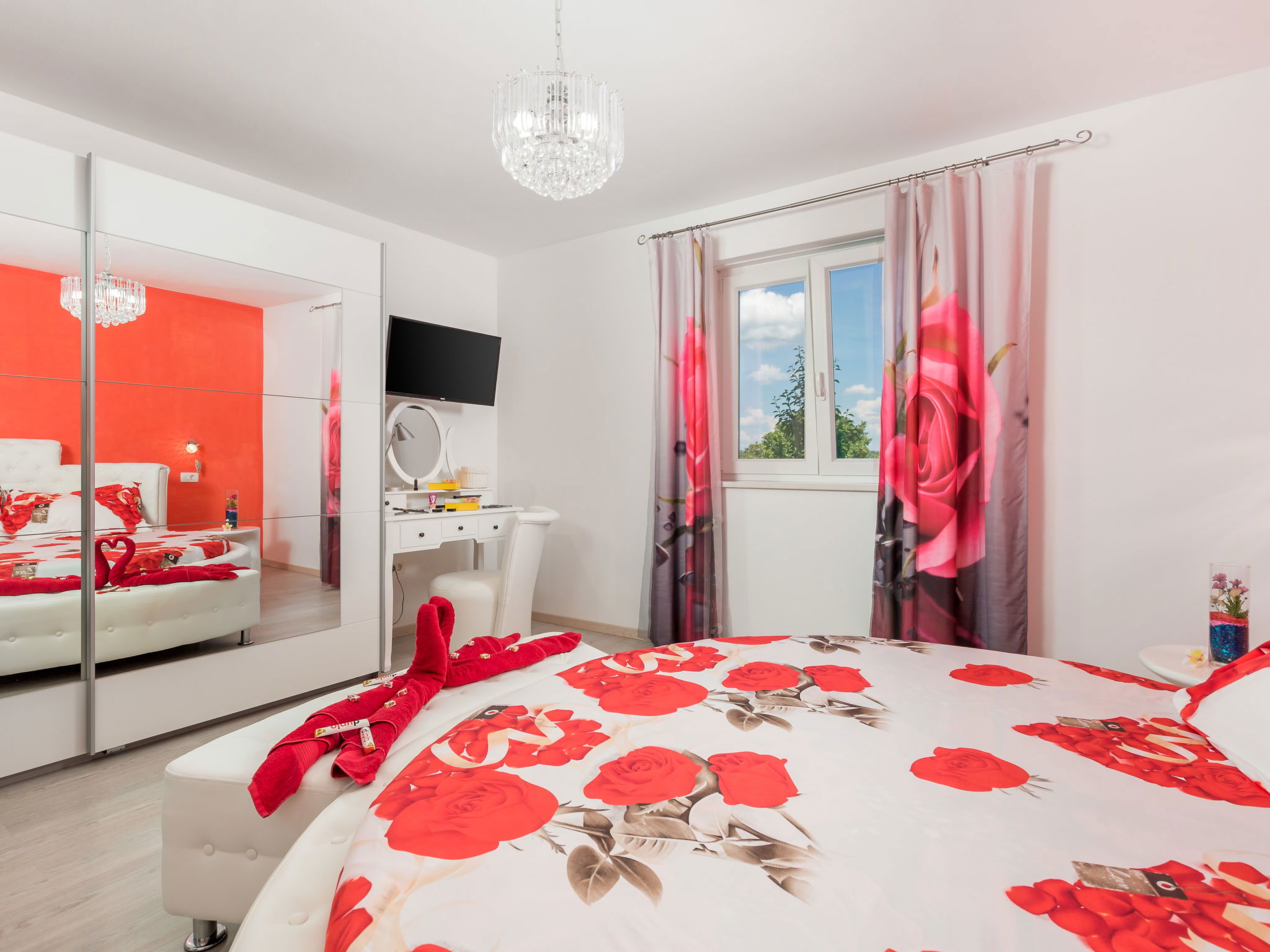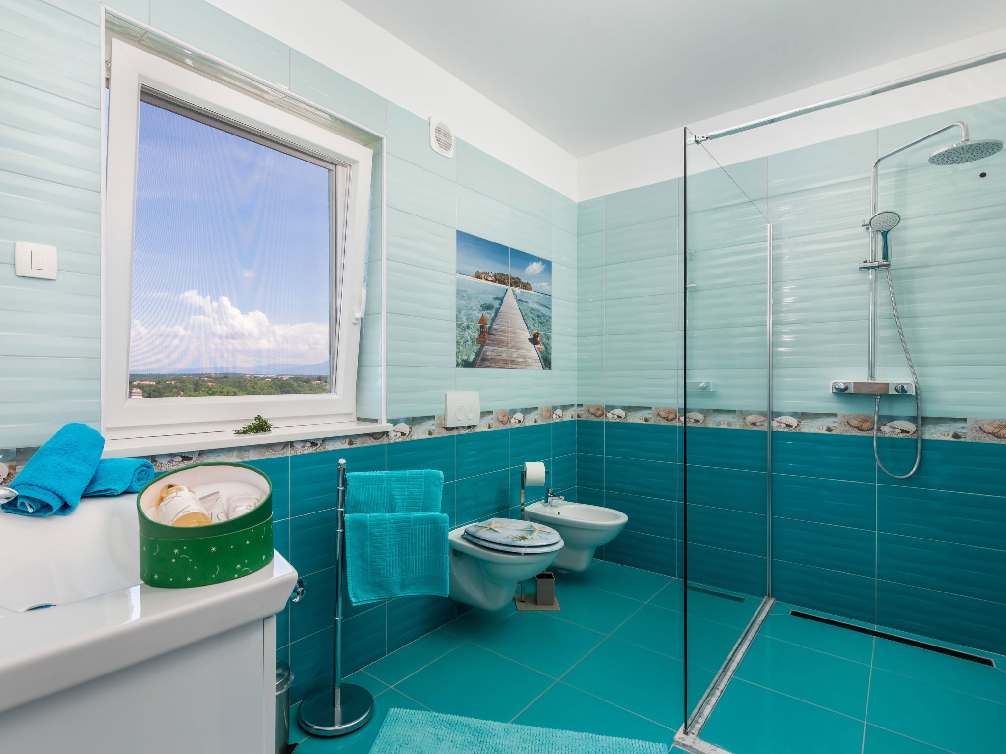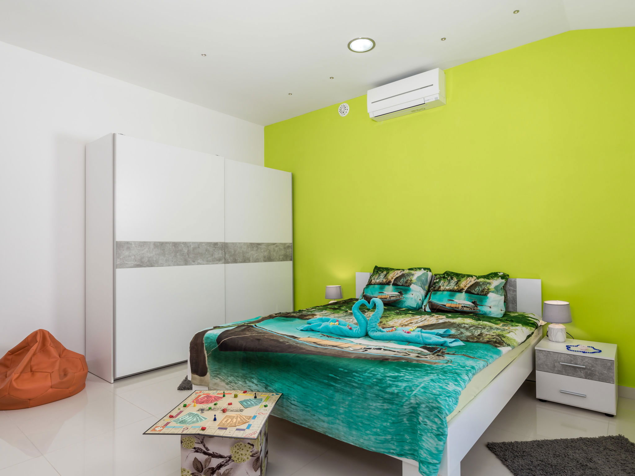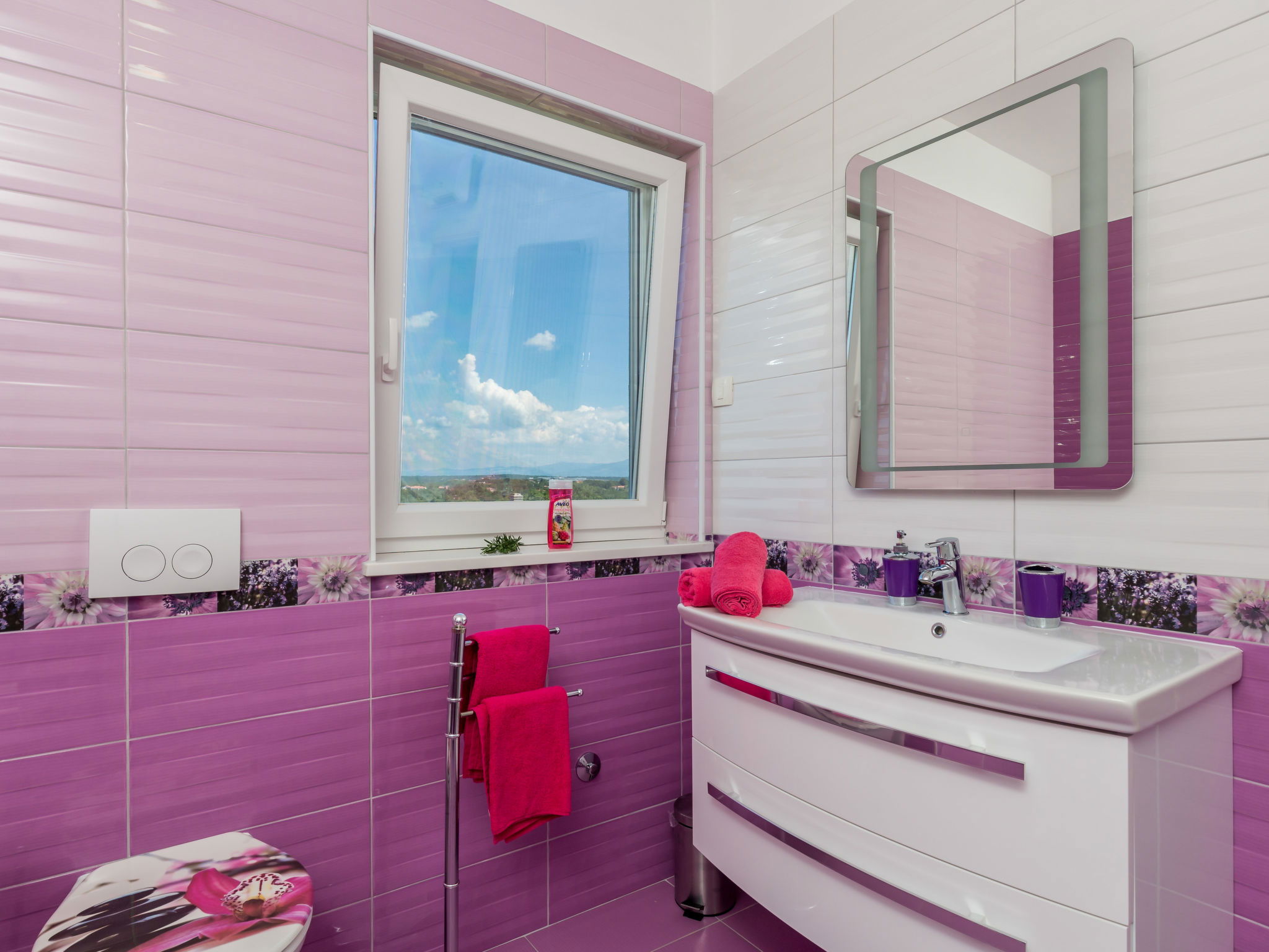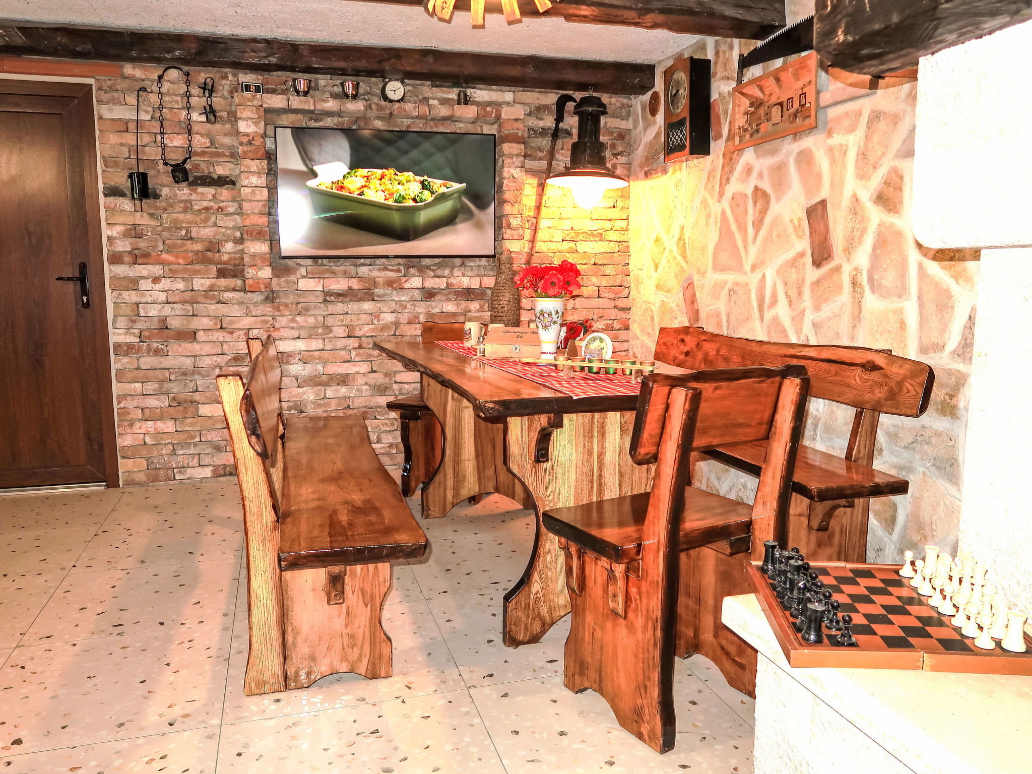 Single-family house "Villa Gabriel", 2 storeys. In the hamlet Kapelica 5 km from the centre of Labin, 10 km from the centre of Rabac, 40 km from the centre of Pula, 9 km from the sea. Private: property 900 m2 (fenced) with lawn and wildlife garden, swimming pool (28 m2, depth 130 cm, seasonal availability: 06.May. - 07.Oct.). Unconventional pool shape. Outdoor shower, table tennis, patio (10 m2) (slide, swing). In the house: internet access, table football, washing machine. Motor access to the house (50 m via unmade road). Parking (for 3 cars) on the premises. Shop 5 km, supermarket 5 km, bus stop 5.5 km, pebble beach 10 km, rocky beach 10 km. Marina 10 km.