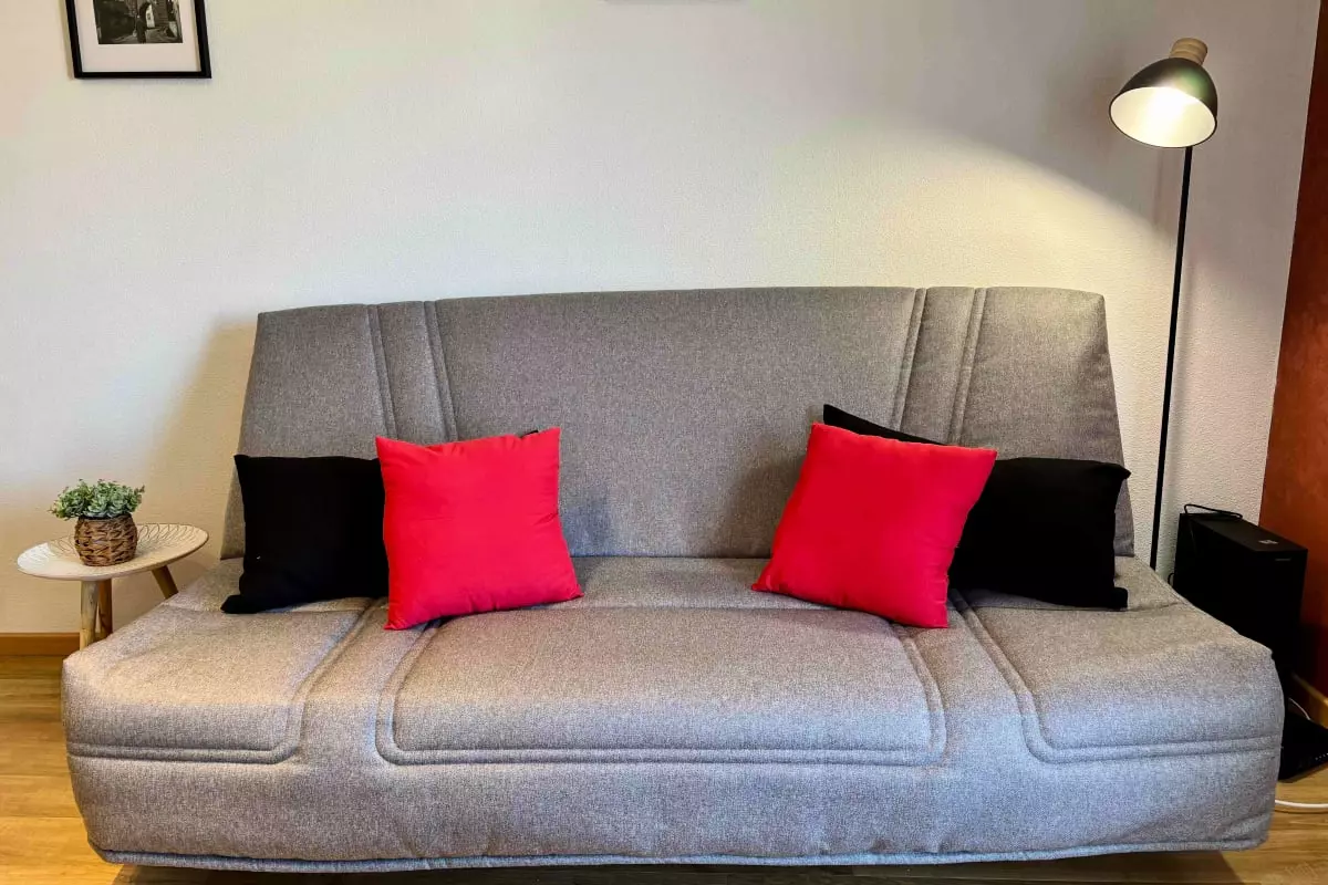 - a living room with a convertible sofa;