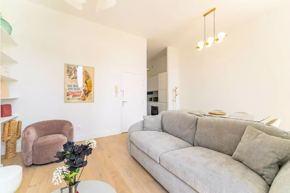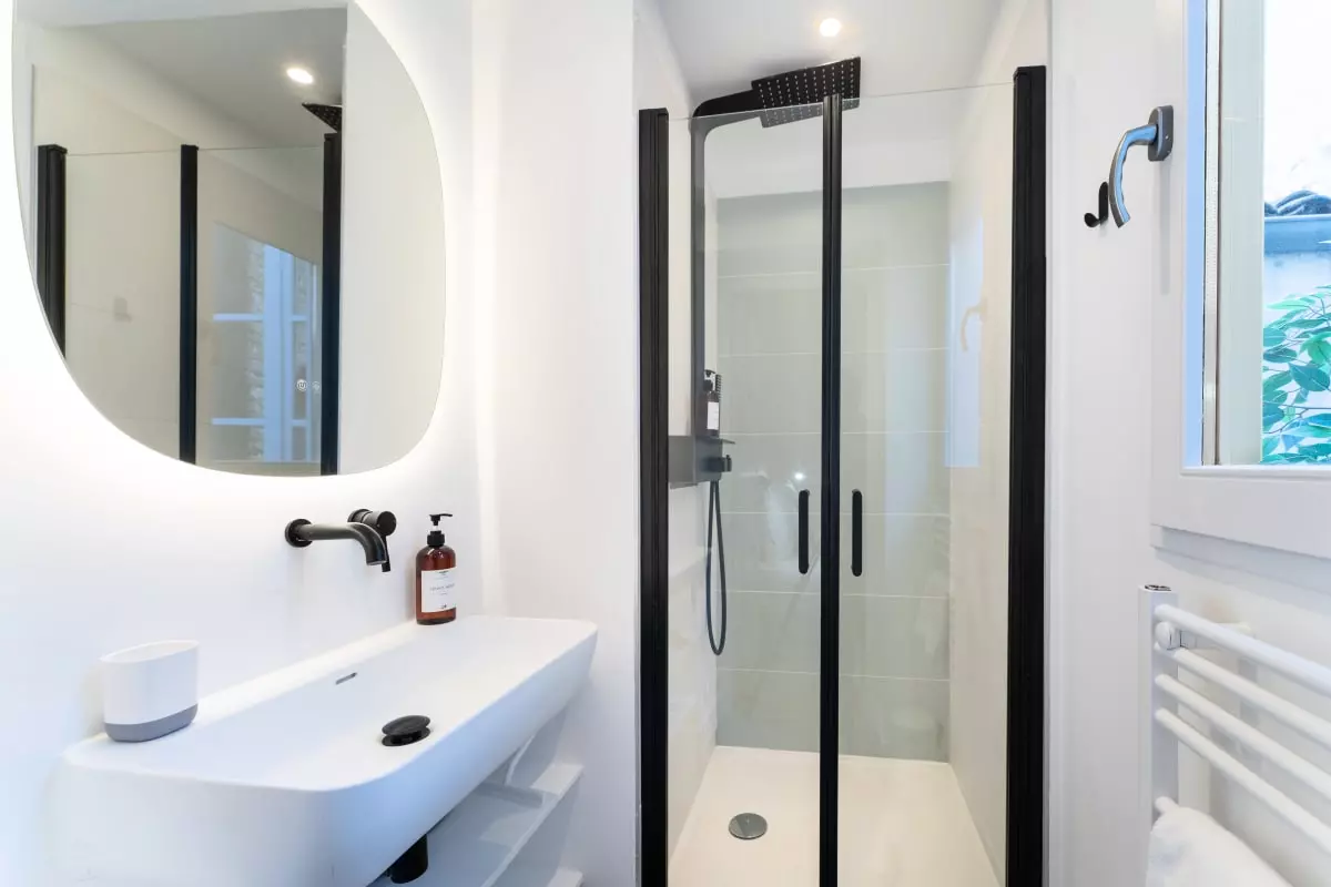 The fully equipped open kitchen allows you to prepare meals in a welcoming setting. The elegant and peaceful bedroom guarantees restful nights, while the modern bathroom features a large shower and everything you need for your comfort.