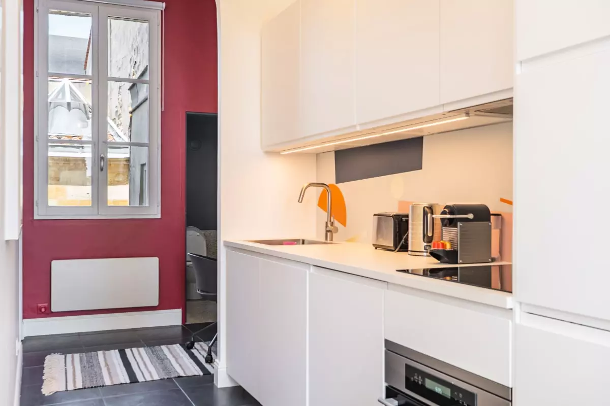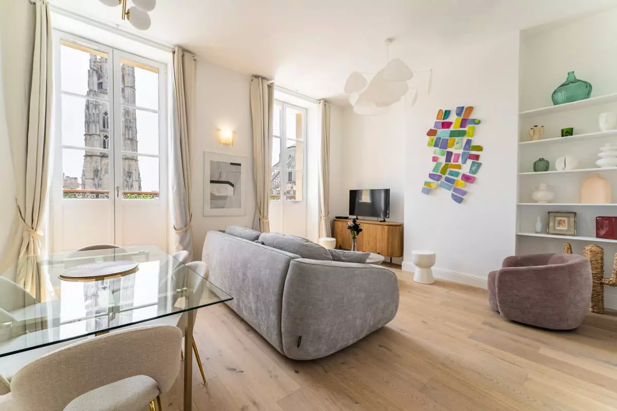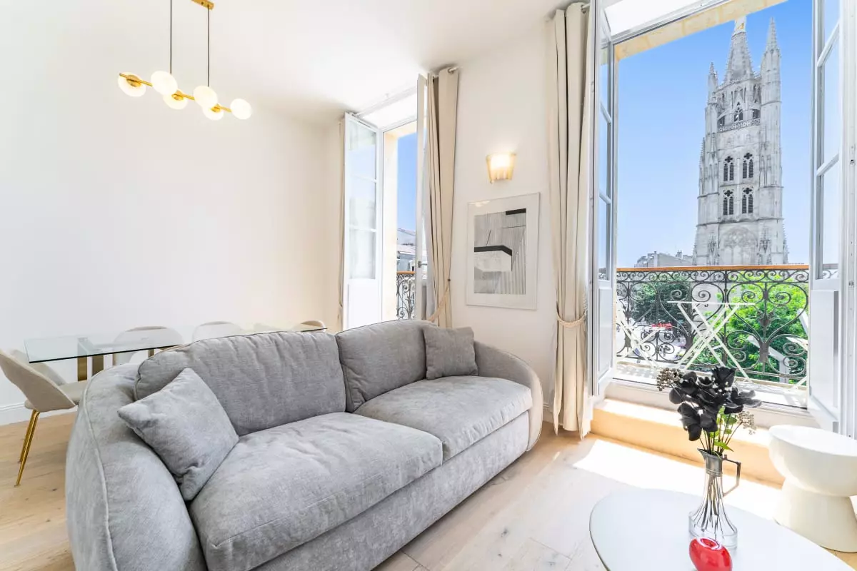 Located on the prestigious Place Pey Berland, in the heart of Bordeaux, this apartment immerses you in the heart of the historic district, a UNESCO World Heritage Site. Facing Saint-André Cathedral and just a stone's throw from City Hall, it offers direct access to the city's treasures: museums, shopping streets, typical restaurants, and iconic monuments like the Grosse Cloche and Rue Sainte-Catherine.