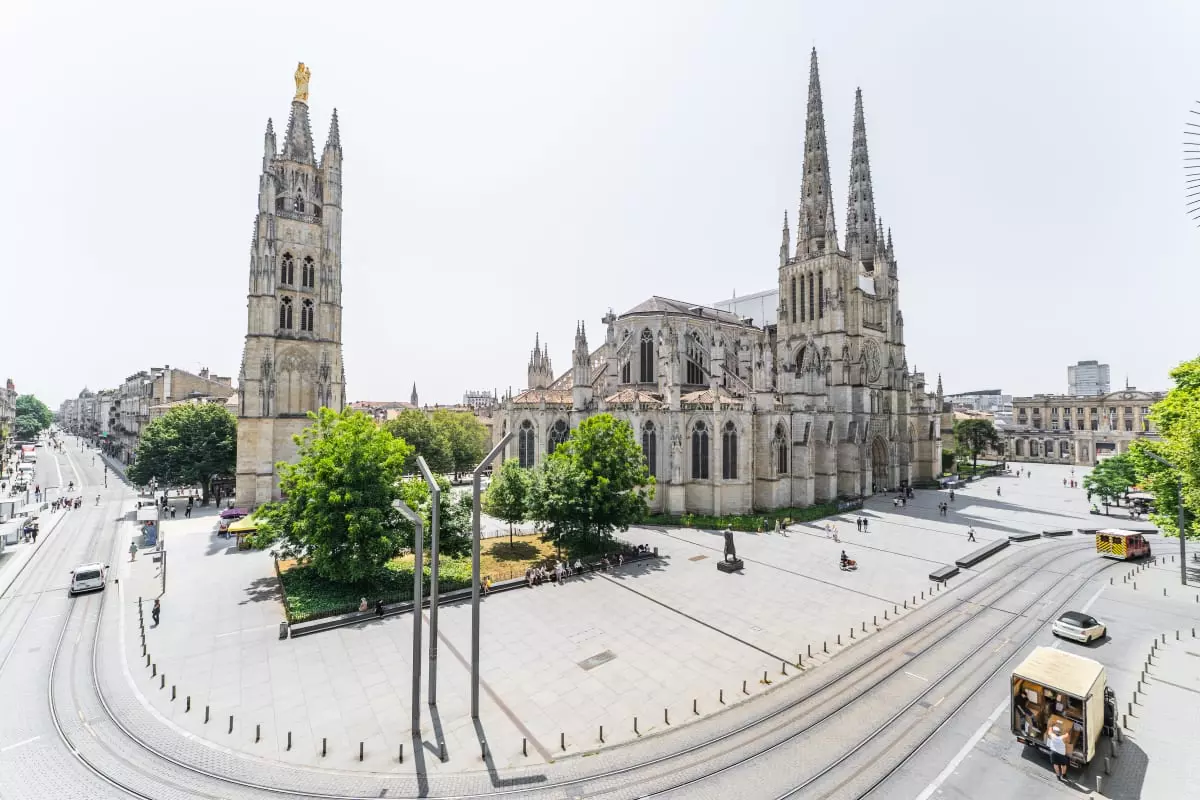 The Place Pey Berland district is located in the historic heart of Bordeaux, a UNESCO World Heritage Site. Dominated by the majestic Saint-André Cathedral and the City Hall, this iconic square combines architectural richness with a lively local scene. You'll find numerous cafés, restaurants, and typical shops nearby.