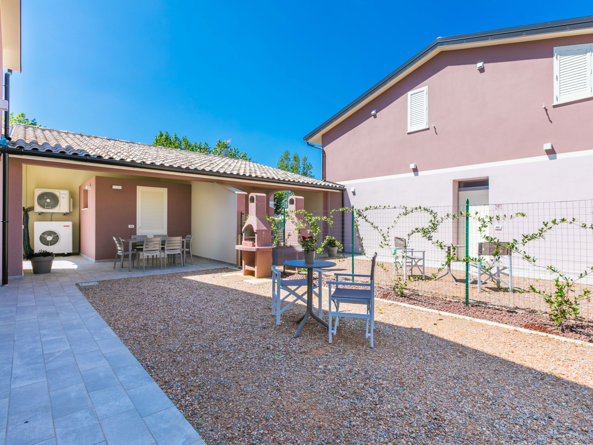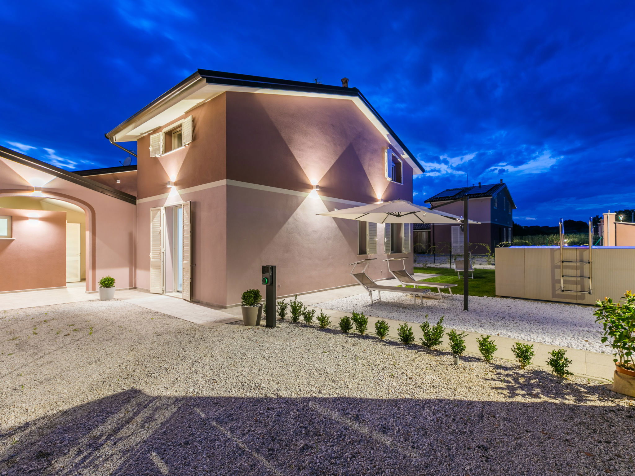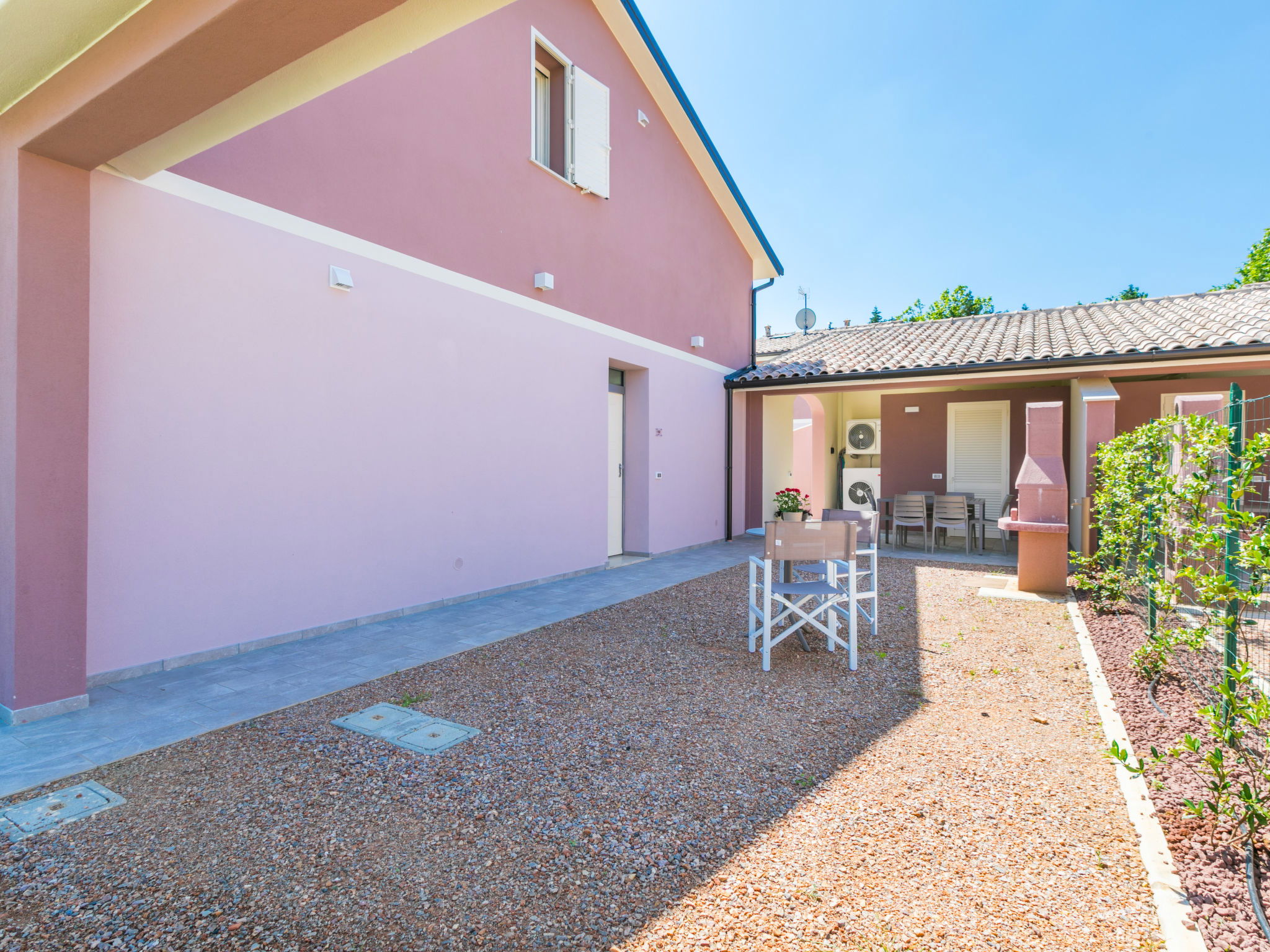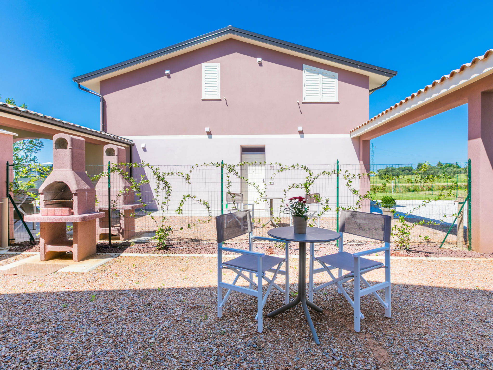 Residence "Borgo il Vallin delle Conche", built in 2025. 4 houses in the residence. 2 km from the centre of San Pietro in Palazzi, 4 km from the centre of Cecina, 4.8 km from the sea, 4.8 km from the beach. Private: property 600 m2 (fenced), garden, swimming pool (above ground) (3 x 5 m, depth 125 - 125 cm, seasonal availability: 20.May. - 15.Oct.). Pool maintenance by the owner/gardener. Linen change (suppl. charge extra). Towel change (suppl. charge extra). Parking (for 2 cars) at the house. E-charging station. Supermarket, shopping centre, restaurant, bakery, café 300 m, bus stop "SP 68 Variante Ponte" 500 m, railway station "Cecina" 3.5 km, sandy beach "Le Gorette" 4.8 km, thermal baths "Calidario" 35 km. Marina 5 km, golf course (9 hole) 11 km. Nearby attractions: Bolgheri 20 km, Pisa 60 km, Lucca 80 km, Firenze 110 km. Please note: Additional accommodations can be booked. Property ref. IT5308.310.1-4 is situated on the same property.