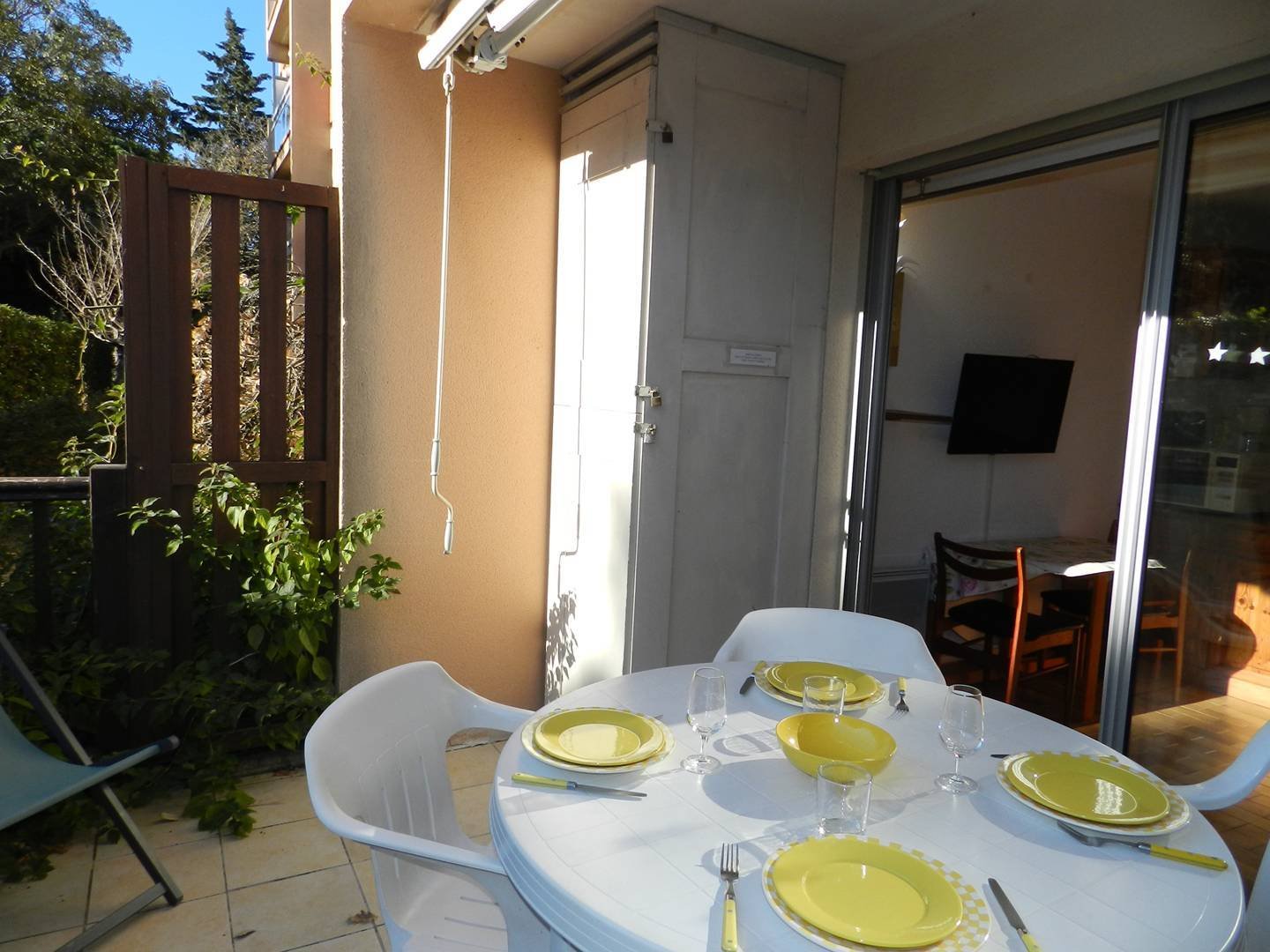 Studio cabin of 26 m ² situated in La Favière, in garden level of the building N of the residence Les Rives de la Favière. It includes lounge with a sofa bed and TV, a very well equipped kitchen area (patches with induction, oven, microwaves, refrigerator, freezer), a cabin with 2 bunk beds of 90 cm. A private parking space. Big terrace enclosed by 12 m ² exposed to the South. Not admitted animals. Residence with entry closed by firewall, playground for the children, the elevator in every building.