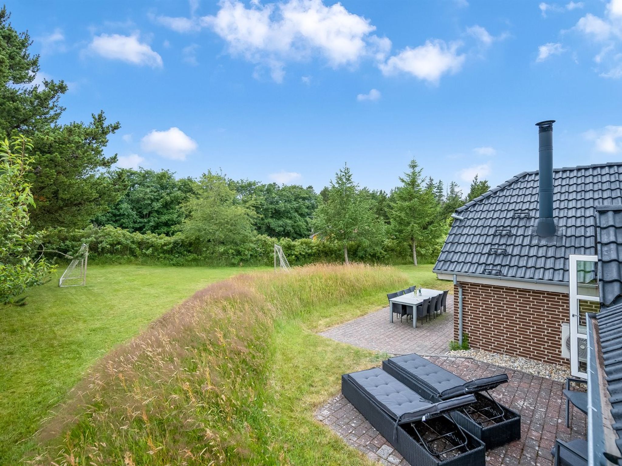 Single-family house, built in 1992. 4 km from the sea. Private: natural state property 1'600 m2. Terrace (50 m2), children's playground (swing). In the house: sauna, washing machine, tumble dryer. Parking at the house. Grocery 1 km. The owner does not accept any youth groups.