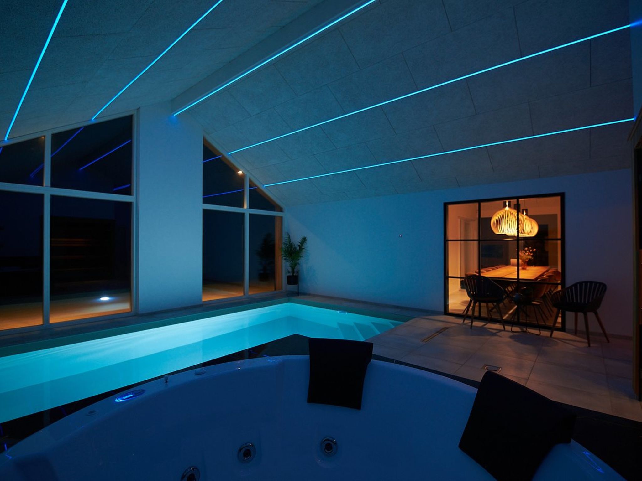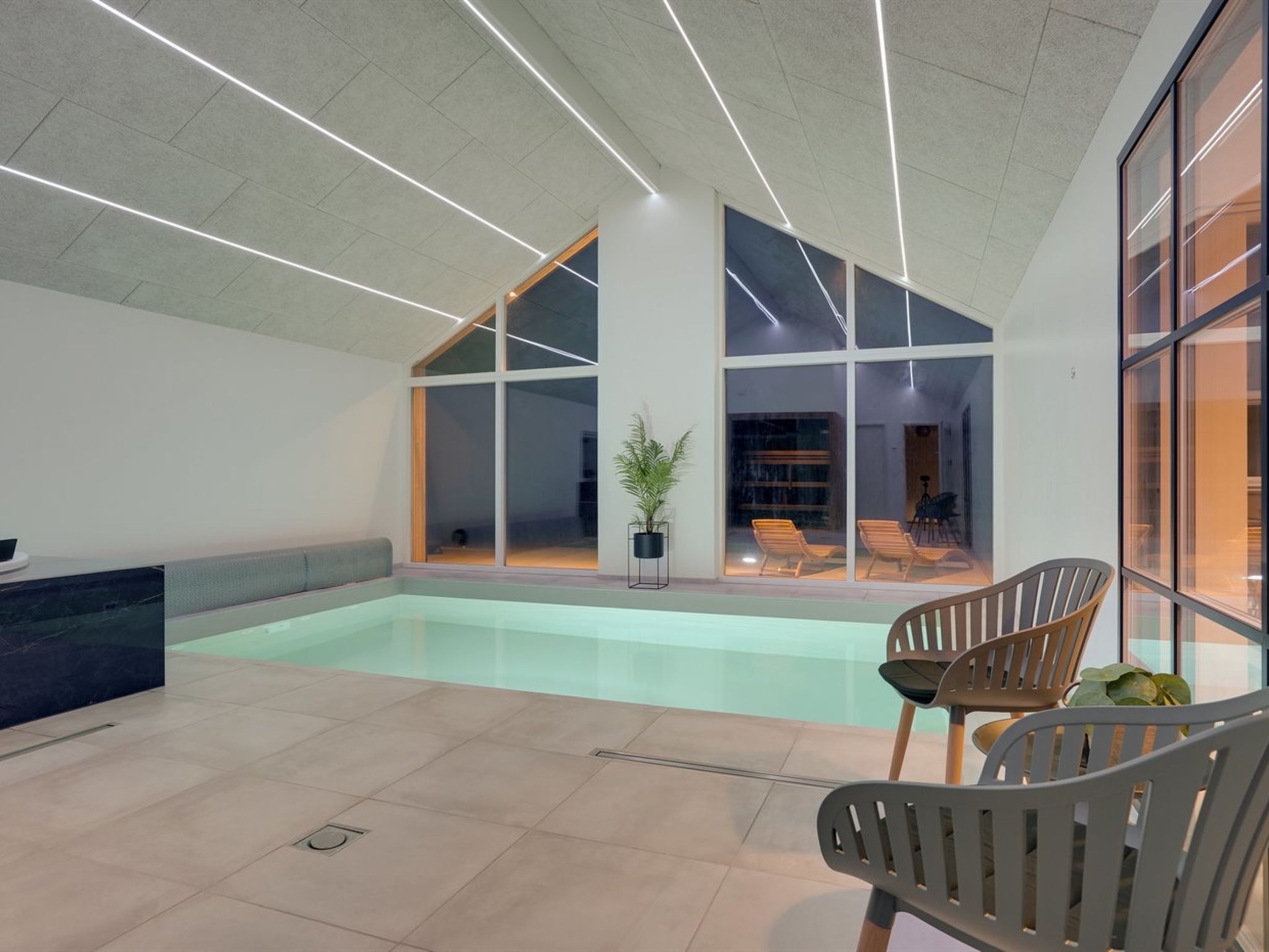Single-family house, built in 2020. 1.4 km from the sea. Private: natural state property 2'900 m2, indoor pool (3 x 5 m, 1'9.3 m2, depth 145 - 145 cm). Outdoor shower, terrace (200 m2), barbecue, fireplace, children's playground (slide, swing). In the house: sauna, table football, trampoline, washing machine, tumble dryer. Parking at the house. E-charging station. Grocery 1.4 km. The owner does not accept any youth groups.