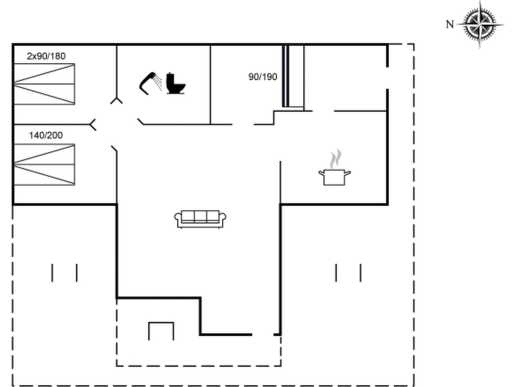 "Yvonna" - 350m to the fjord", 3-room house 107 m2. Object suitable for 8 adults. Living room with TV. 1 room with 1 x 2 bunk beds. 1 room with 2 sofabeds. Open gallery, 1 room with 1 double bed. Kitchen (oven, dishwasher, 4 ceramic glass hob hotplates, microwave, freezer). Shower/WC. Terrace 18 m2, roofed. Facilities: children's high chair. Internet (WiFi). Please note: non-smokers only. Maximum 2 pets/ dogs allowed. 760-31639