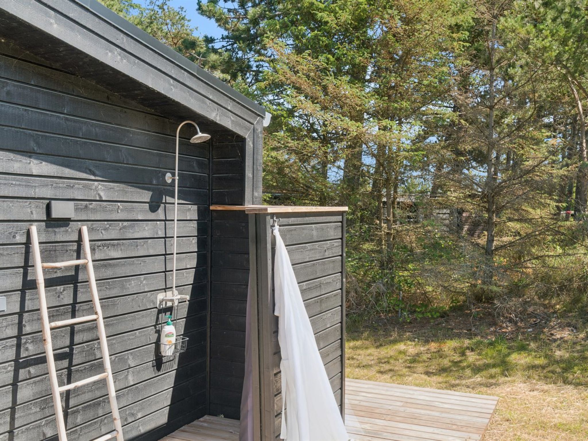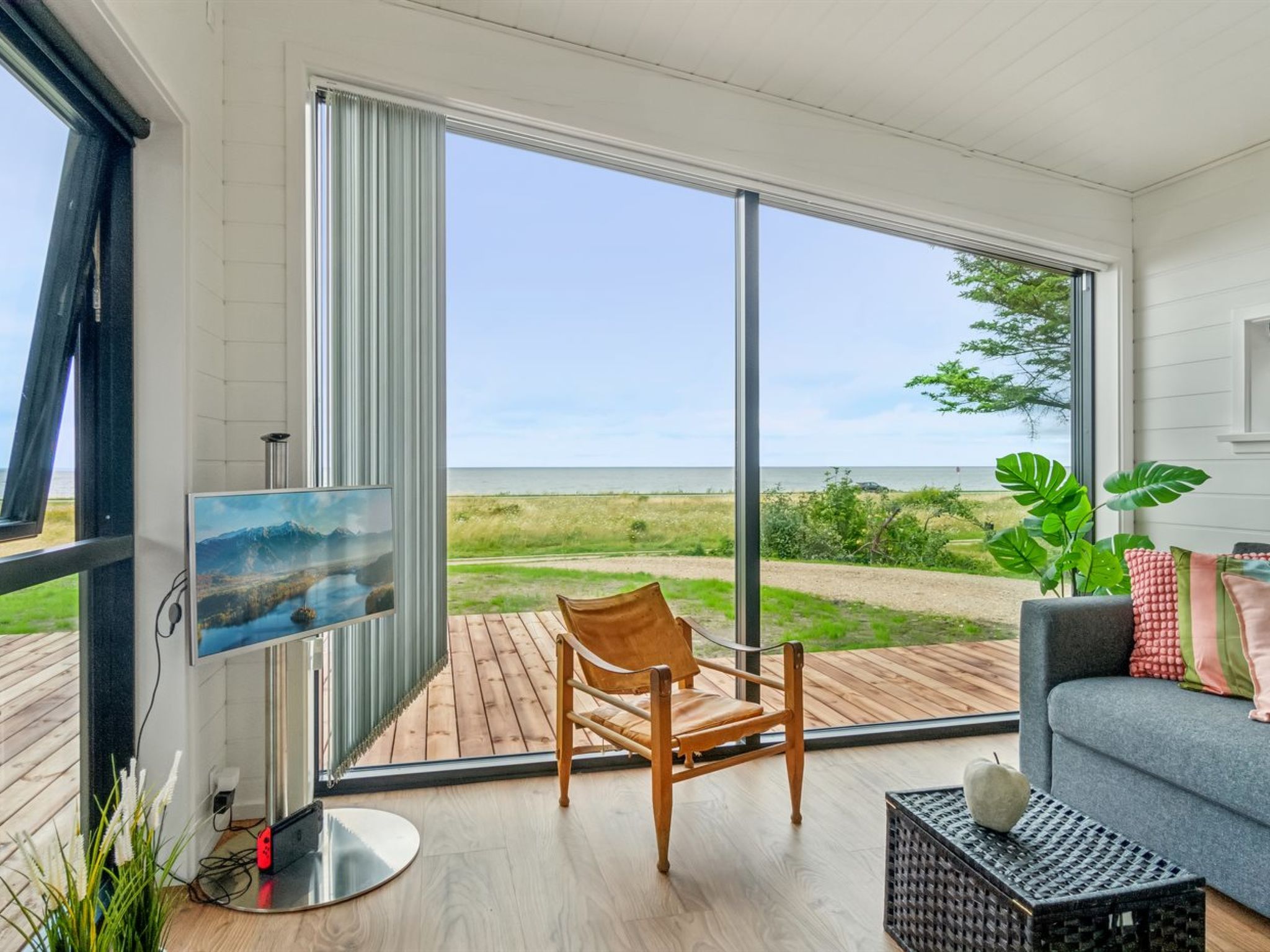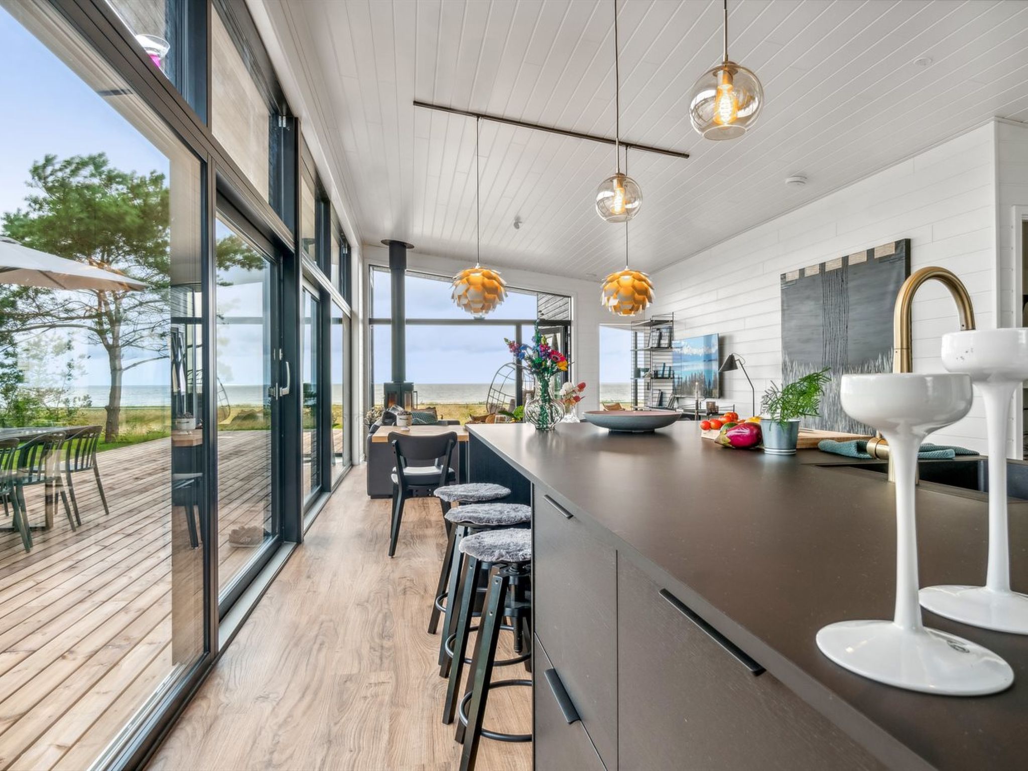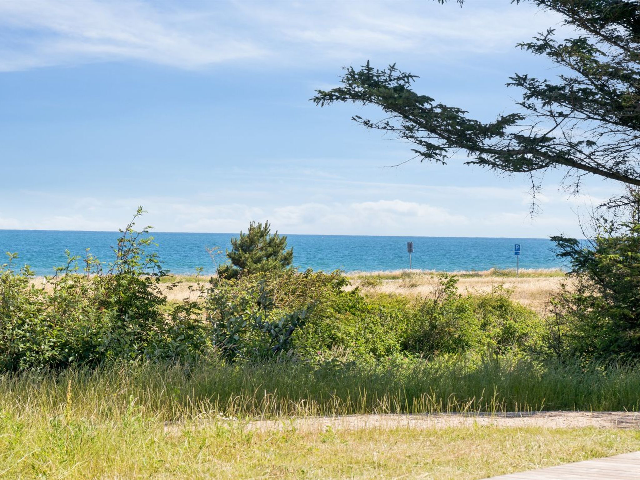 Single-family house, built in 2024. 75 m from the sea. Private: natural state property 2'453 m2. Outdoor shower, terrace (145 m2), barbecue. In the house: sauna, washing machine, tumble dryer. Parking at the house. Grocery 4.6 km. Golf course 9.5 km. The owner does not accept any youth groups.