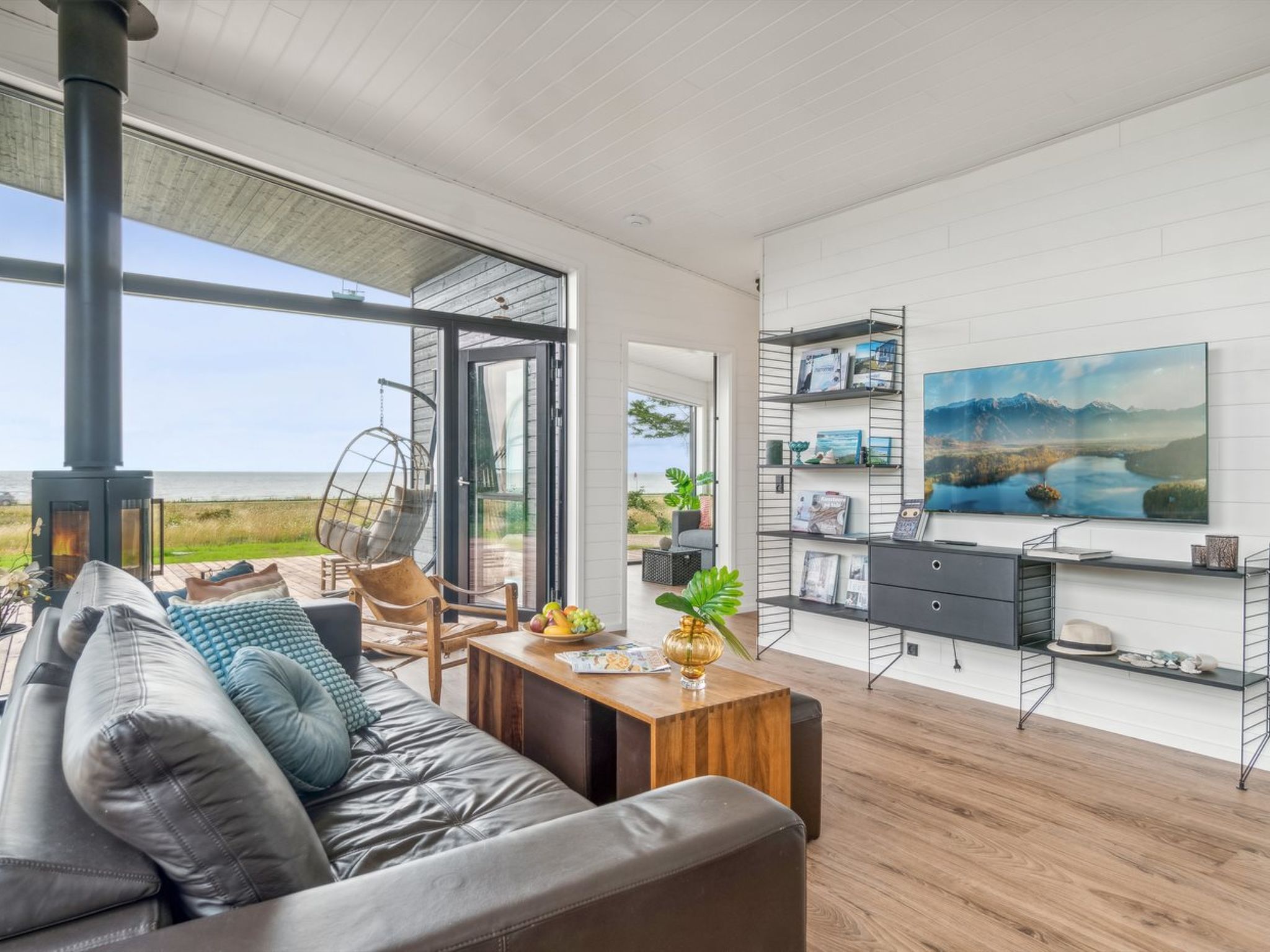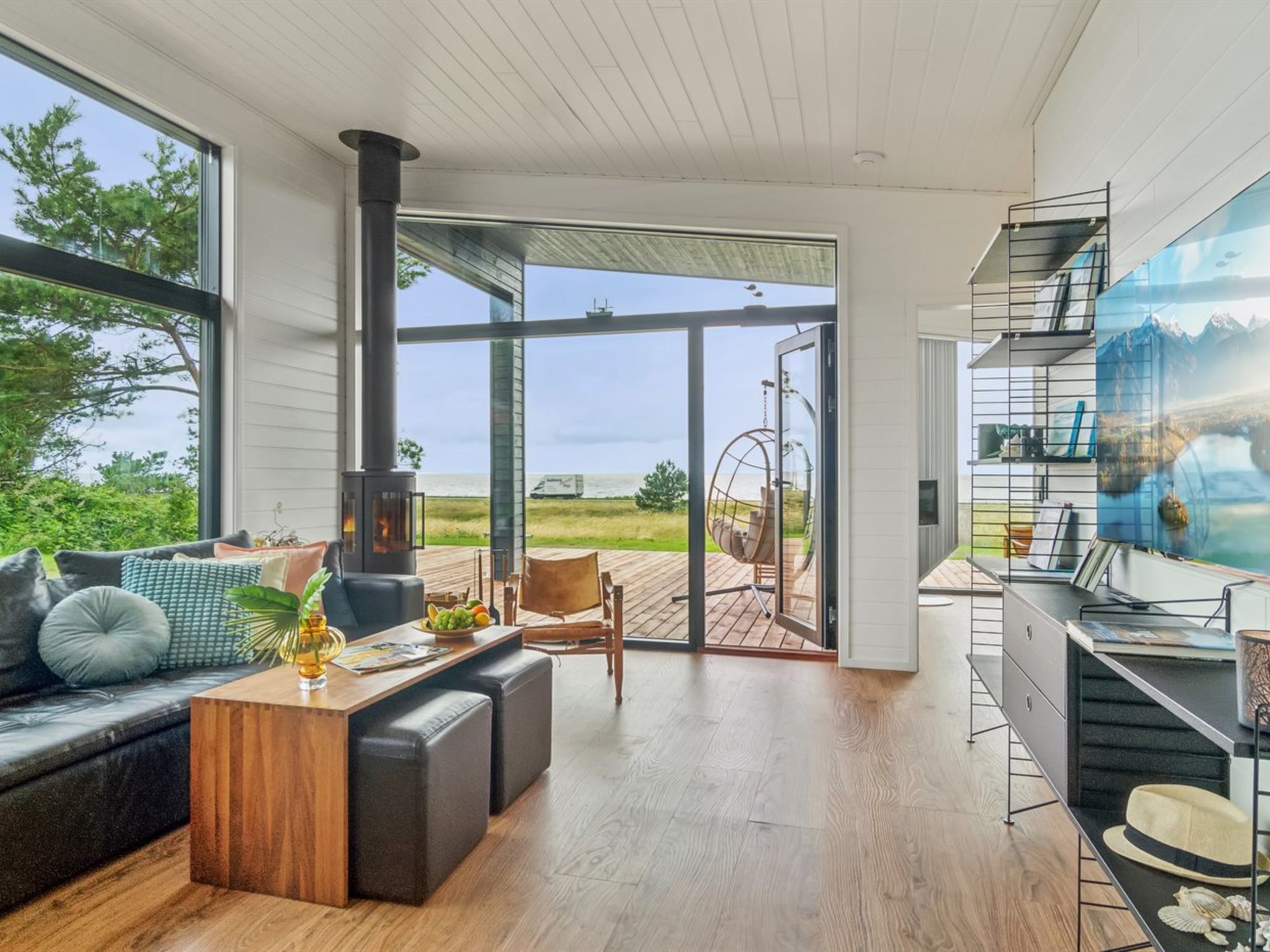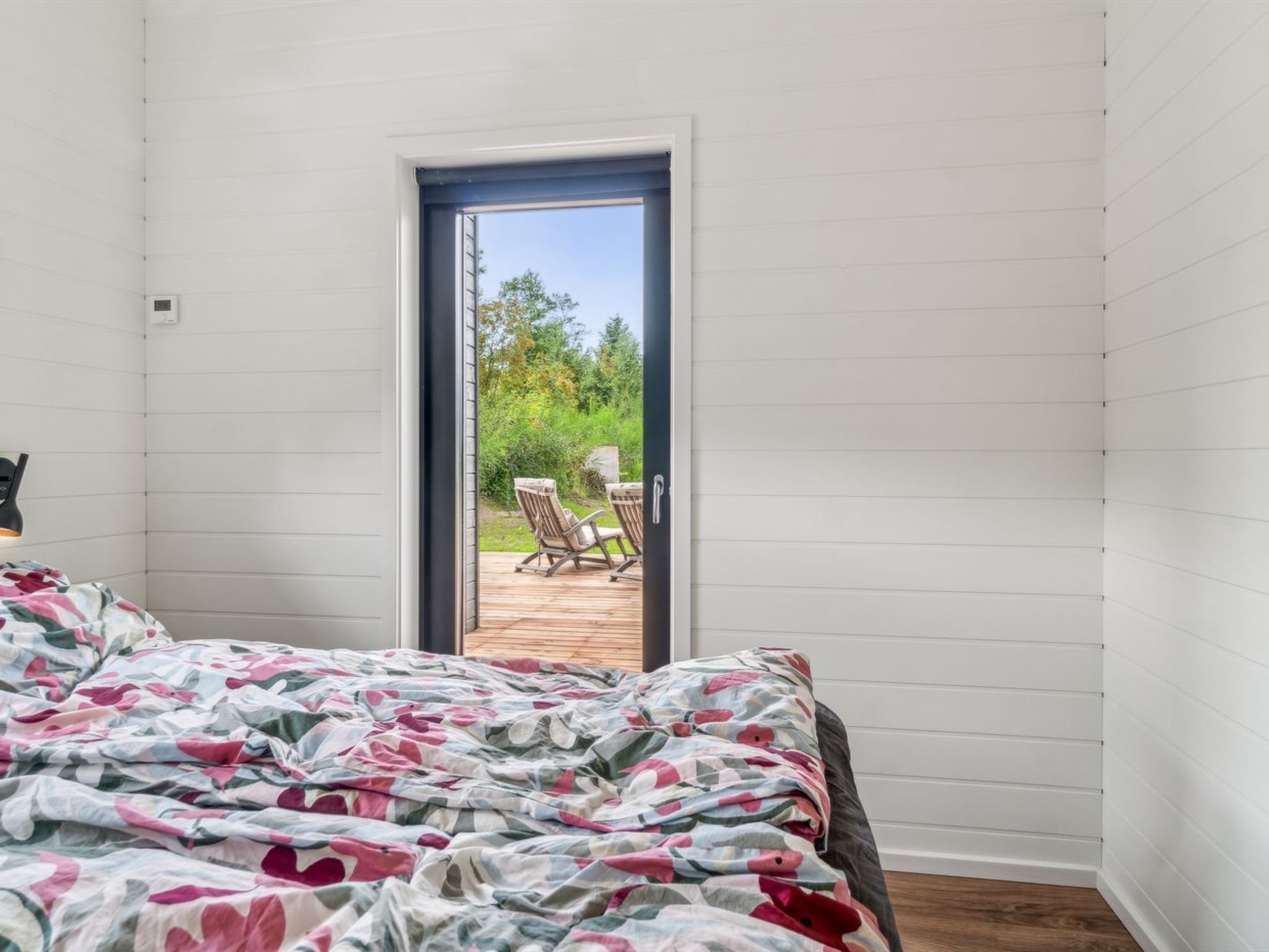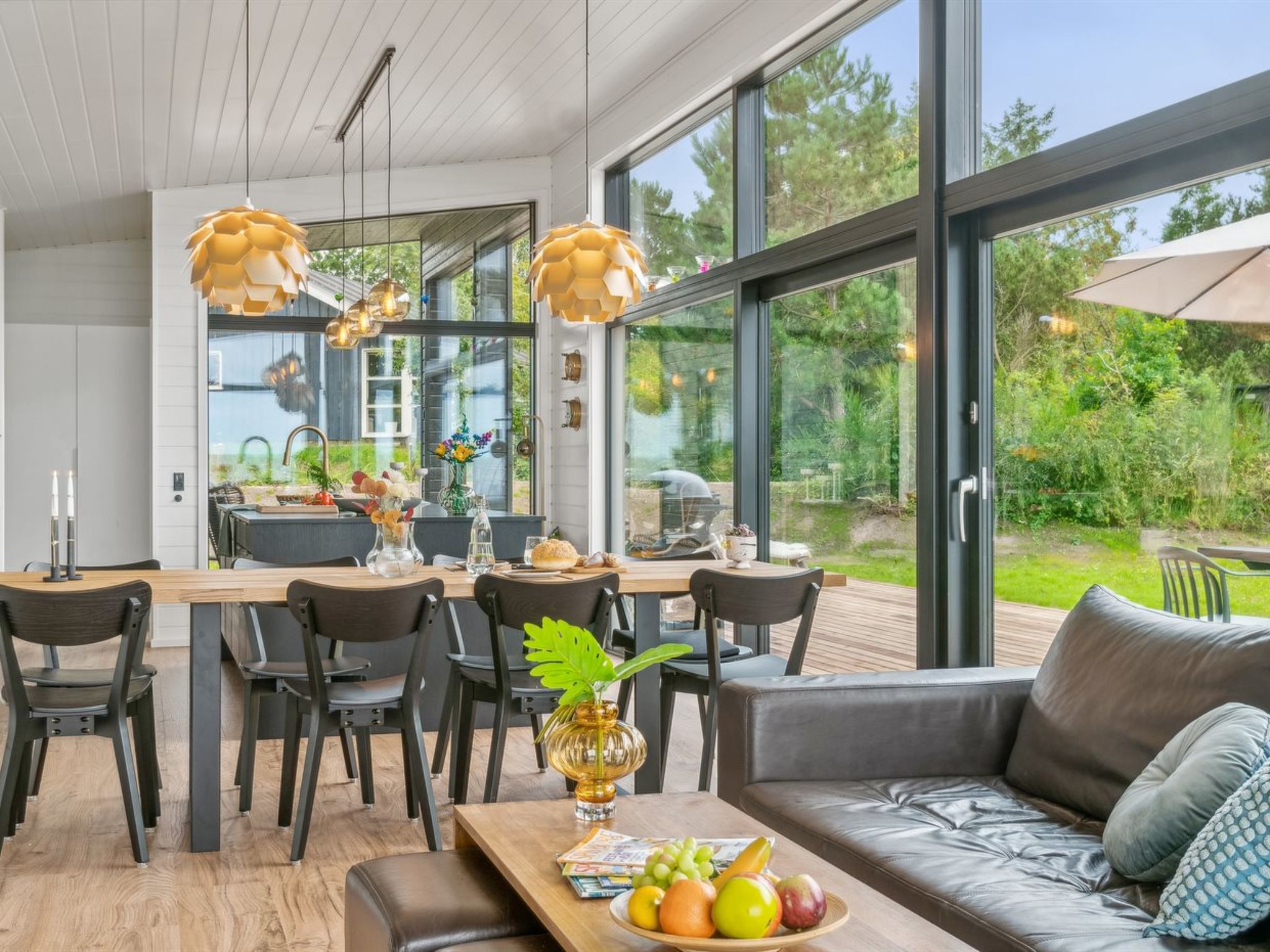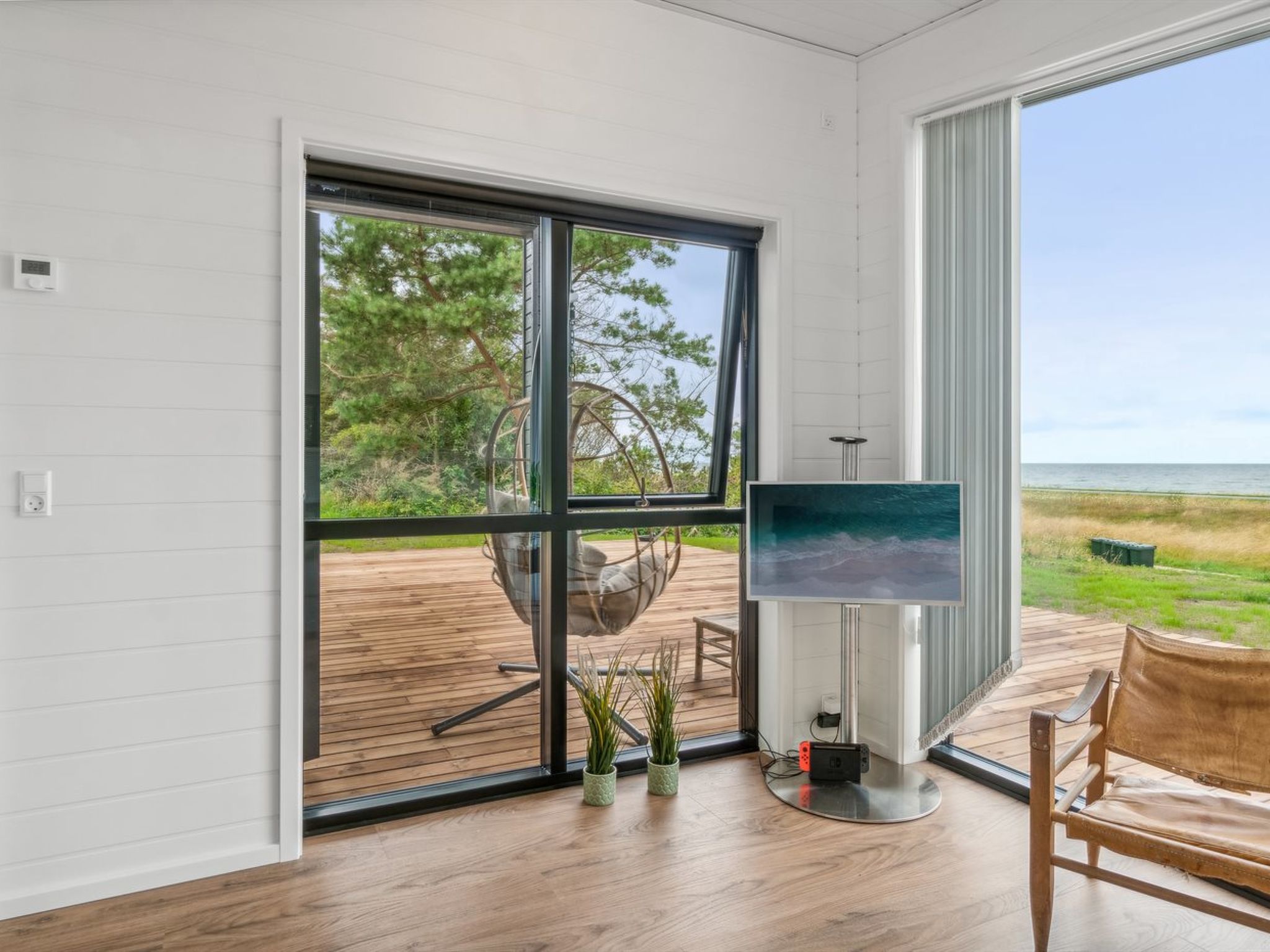 Single-family house, built in 2024. 75 m from the sea. Private: natural state property 2'453 m2. Outdoor shower, terrace (145 m2), barbecue. In the house: sauna, washing machine, tumble dryer. Parking at the house. Grocery 4.6 km. Golf course 9.5 km. The owner does not accept any youth groups.
