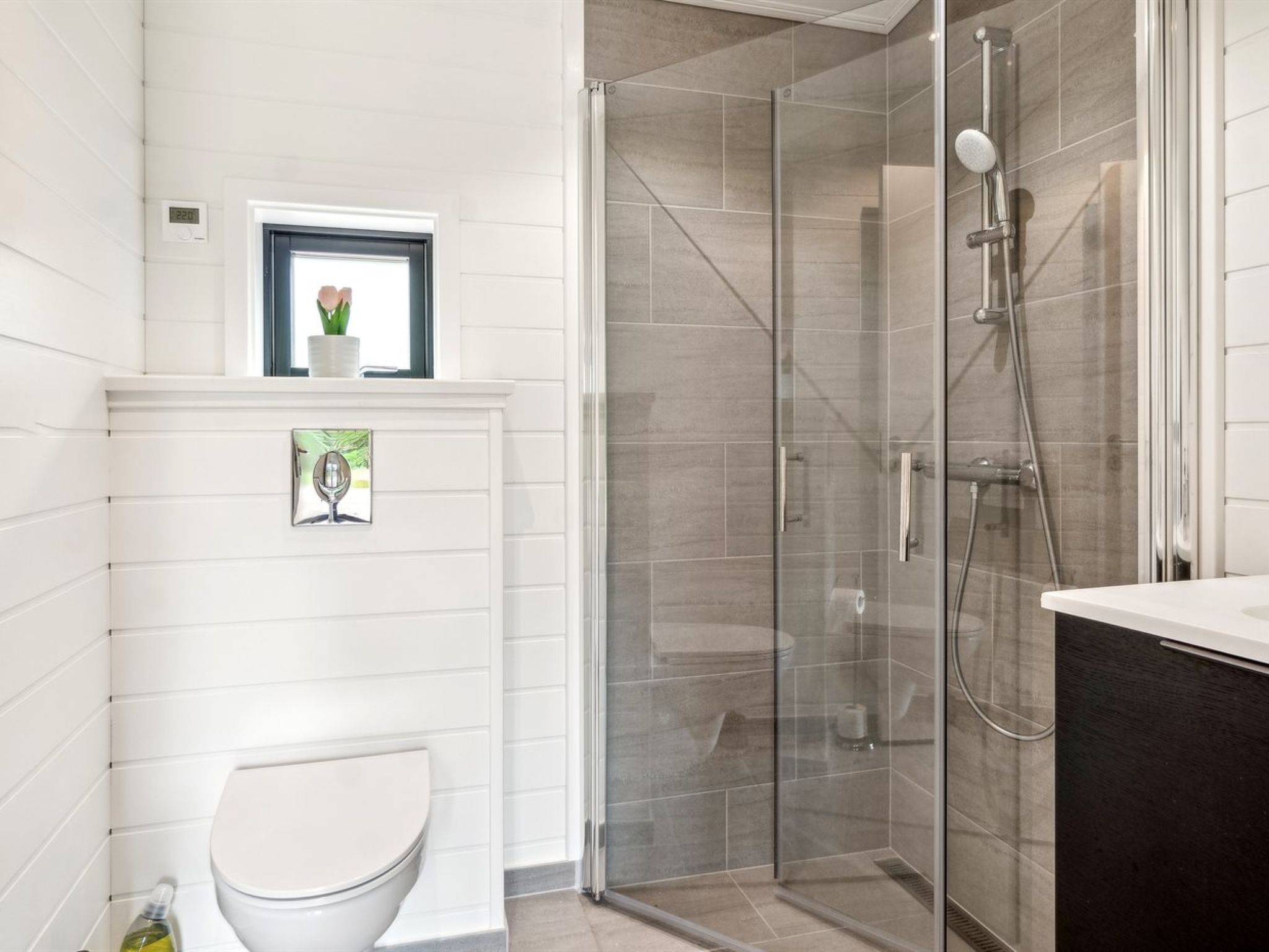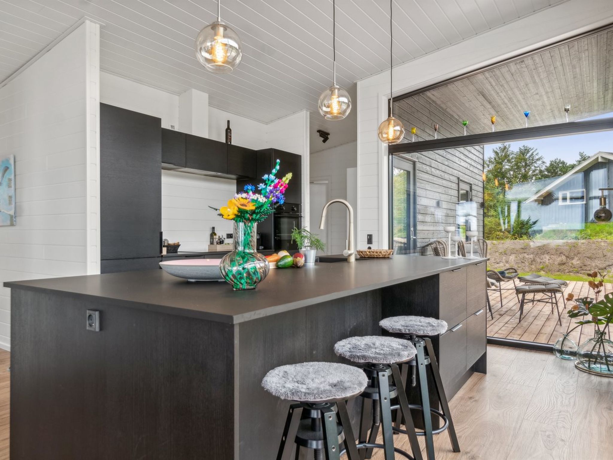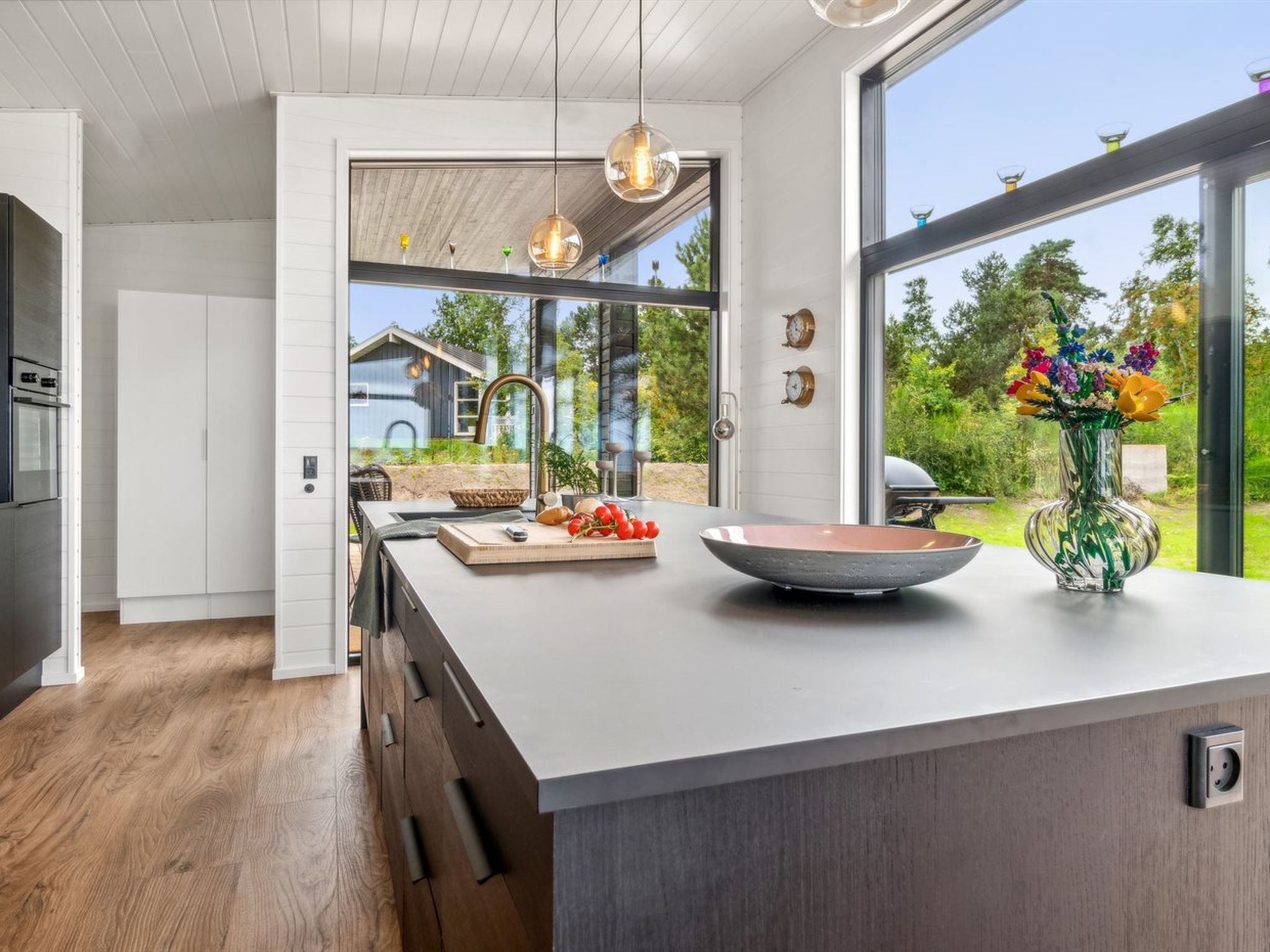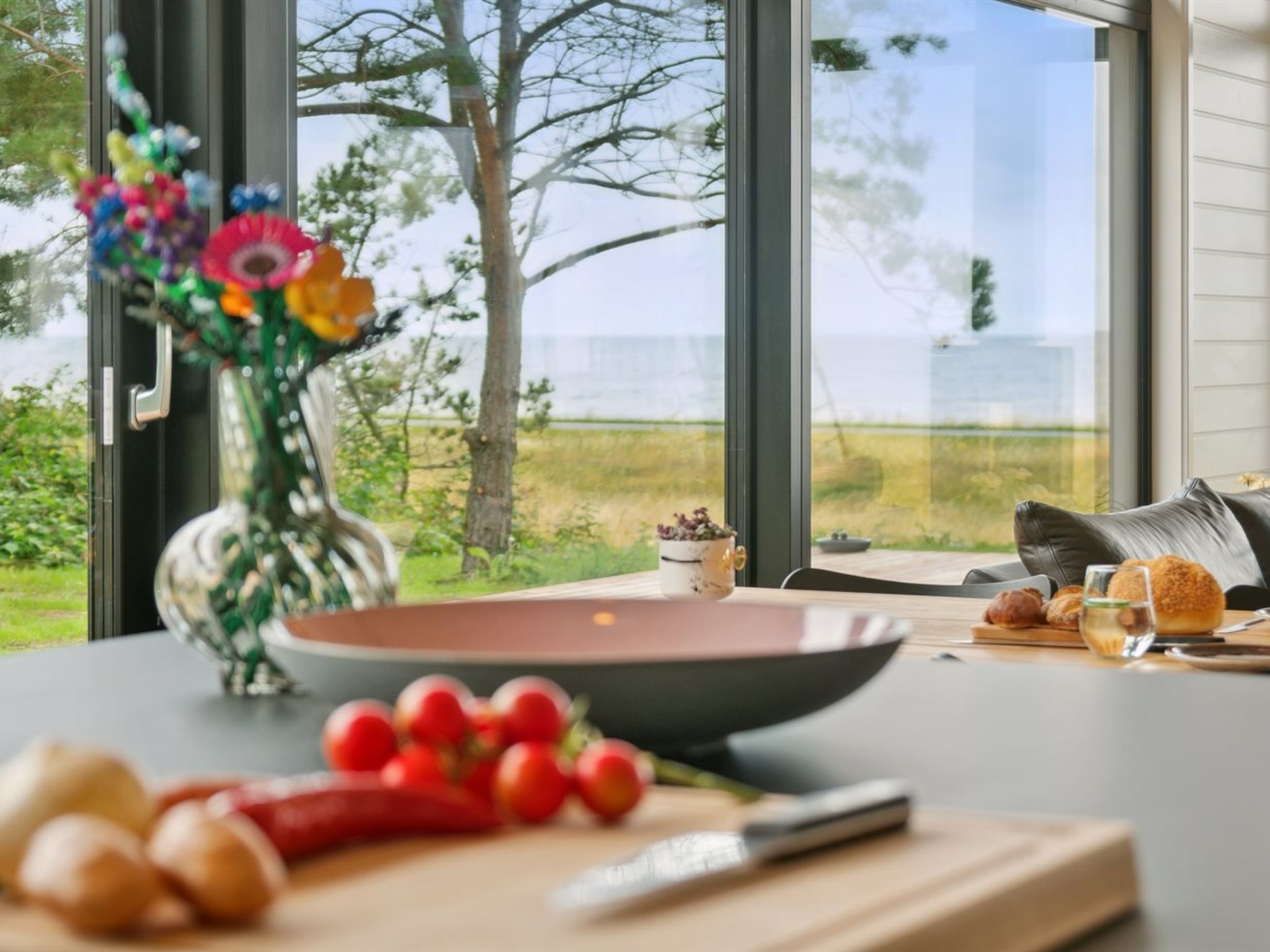 Single-family house, built in 2024. 75 m from the sea. Private: natural state property 2'453 m2. Outdoor shower, terrace (145 m2), barbecue. In the house: sauna, washing machine, tumble dryer. Parking at the house. Grocery 4.6 km. Golf course 9.5 km. The owner does not accept any youth groups.