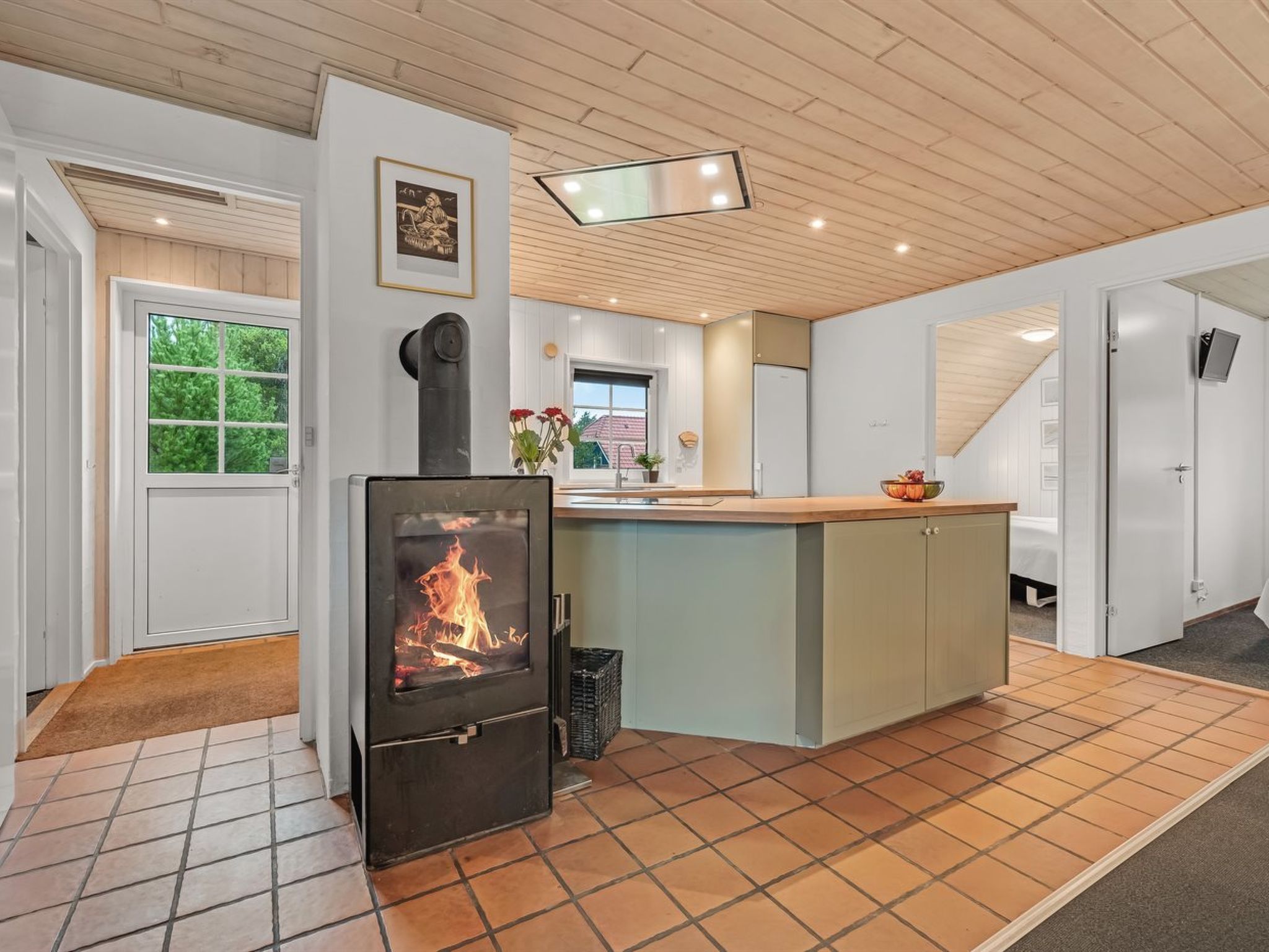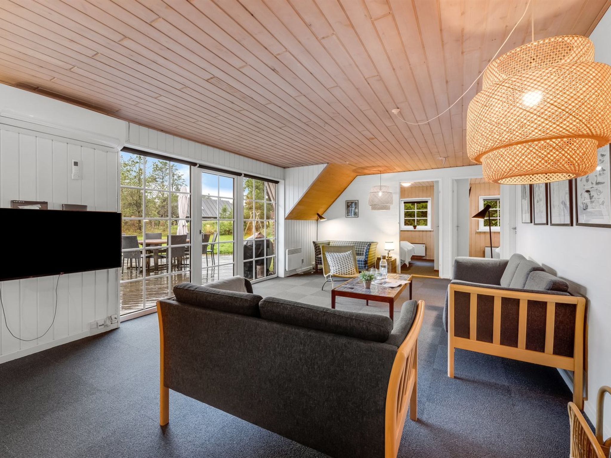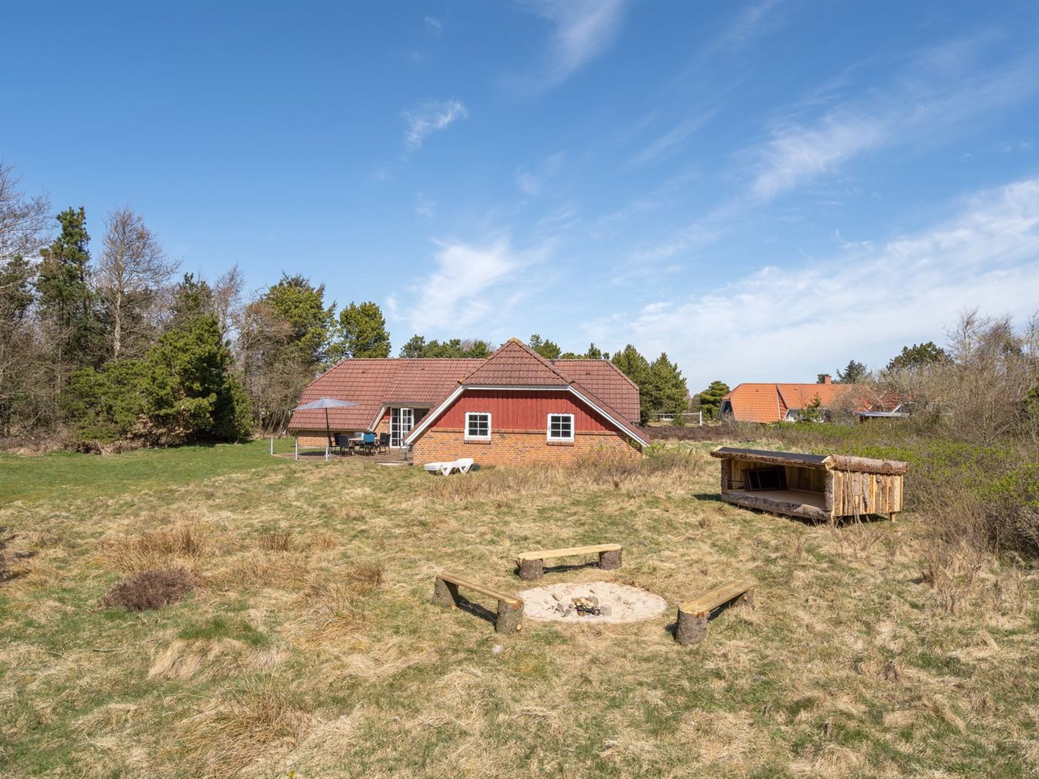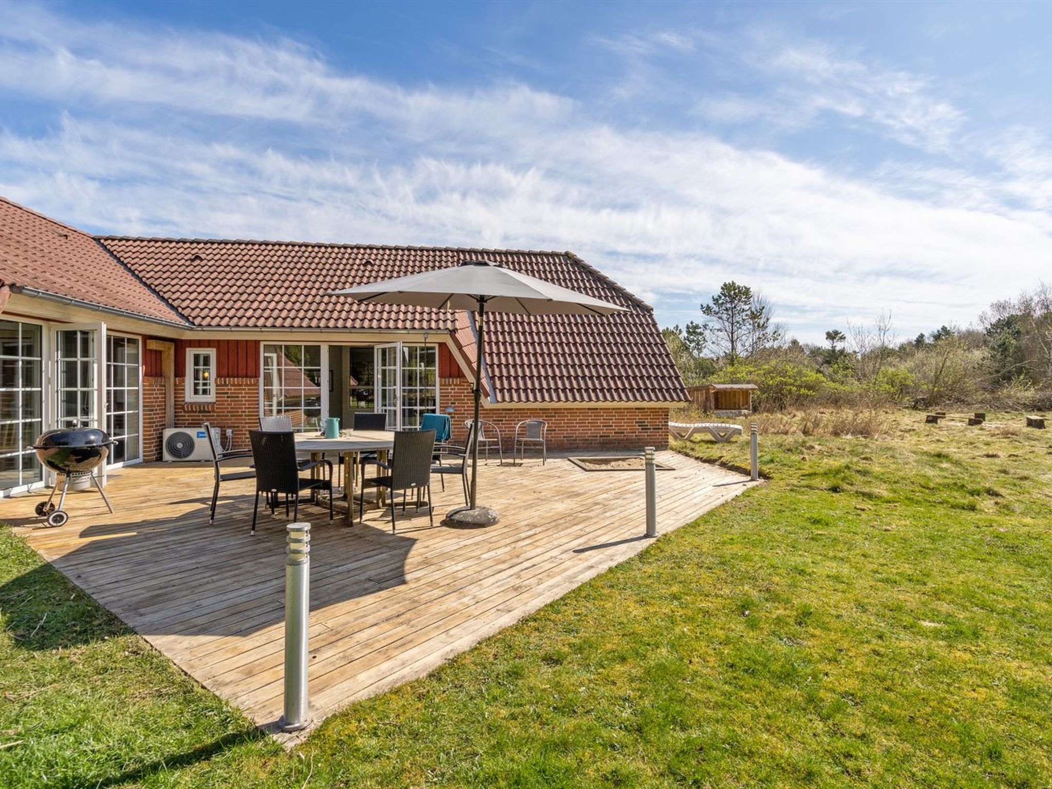 Single-family house, built in 1992. 1 km from the sea. Private: natural state property 2'500 m2. Children's playground (swing). In the house: sauna, table football, washing machine, tumble dryer. Parking at the house. Grocery 1 km. The owner does not accept any youth groups.