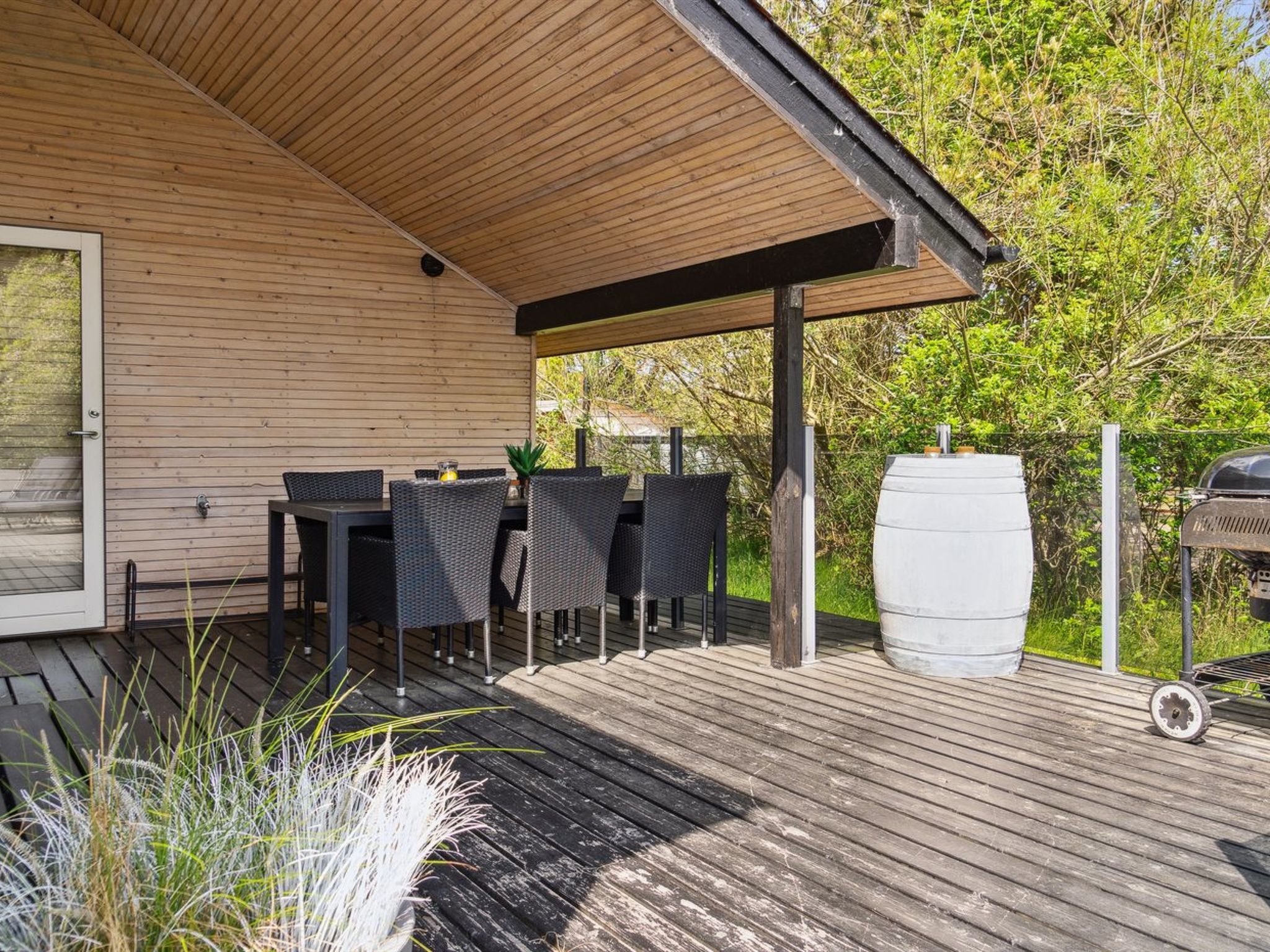"Julie" - 1.5km from the sea", 3-room house 82 m2. Object suitable for 6 adults. Living room with TV, radio, CD-player and DVD. 1 room with 1 double bed. 1 room with 1 double bed. 1 room with 2 beds. Kitchen (oven, dishwasher, 4 ceramic glass hob hotplates, microwave, freezer). Shower/WC. Terrace 15 m2, roofed. Facilities: Internet (WiFi). Please note: non-smokers only. Maximum 1 pet/ dog allowed. 563-41919