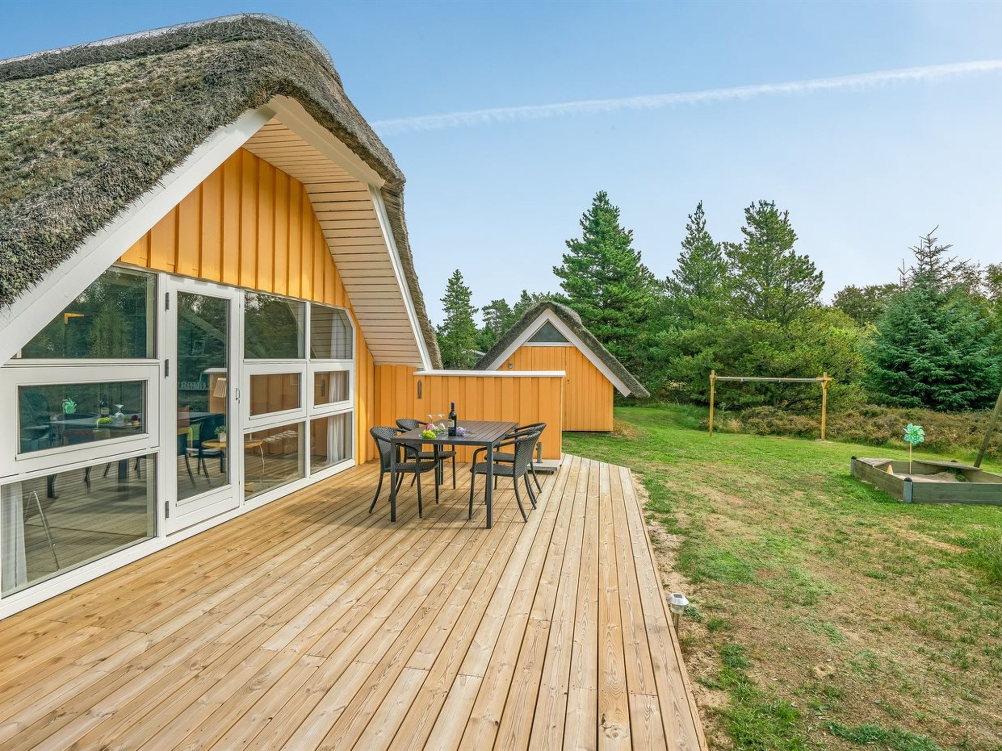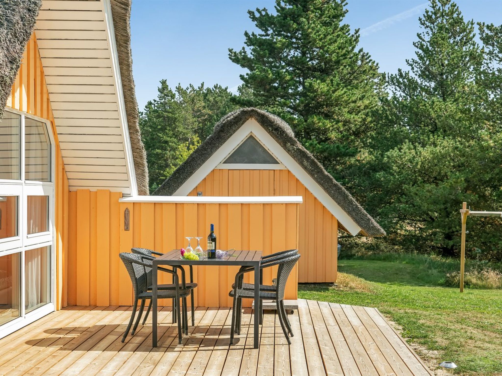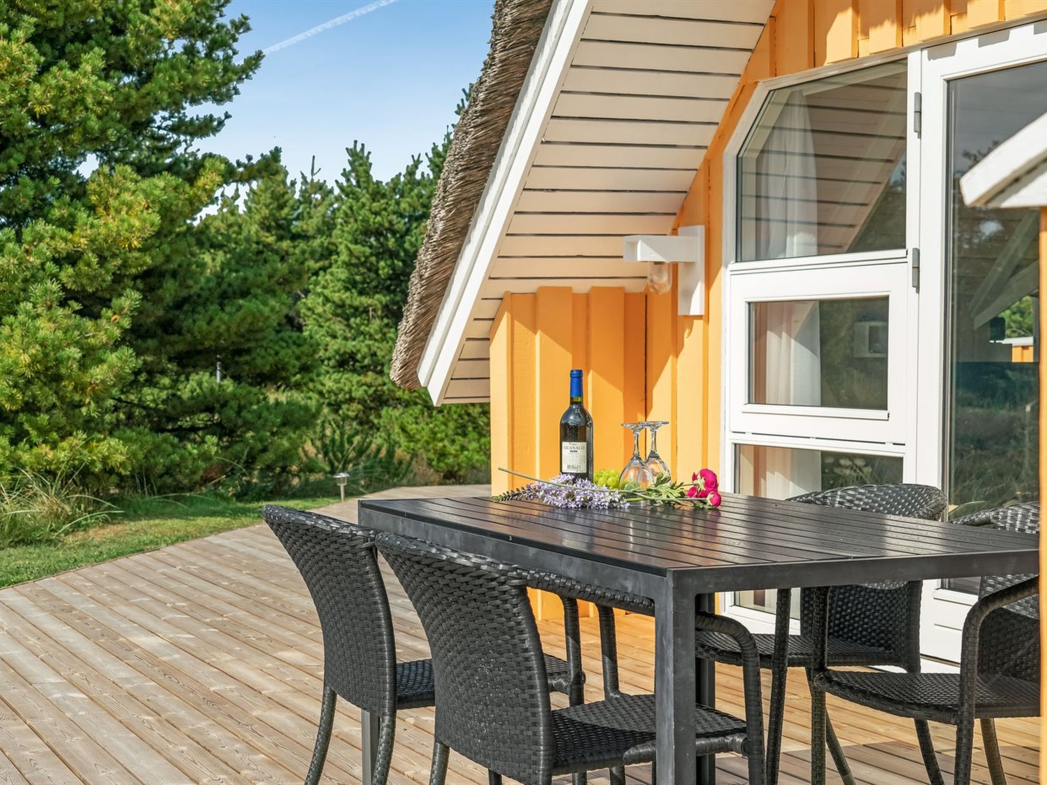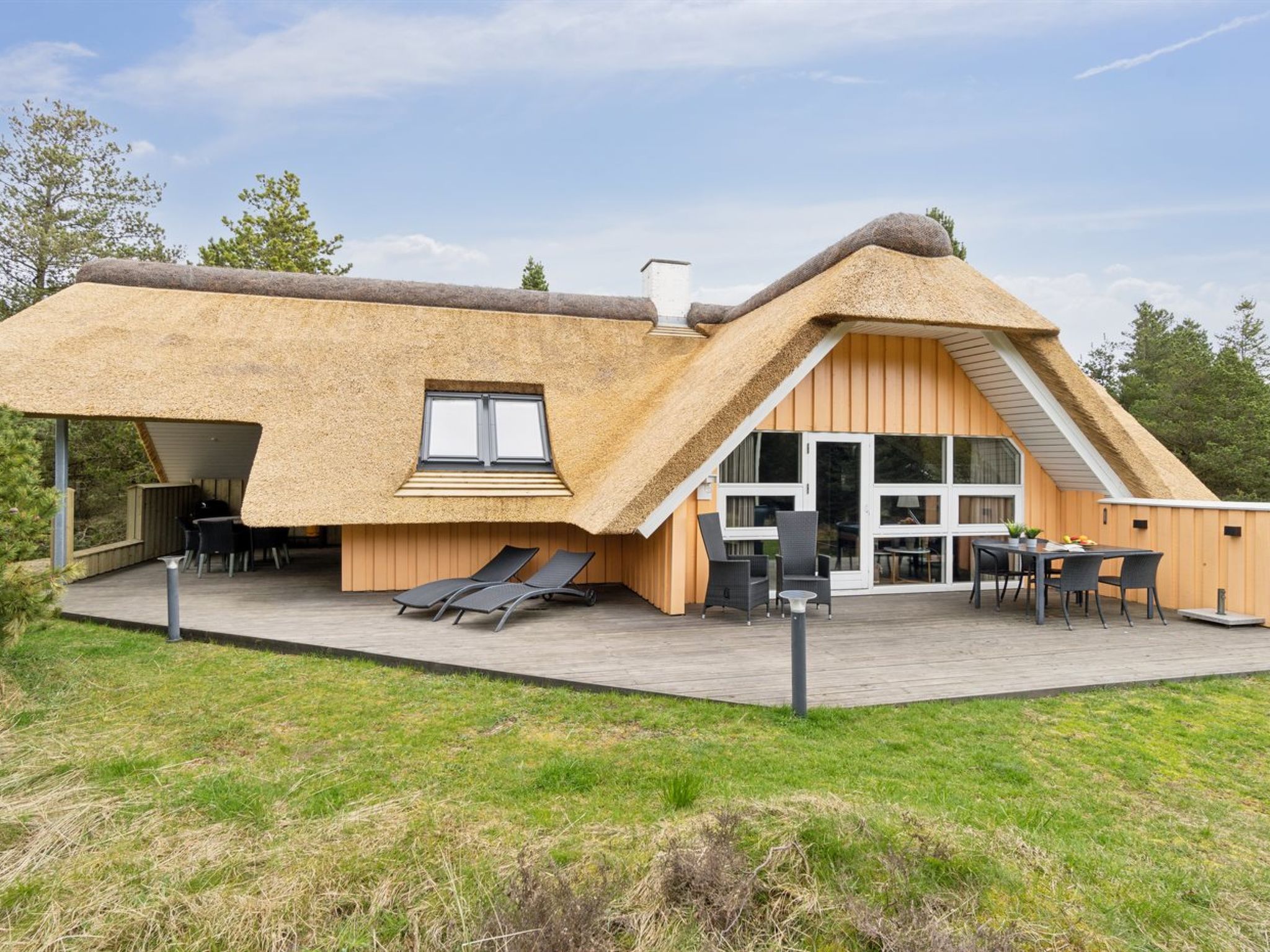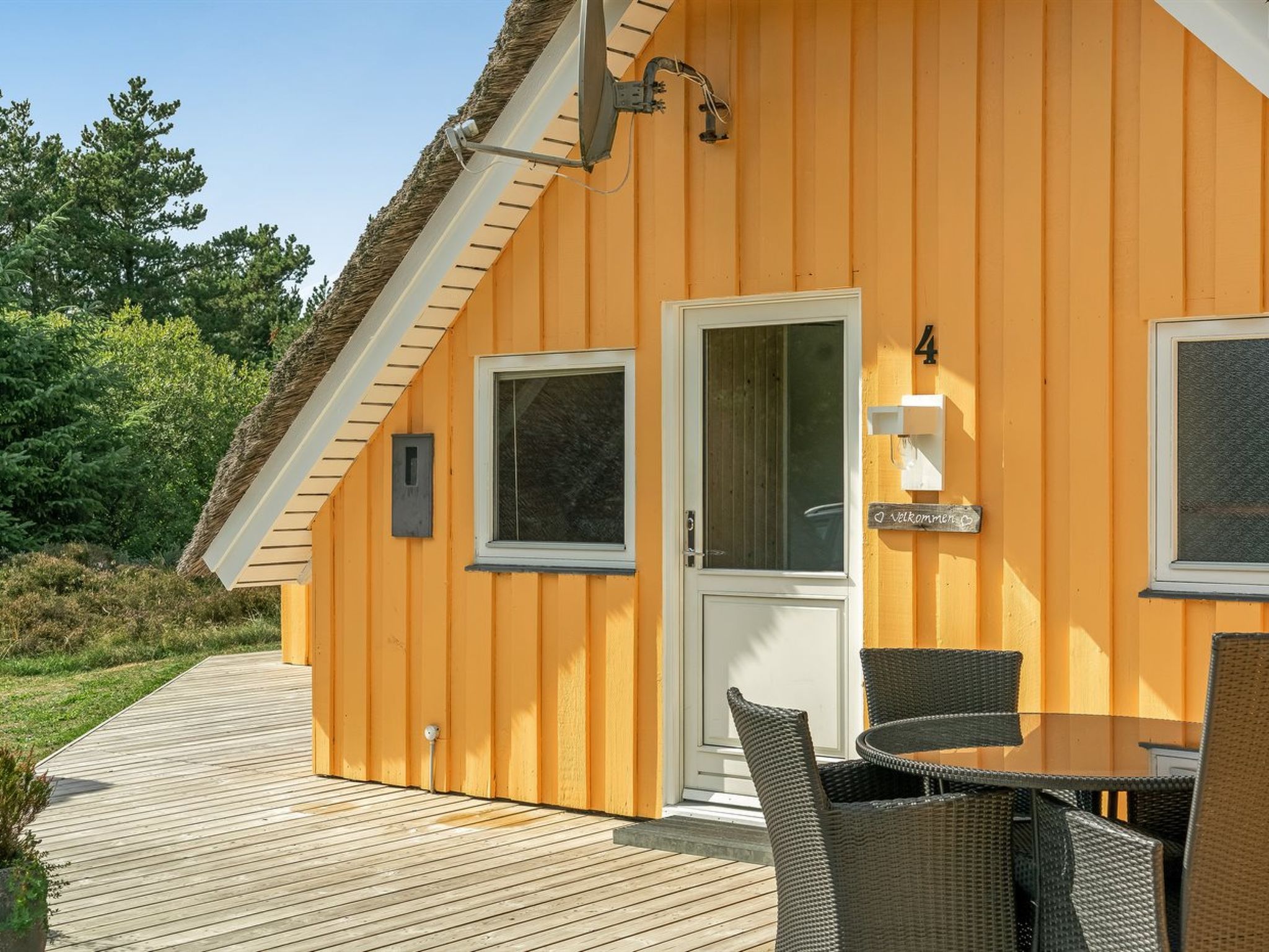 "Wale" - 3.3km from the sea", 3-room house 96 m2. Object suitable for 6 adults + 1 child. Living room with open-hearth fireplace, TV and radio. 1 room with 1 double bed. 1 room with 1 x 2 bunk beds. Open gallery, 1 room with 1 double bed and 2 sleeping facilities. Kitchen (4 hot plates, oven, dishwasher, microwave, freezer). Shower/WC, hydro massage bath. Terrace 23 m2, roofed. Facilities: children's high chair, baby cot. Internet (DSL/LAN). Please note: non-smokers only. Maximum 1 pet/ dog allowed. 550-12741