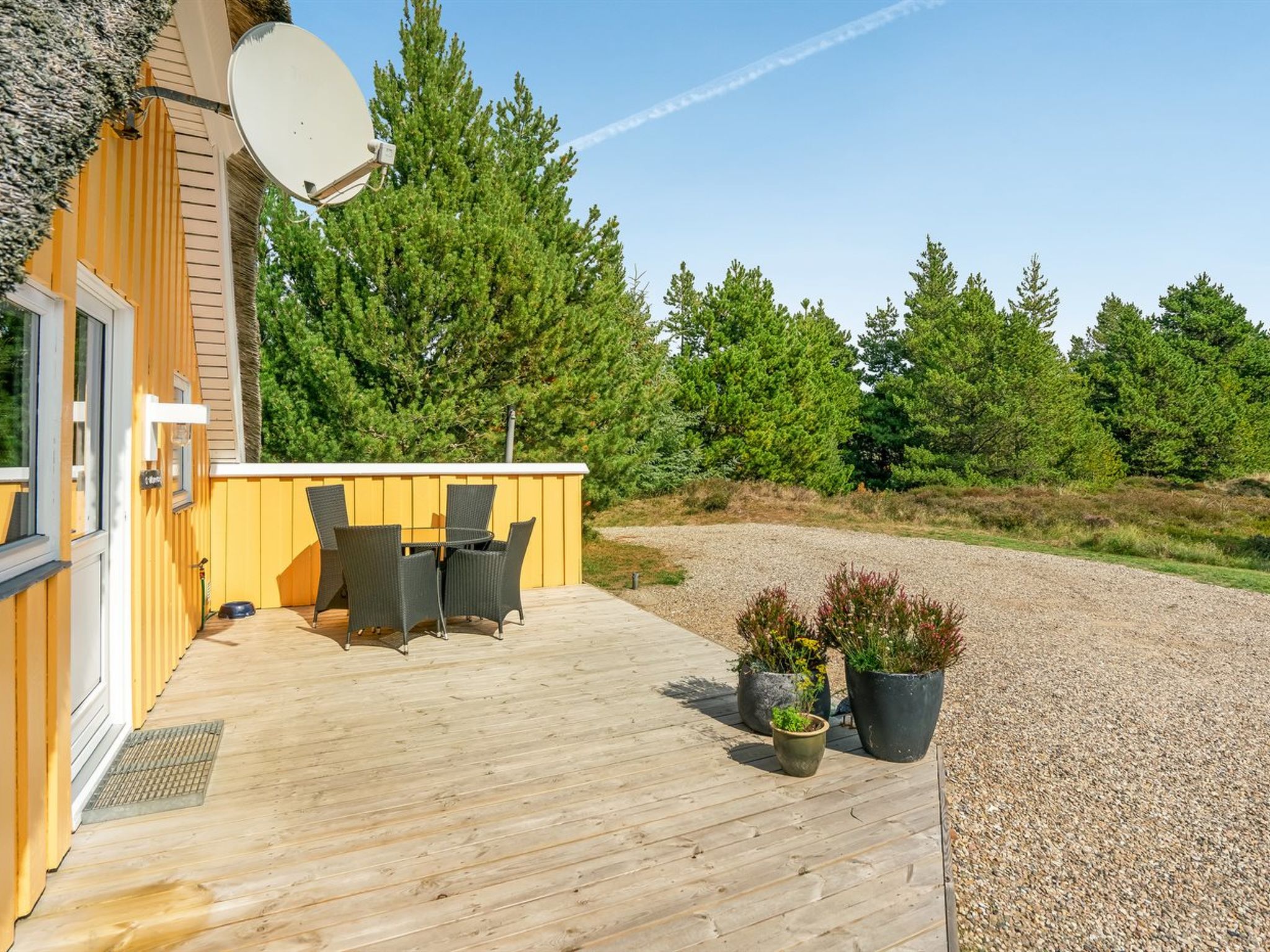 Single-family house, built in 1987. 3.3 km from the sea. Private: natural state property 2'500 m2. Terrace (100 m2), children's playground (swing). In the house: sauna, washing machine, tumble dryer. Parking at the house. Grocery 1 km. The owner does not accept any youth groups.