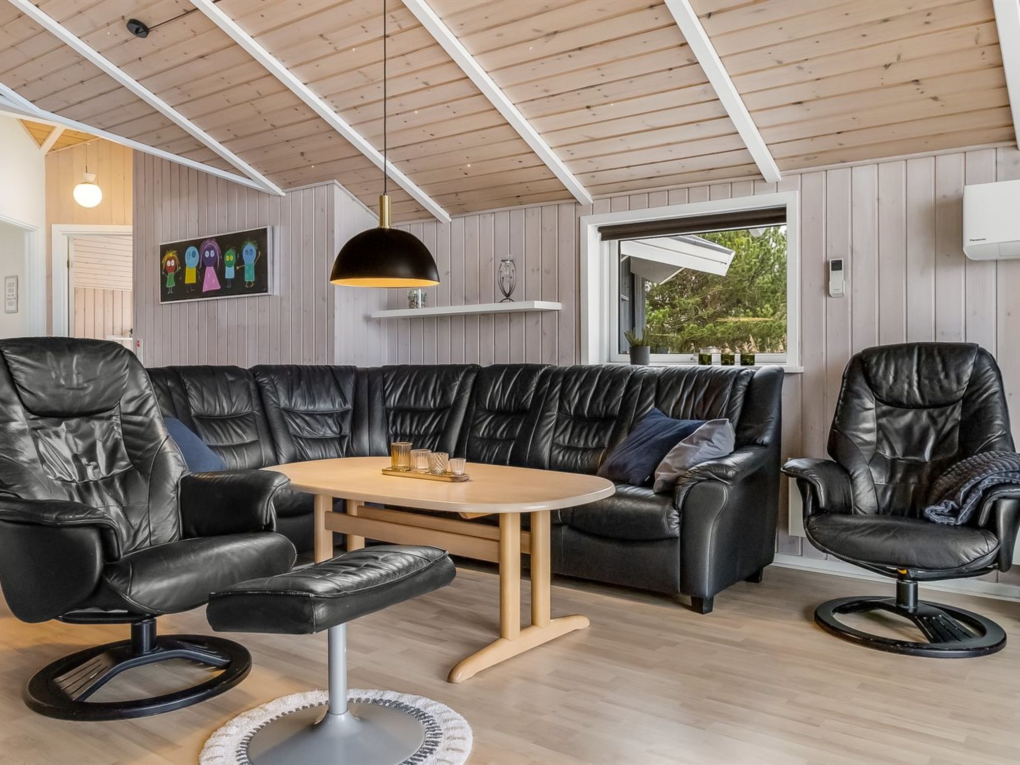 Single-family house, built in 2003. 2.5 km from the sea. Private: natural state property 2'500 m2. Terrace (125 m2), children's playground. In the house: sauna, washing machine, tumble dryer. Parking at the house. E-charging station. Grocery 4.3 km. The owner does not accept any youth groups.