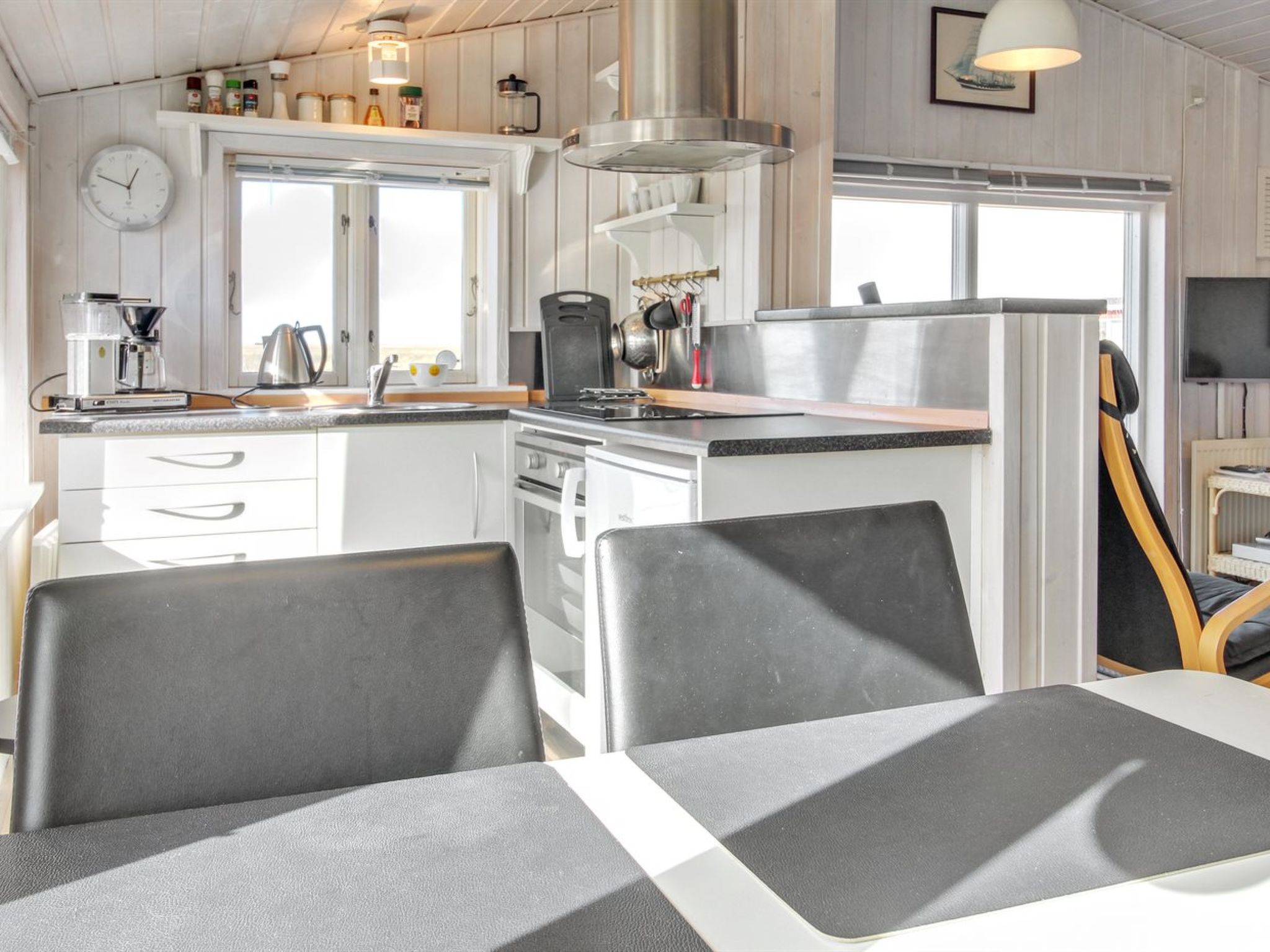 "Mortensen" - 350m from the sea", 2-room house 50 m2. Object suitable for 2 adults. Living room with 1 double sofabed, TV, CD-player, hi-fi system and DVD. 1 room with 1 double bed. Kitchen (4 hot plates, oven, freezer). Shower/WC, hydro massage bath. Terrace 4 m2, roofed. View of the sea. Facilities: Internet (WiFi). Please note: non-smokers only. Maximum 1 pet/ dog allowed. 550-13220