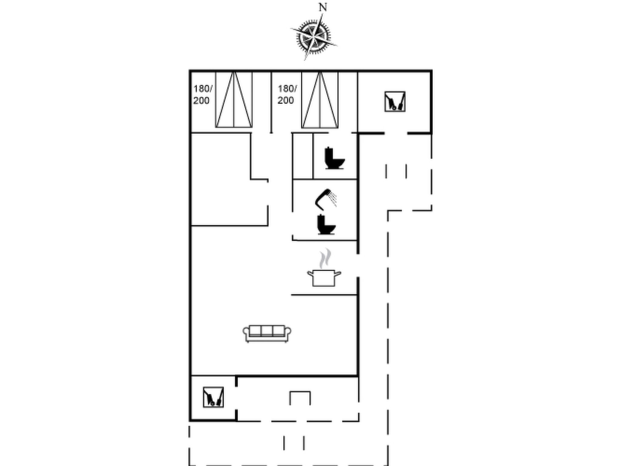 "Nandolf" - 3.5km from the sea", 2-room house 76 m2. Object suitable for 4 adults. Living room with TV, CD-player and hi-fi system. 1 room with 1 double bed. 1 room with 1 double bed. Kitchen (oven, dishwasher, 4 induction hot plates, microwave, freezer). Shower/WC. Terrace 14 m2, roofed. Facilities: children's high chair. Maximum 2 pets/ dogs allowed. 550-8374