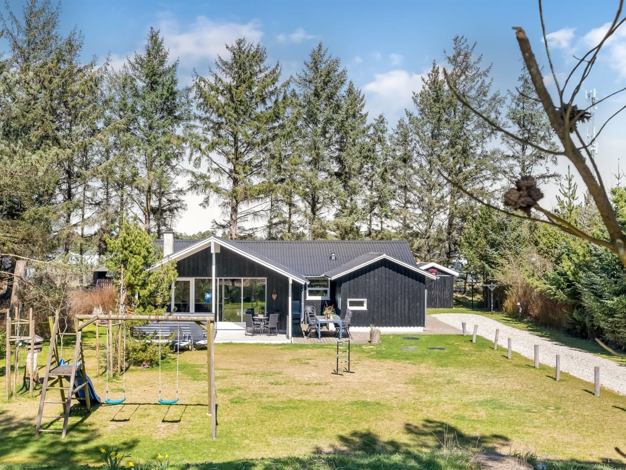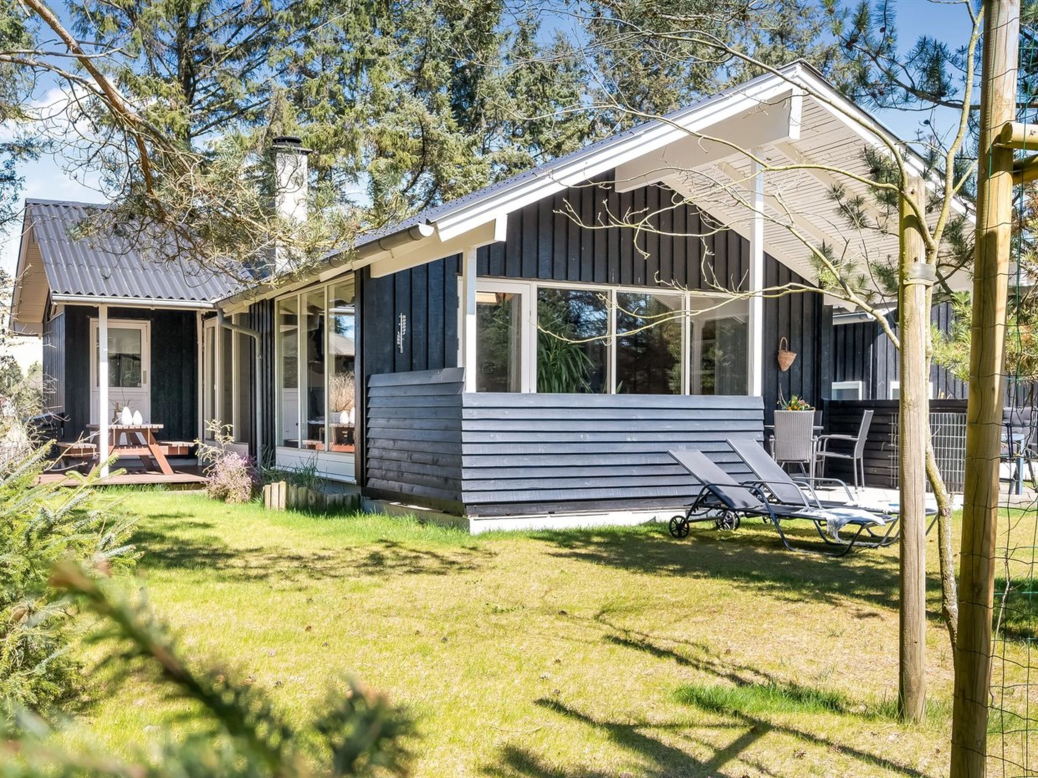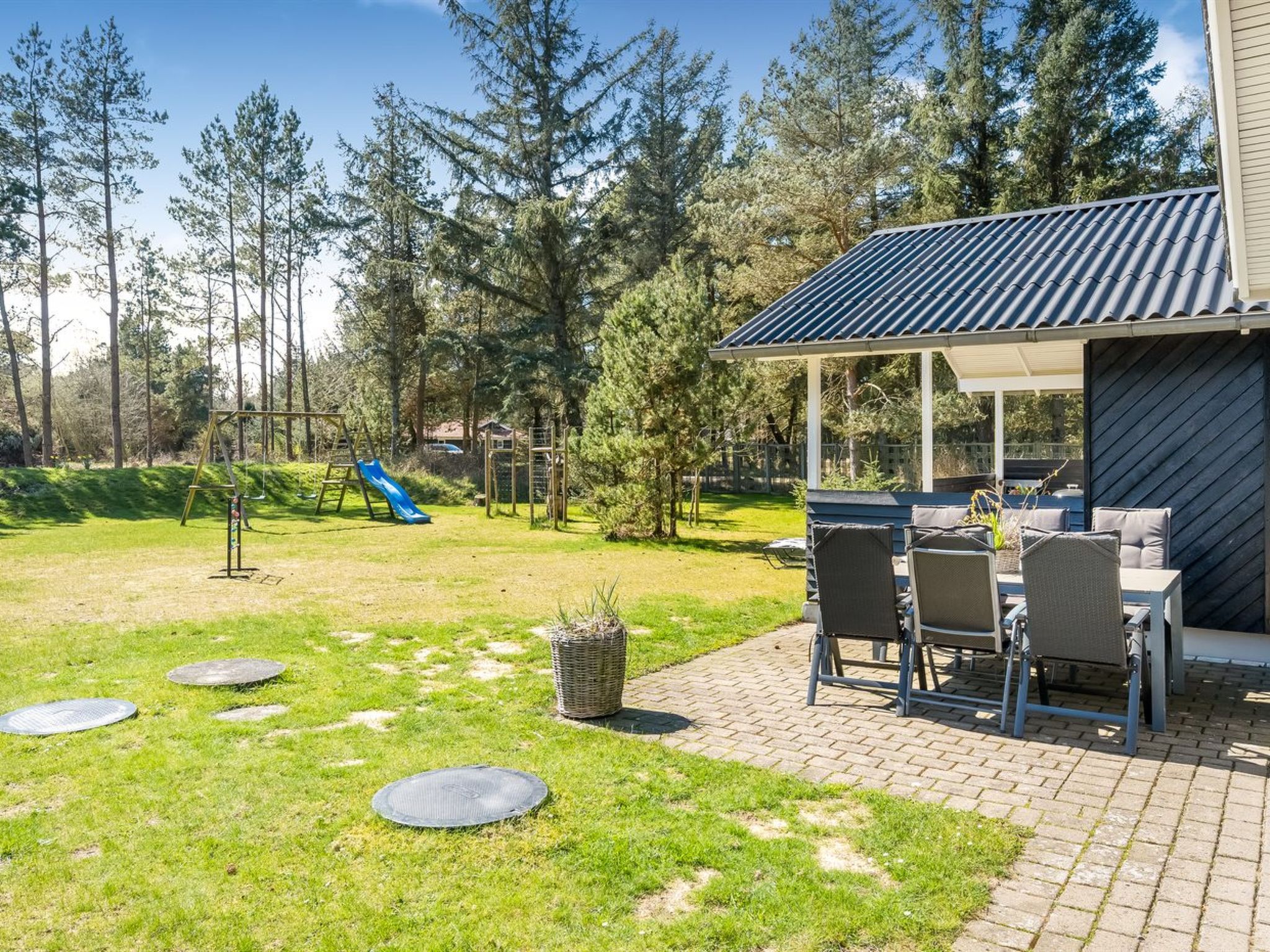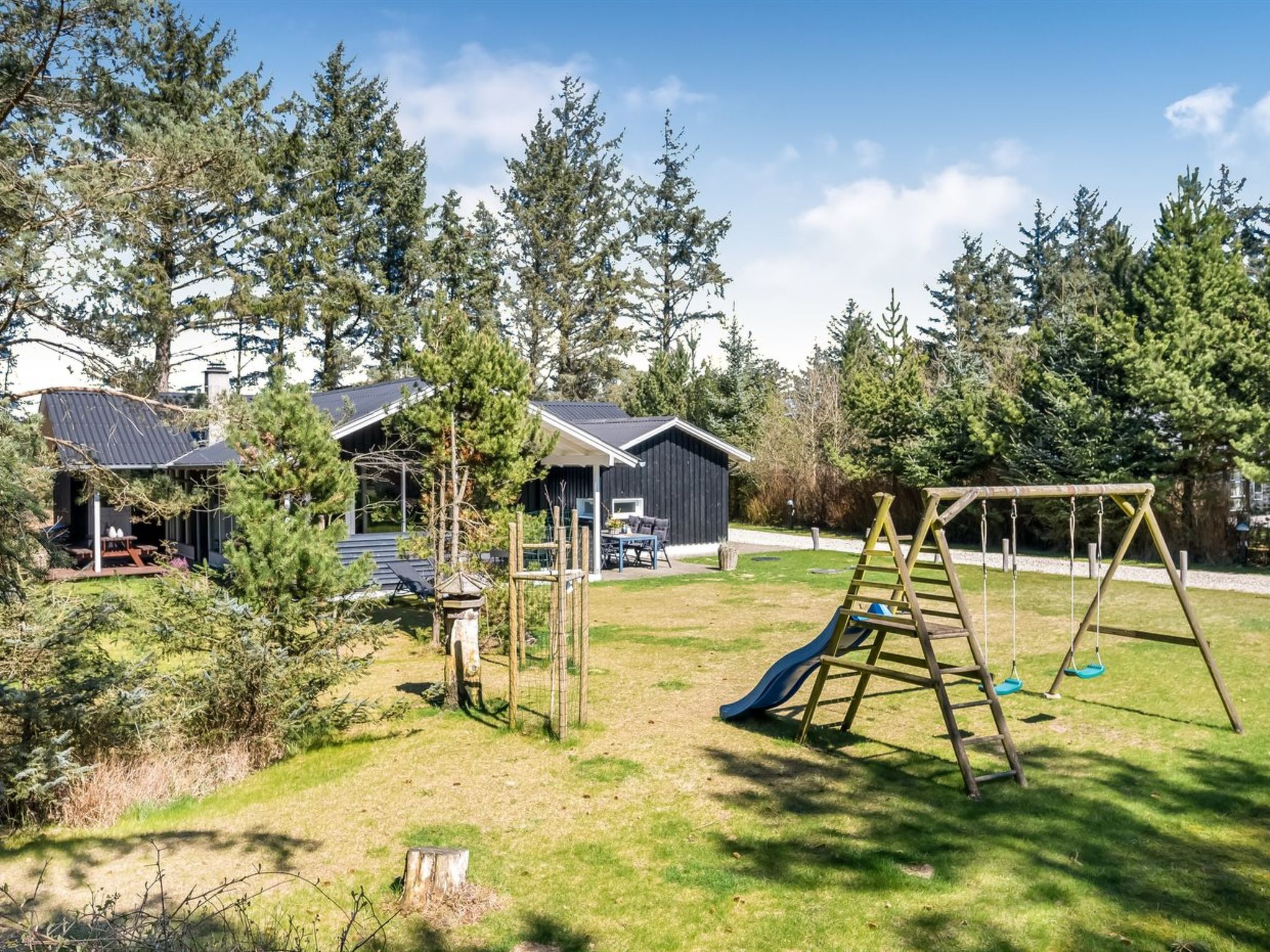 Single-family house, built in 1970. 2 km from the sea. Private: natural state property 2'014 m2. Terrace (25 m2), children's playground (swing). In the house: sauna, washing machine, tumble dryer. Parking at the house. Grocery 300 m. The owner does not accept any youth groups.