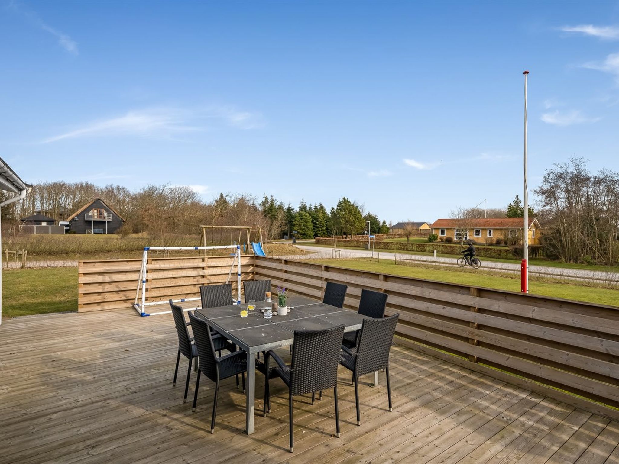 Single-family house, built in 2000. Private: property 1'200 m2, well-kept garden. Children's playground (slide, swing). In the house: table football, washing machine, tumble dryer. Parking at the house. E-charging station. Grocery 750 m. The owner does not accept any youth groups.