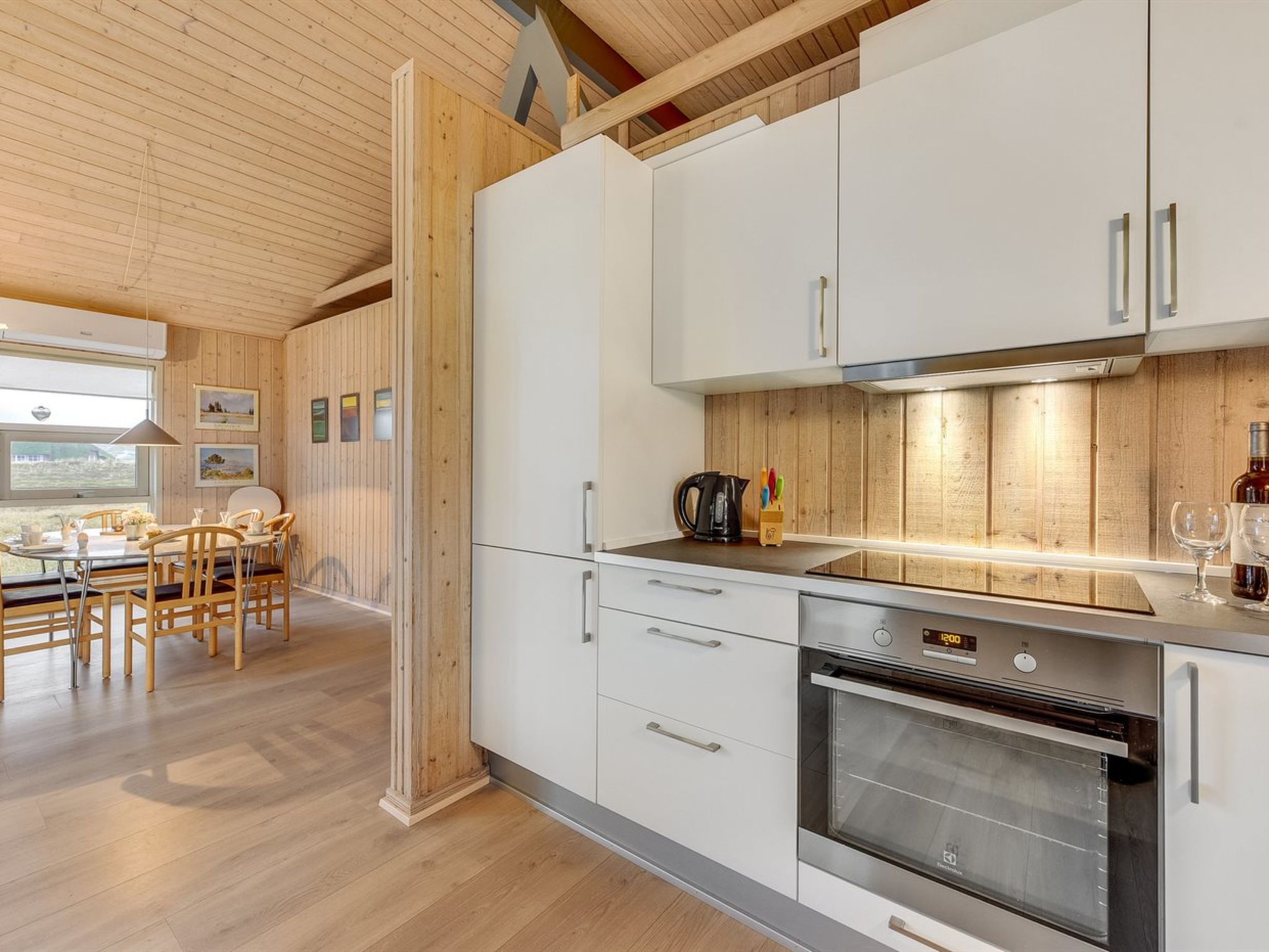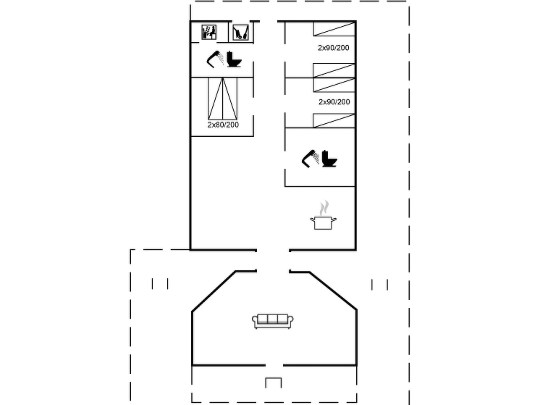 "Janni" - 250m from the sea", 3-room house 105 m2. Object suitable for 8 adults. Living room with TV, CD-player, hi-fi system and DVD. 1 room with 2 beds. 1 room with 2 beds. 1 room with 1 double bed. Kitchen (4 hot plates, oven, dishwasher, microwave, freezer). 2 showers/WC. Upper floor: open gallery with 2 sleeping facilities. Terrace 12 m2, roofed. Facilities: Internet (WiFi). Please note: non-smokers only. Maximum 1 pet/ dog allowed. 760-9104