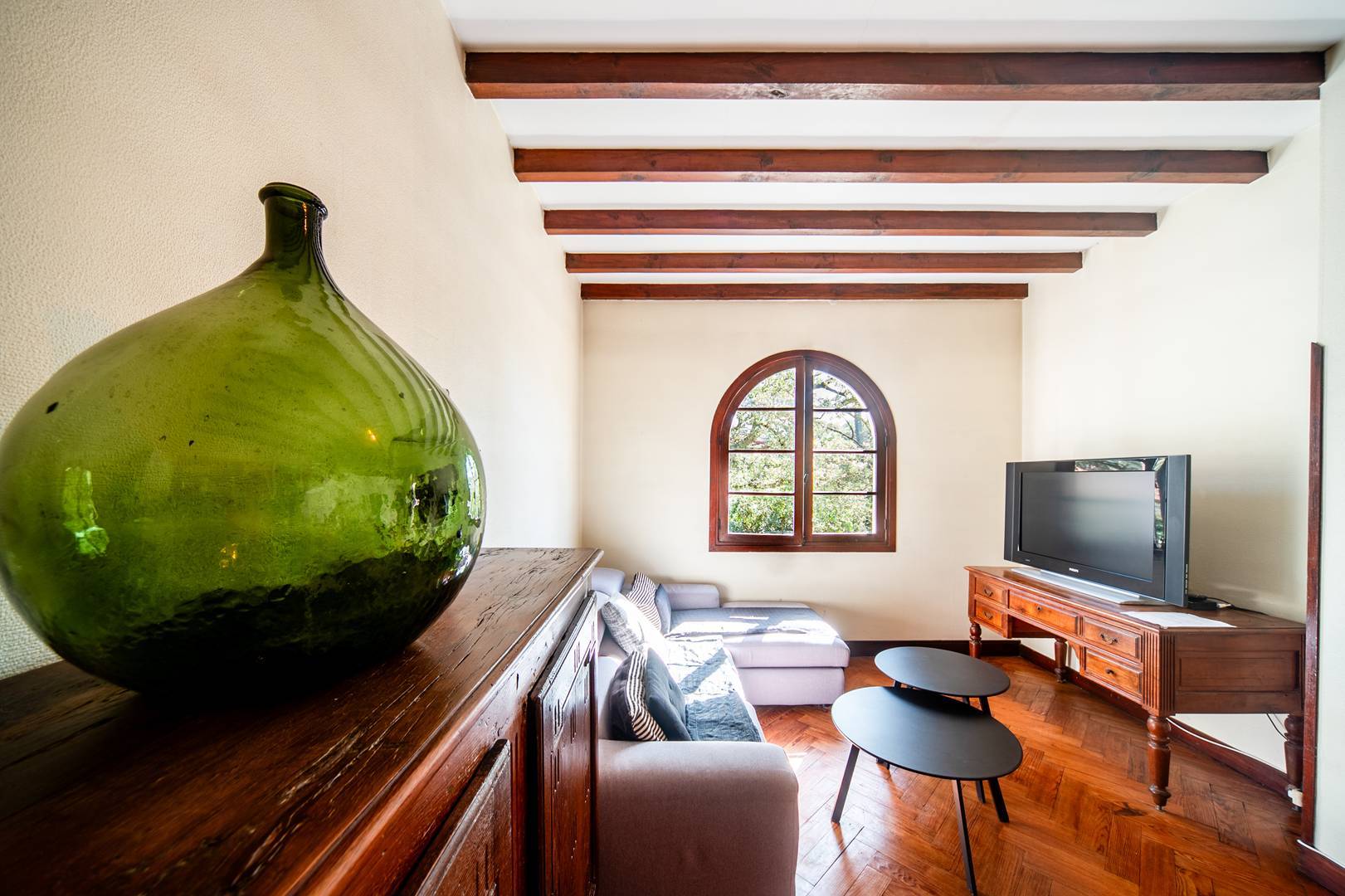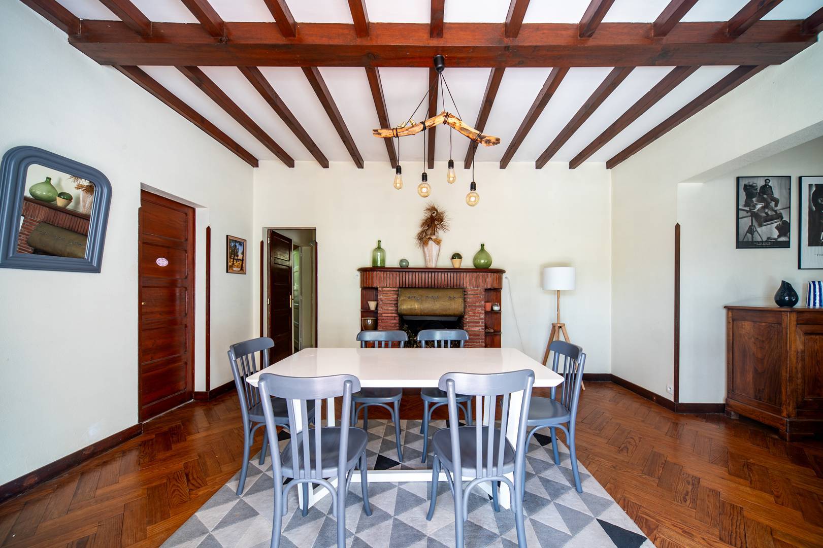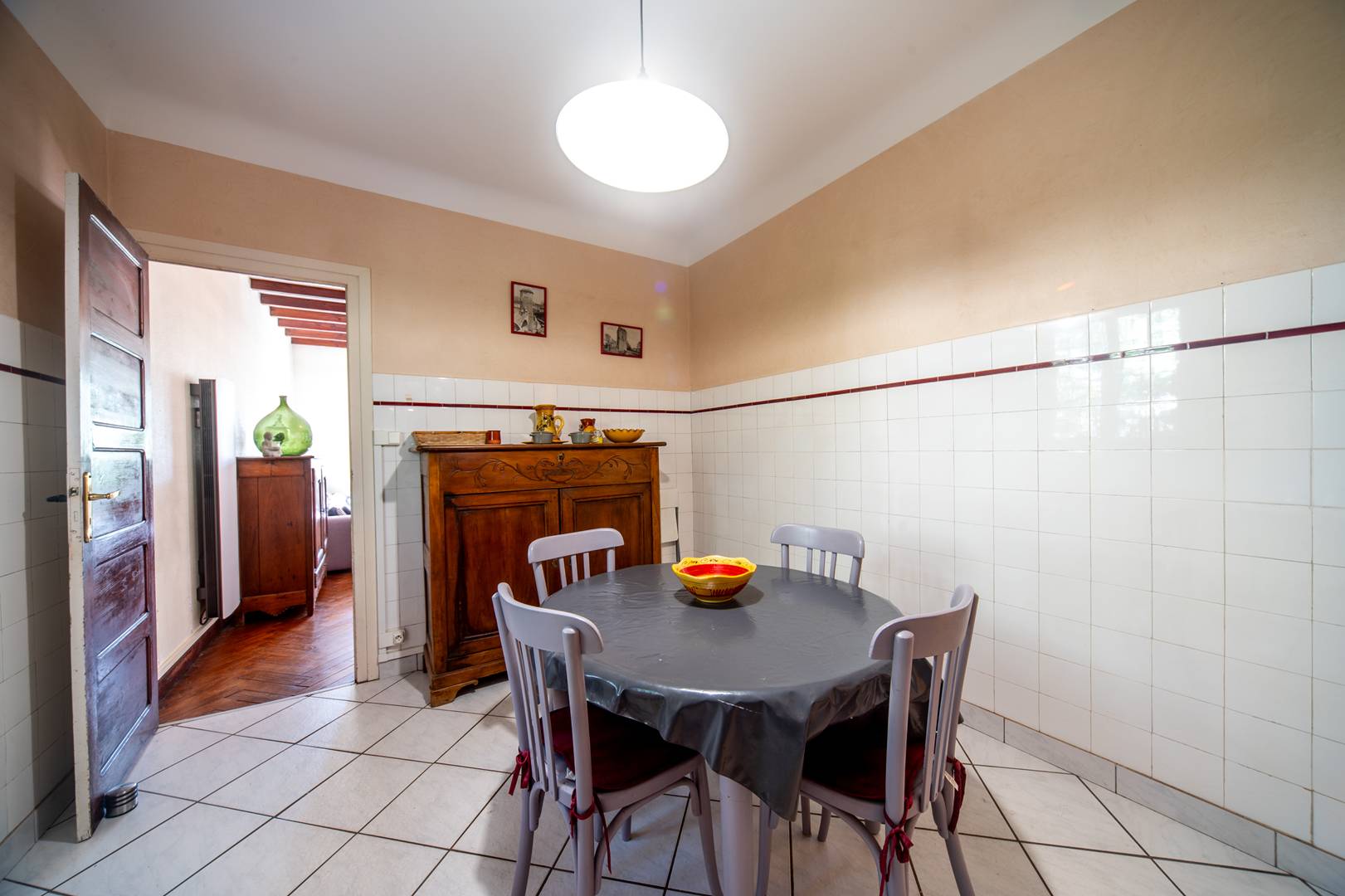 L-shaped main living room/lounge (3.99x4.62 and 5.24x3.45) opening onto a front terrace of approximately 9.50m2. Fitted and equipped kitchen (6.40m2): 3 gas hob, fridge-freezer, oven, microwave, dishwasher and washing machine. Adjoining dining room opening onto rear terrace with table, garden chairs, barbecue and deckchairs.