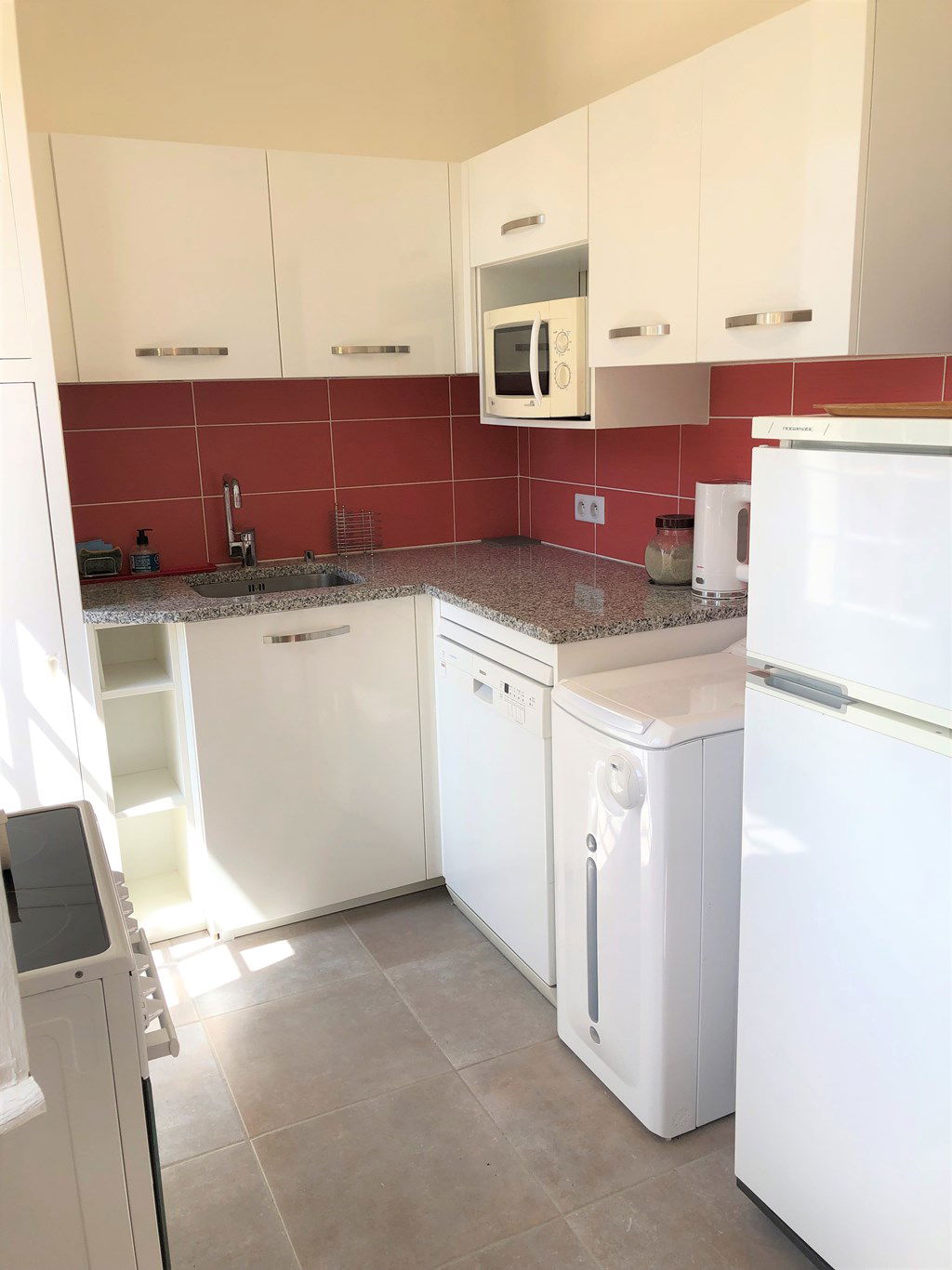 4-burner ceramic hob, dishwasher, washing machine, microwave and fridge-freezer.