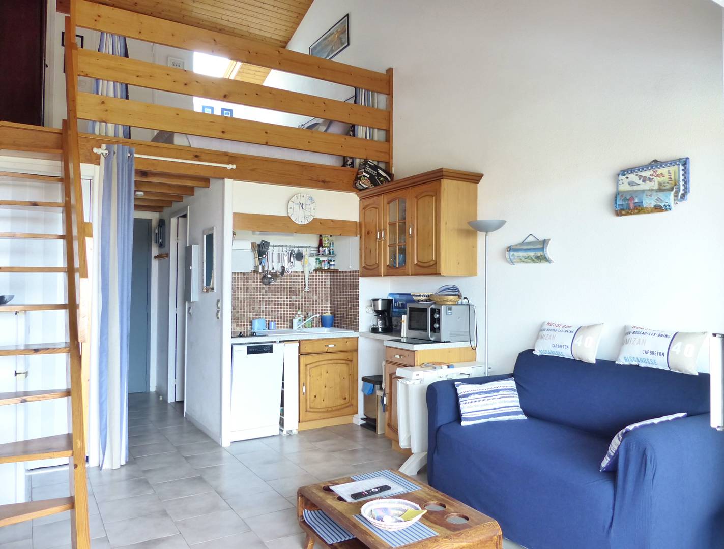 Apartment with mezzanine making room on the 2nd floor without elevator with very beautiful sight on the ocean in the South and sight on the central beach in the West. Classified 2* in 2024 by the departmental tourism committee. free WIFI