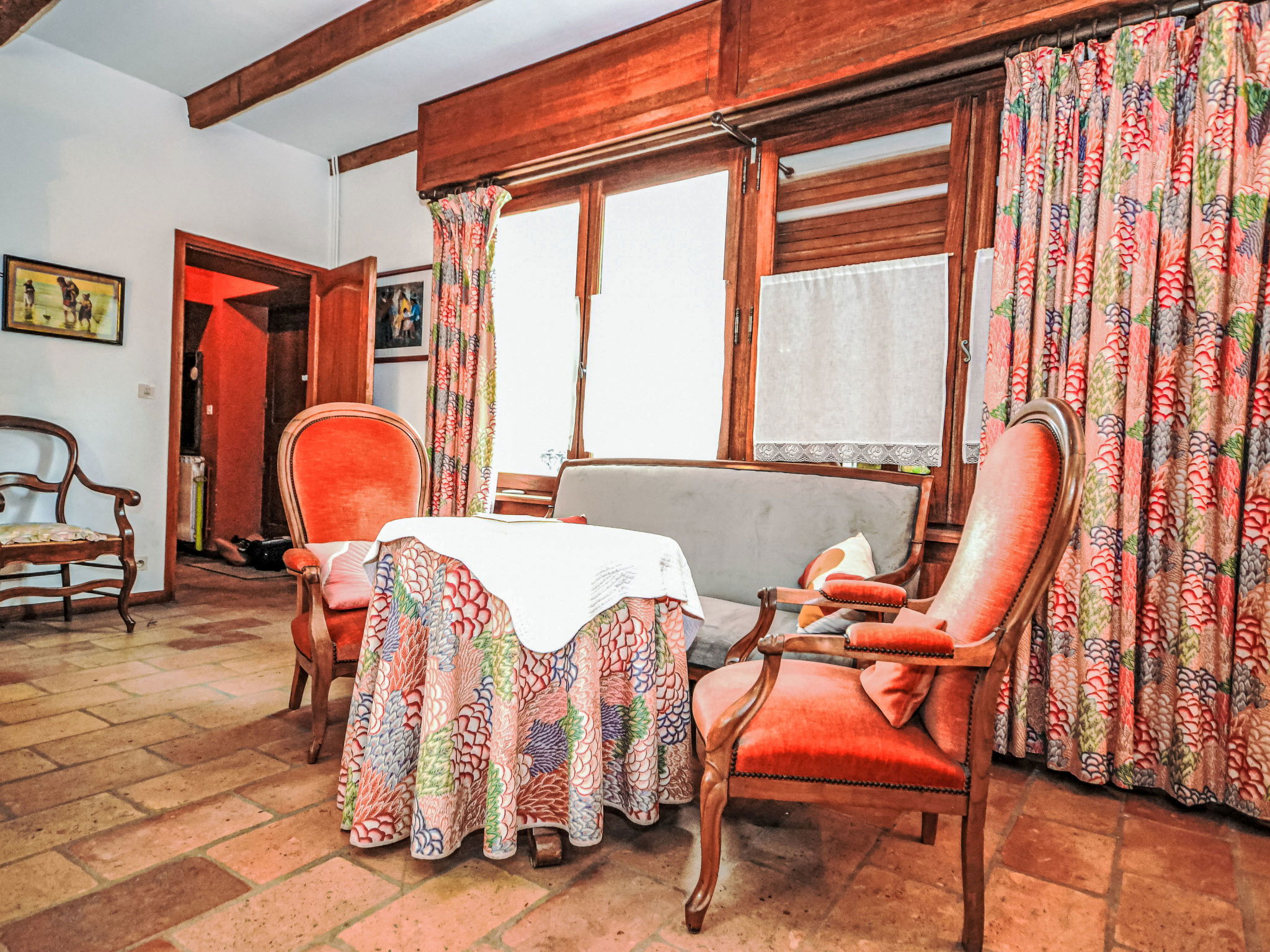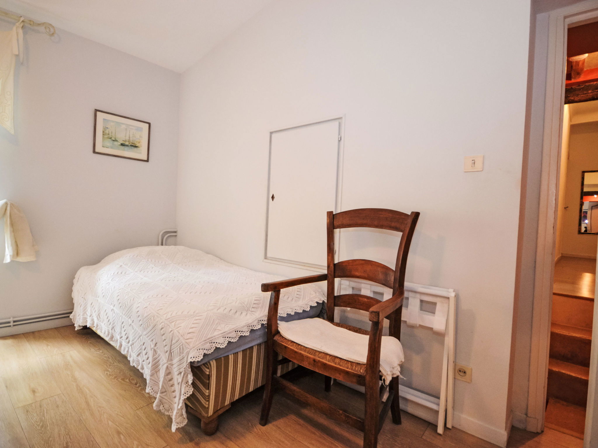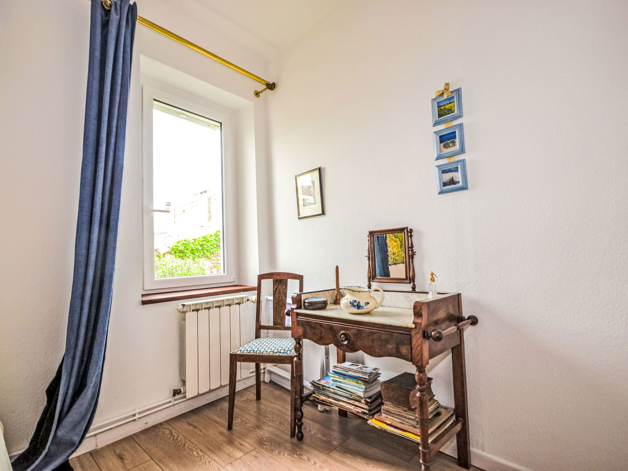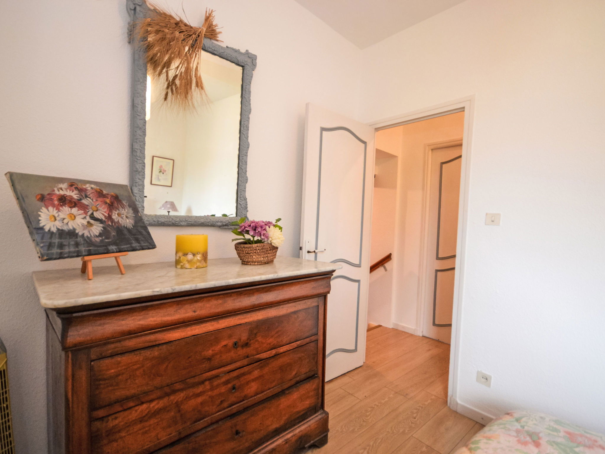 5-room terraced house 100 m2 on 2 levels. Comfortable and beautiful furnishings: living/dining room with open-hearth fireplace, dining table and TV (flat screen). Exit to the garden. Kitchen (oven, dishwasher, 4 induction hot plates, toaster, kettle, microwave, electric coffee machine, Capsules for coffee machine (Nespresso) extra). Sep. WC. Upper floor: 2 rooms, each room with 1 french bed (140 cm, length 190 cm). 1 room with 1 french bed (180 cm, length 190 cm). Shower/WC. Gas heating. Terrace 15 m2 partly roofed, south-west facing position. Terrace furniture, barbecue, deck chairs (2). Facilities: washing machine, dryer, iron, baby cot. Internet (WiFi, free). Please note: 1 small pet/ dog allowed. Smoke alarm. Offer by a private individual according to Art. 155, IV of CGI.
