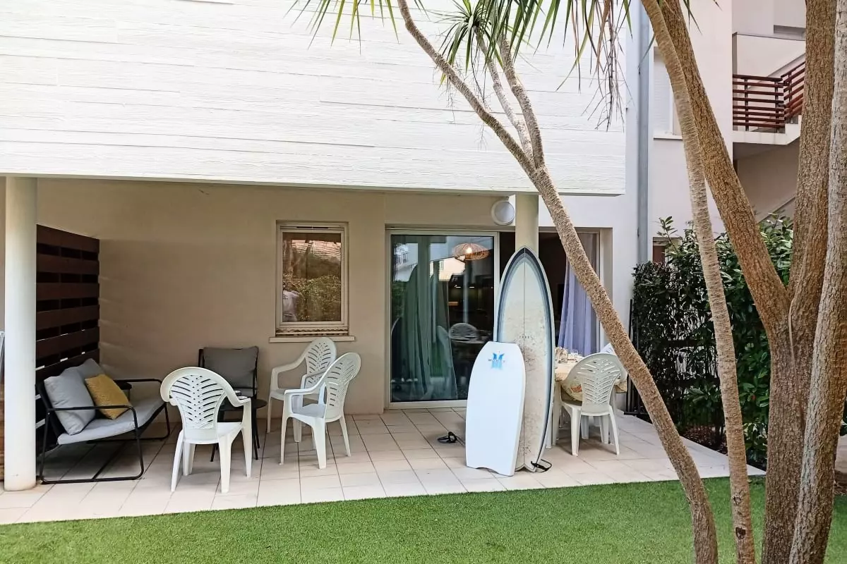 Your accommodation, "25 Terrasse de l'Océan", is located in the Néméa Residence "Les Terrasses de l'Océan", a 5-minute walk from two squares, the Bastide square and the Balise square, lively squares with all amenities, grocery stores, bars and restaurants, and the Moliets Plage surf shop.