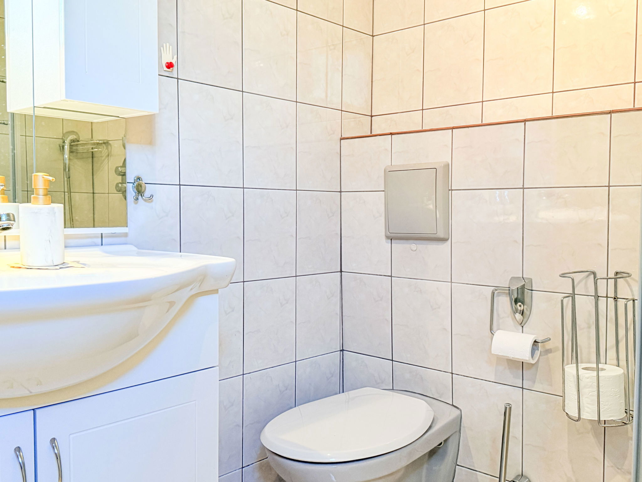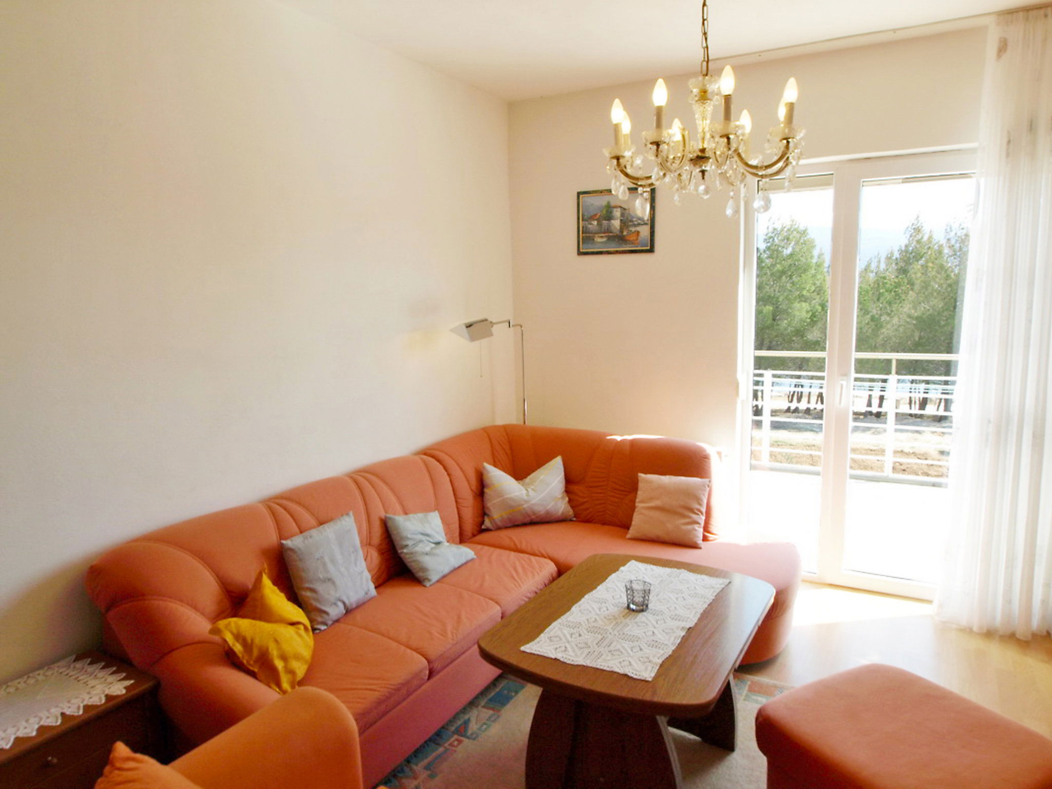 2-room apartment 60 m2 on 1st floor, east facing position. Living/dining room with 1 double sofabed, satellite TV and air conditioning. Exit to the terrace. 1 room with 1 double bed. Open kitchen (4 hot plates, oven). Shower/WC. Terrace 15 m2 partly roofed. Terrace furniture. Facilities: washing machine. Internet (WiFi, free). Maximum 1 pet/ dog allowed.
