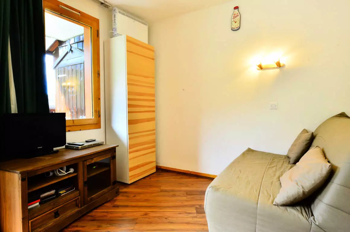 Studio for 2 people of approximately 17 m², south/west facing with balcony on the 4th floor, slope and resort side; in good condition.